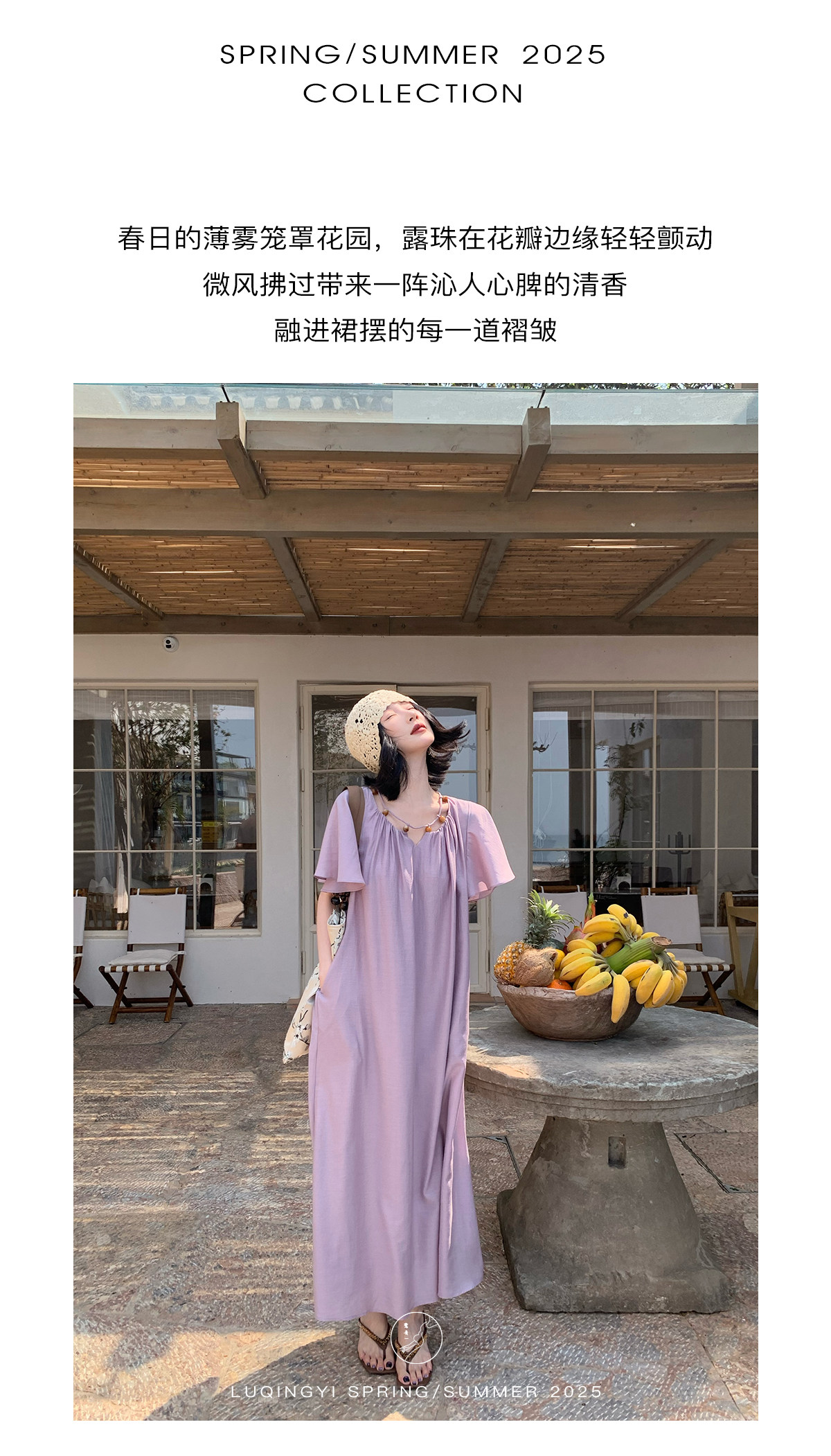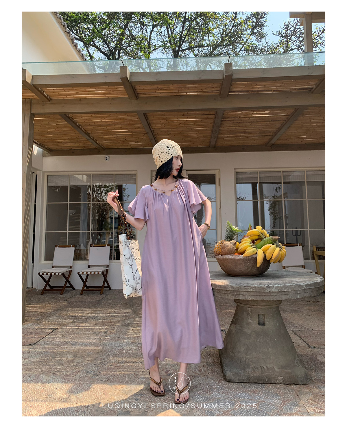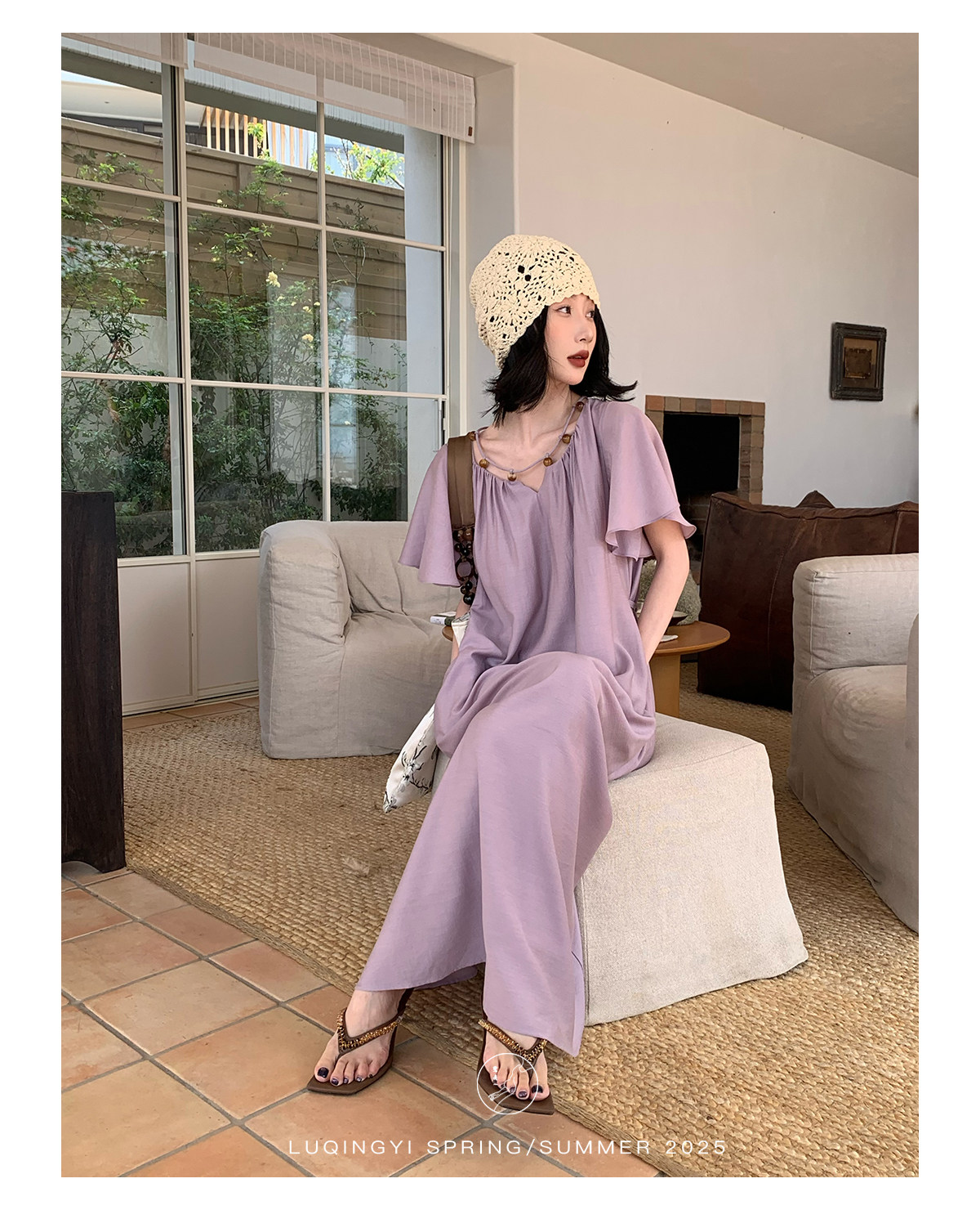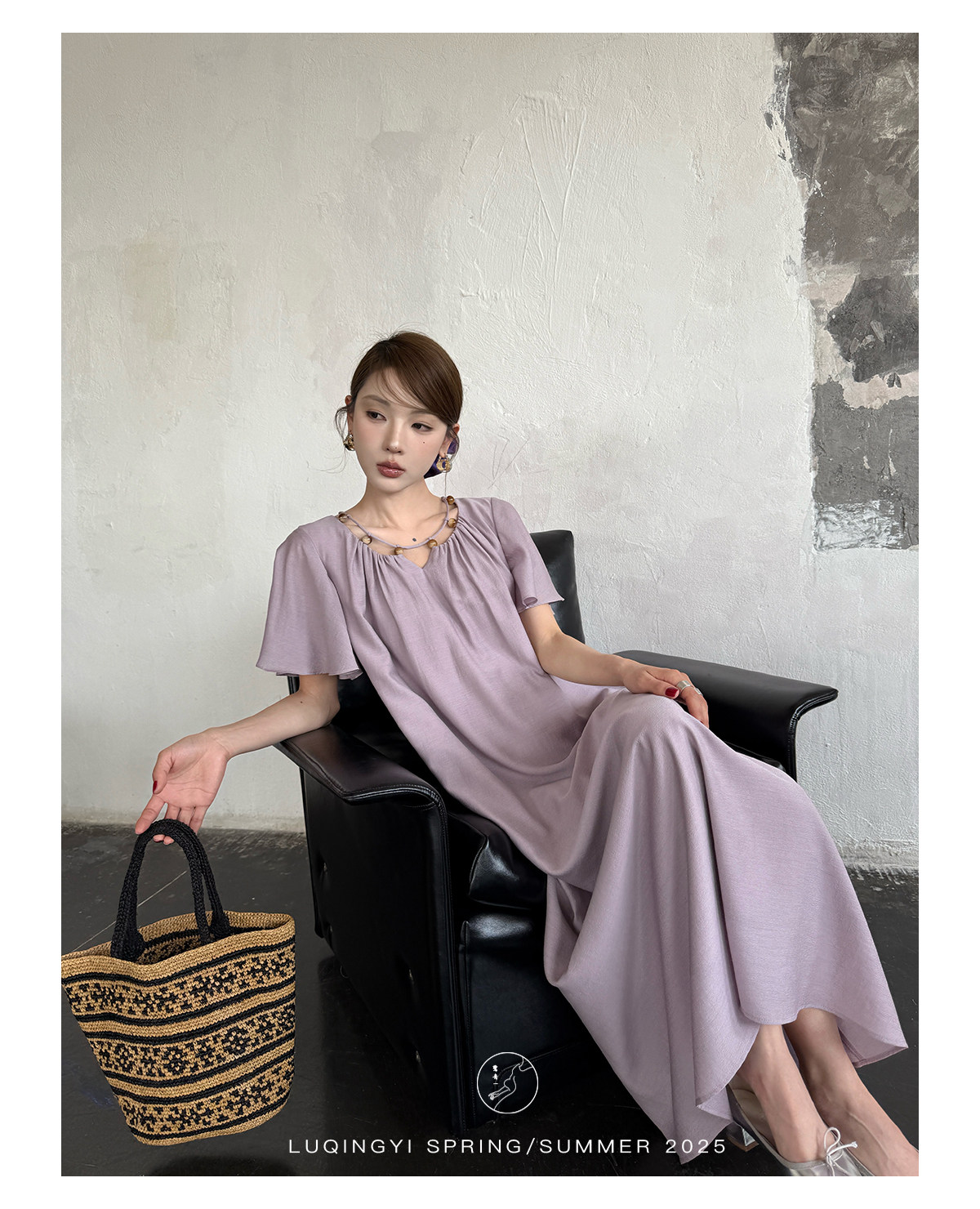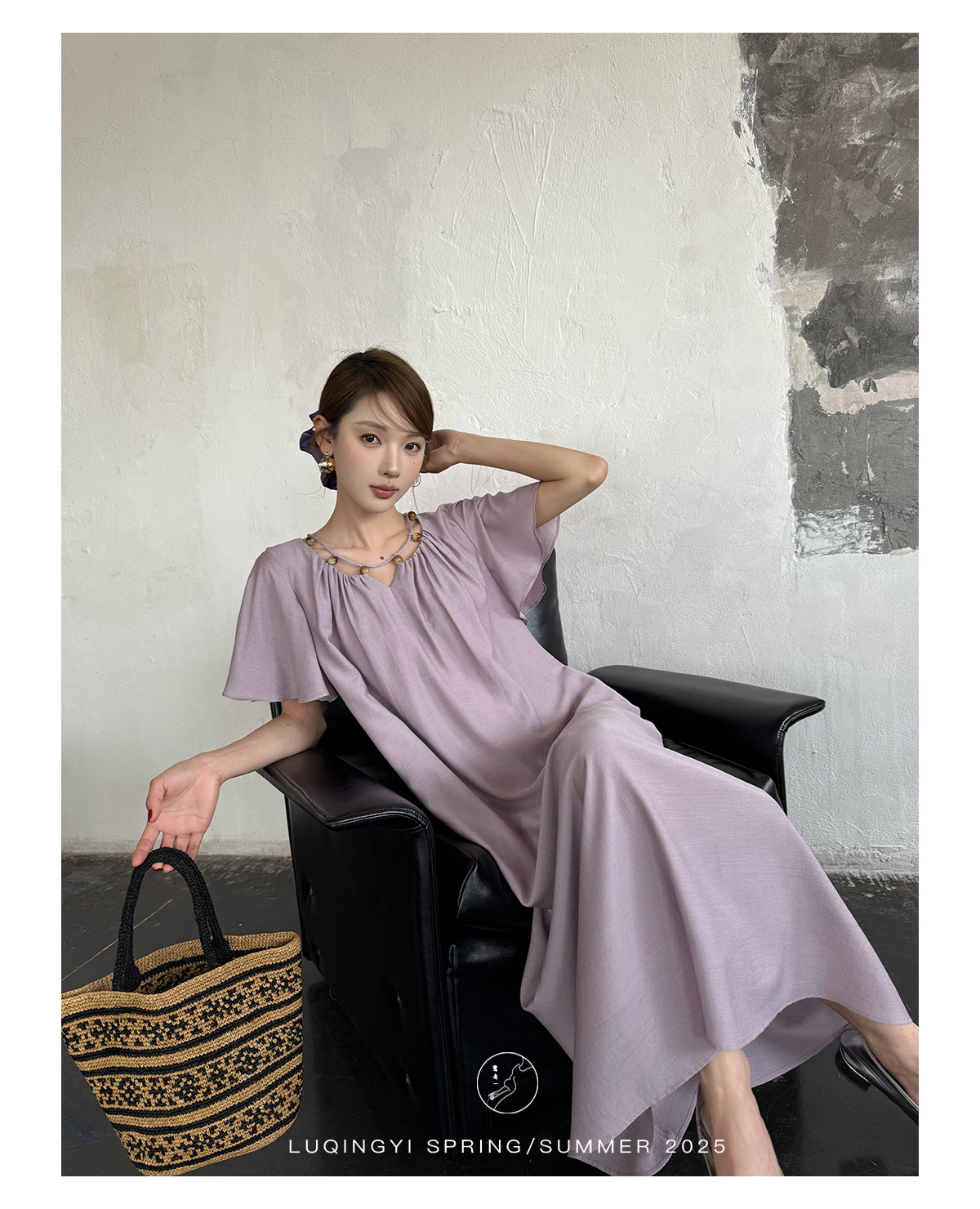 Lu Qingyi's Original [Rosary] French-Style Exquisite Acetate Dress, Summer Design with Ruffle Sleeves, Loose A-Line Skirt