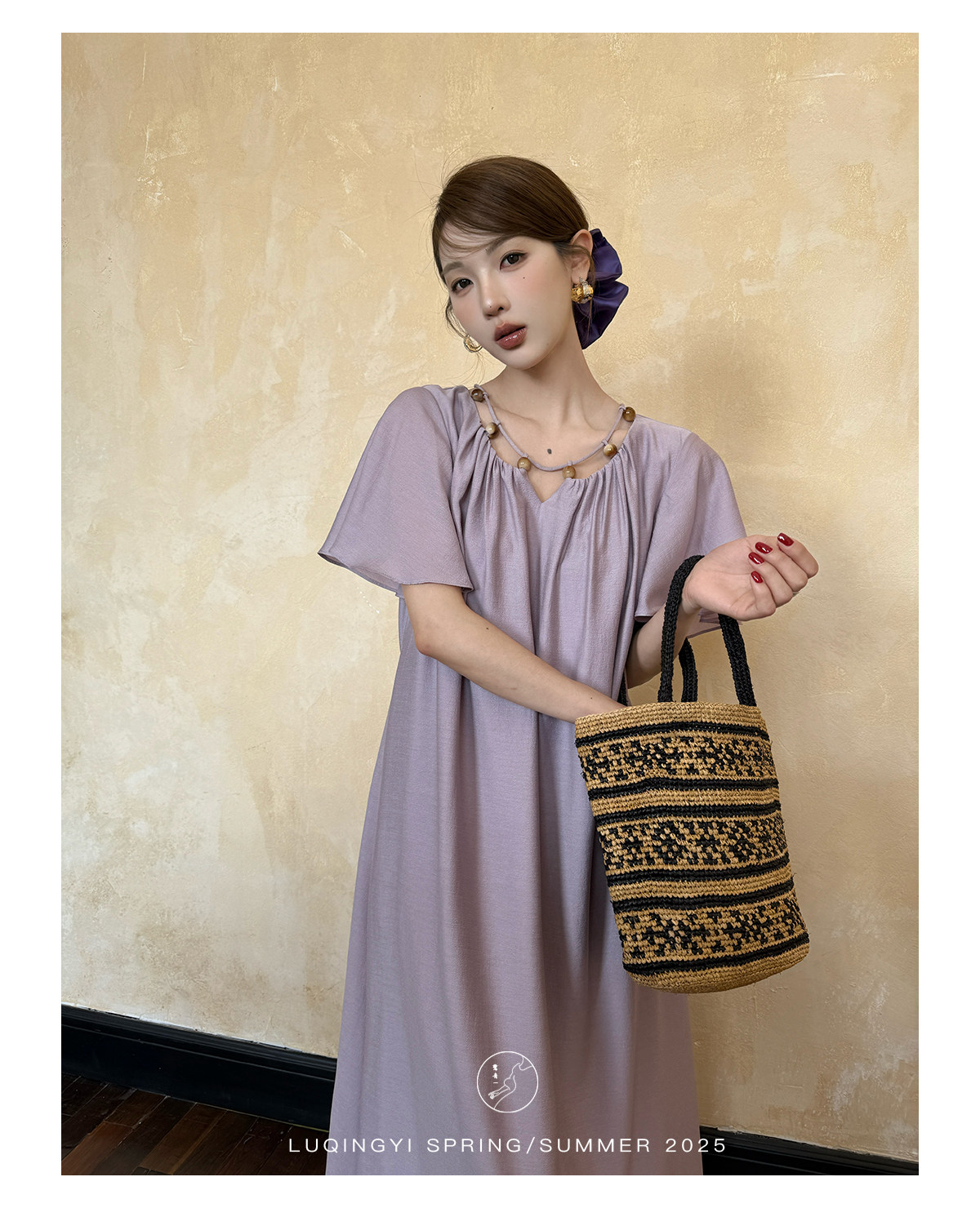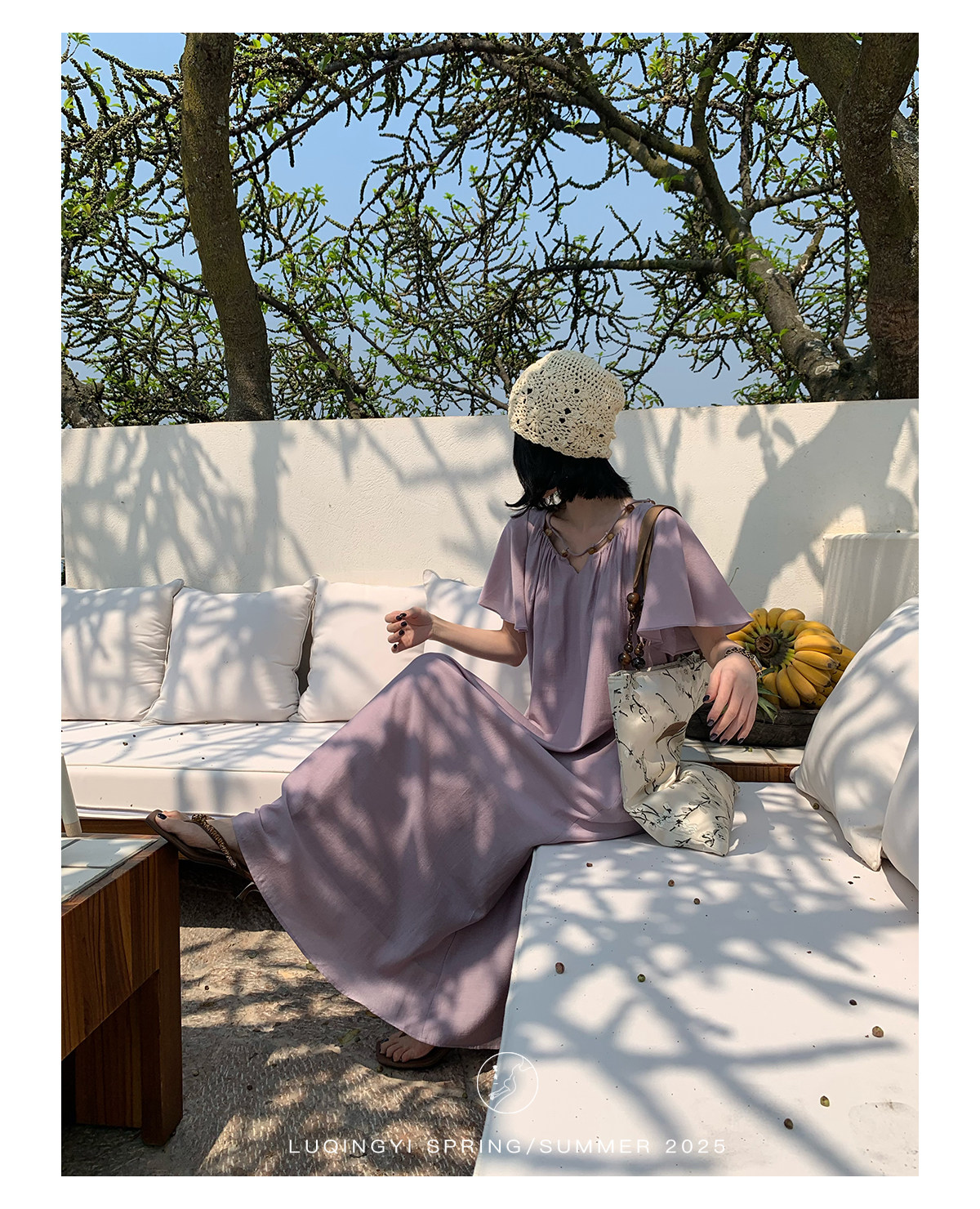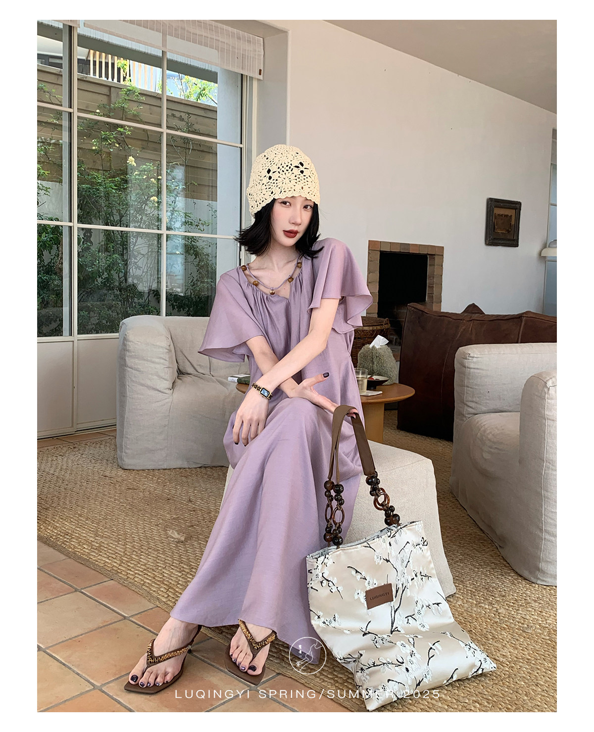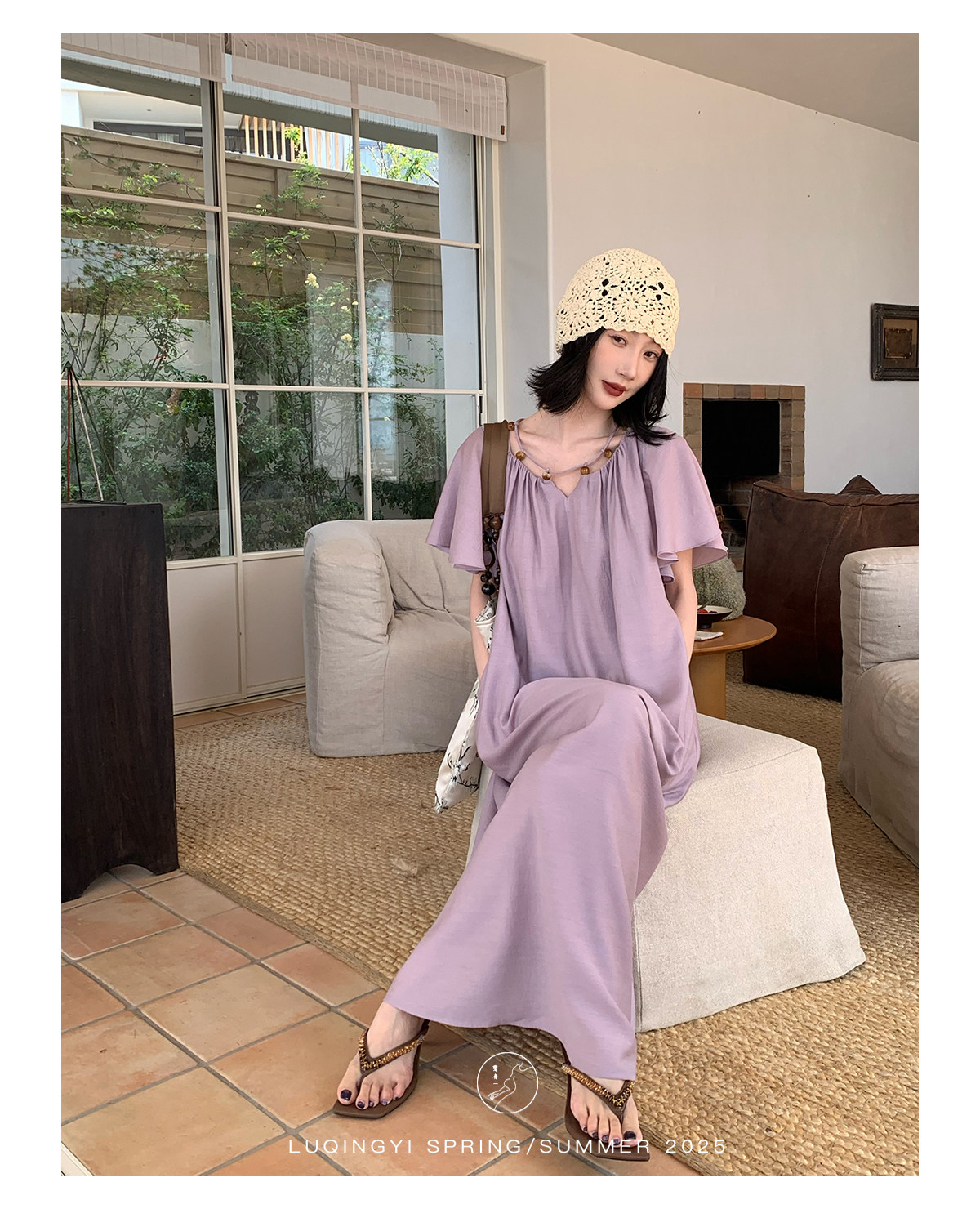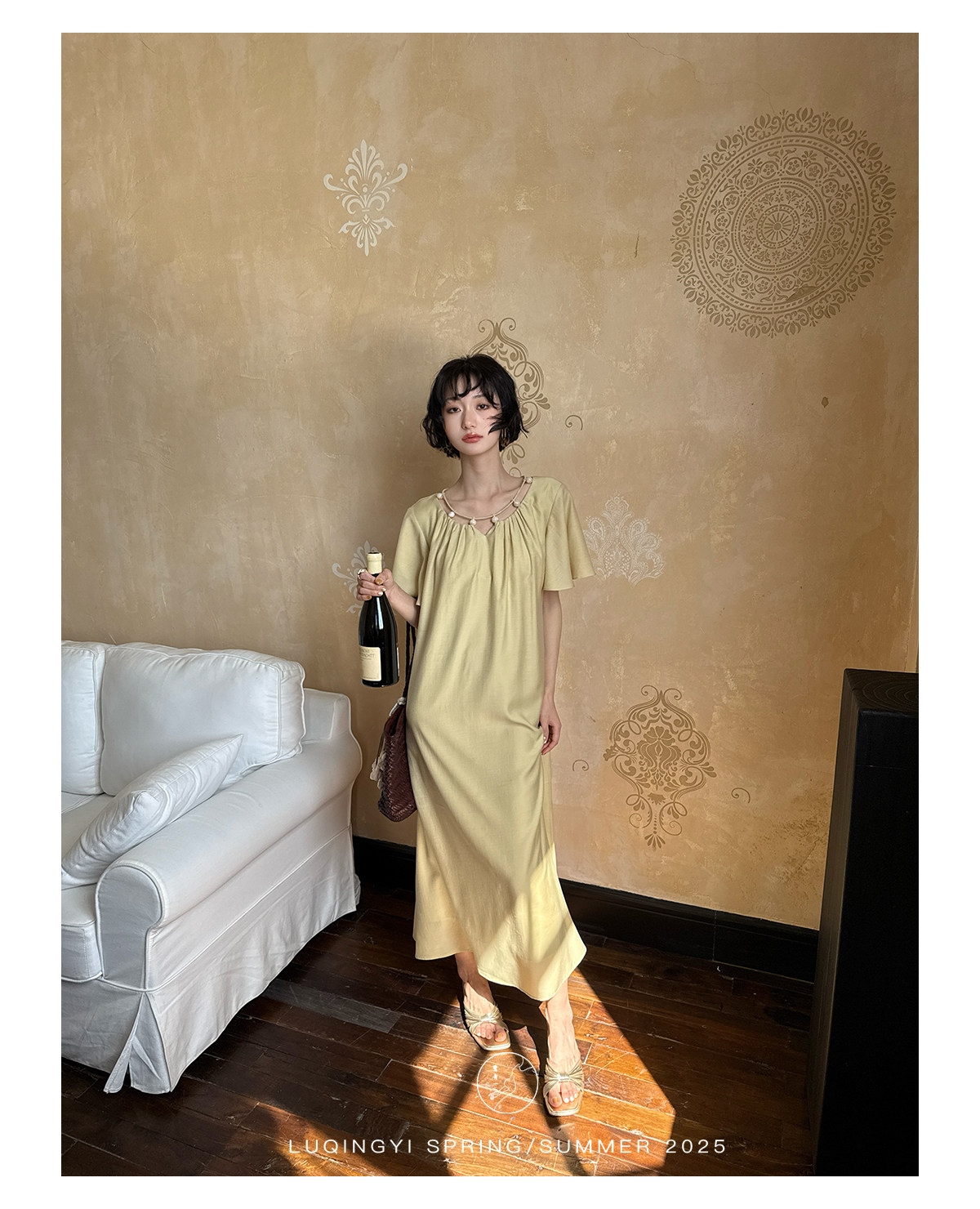 Lu Qingyi's Original [Rosary] French-Style Exquisite Acetate Dress, Summer Design with Ruffle Sleeves, Loose A-Line Skirt