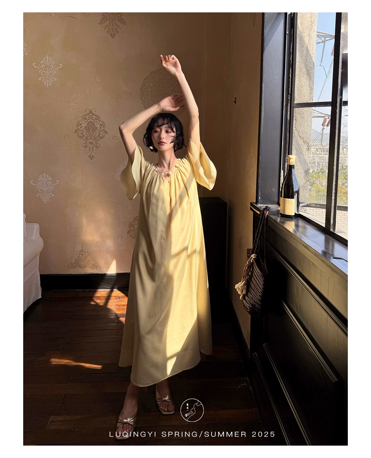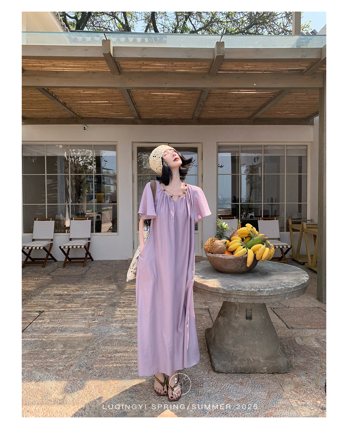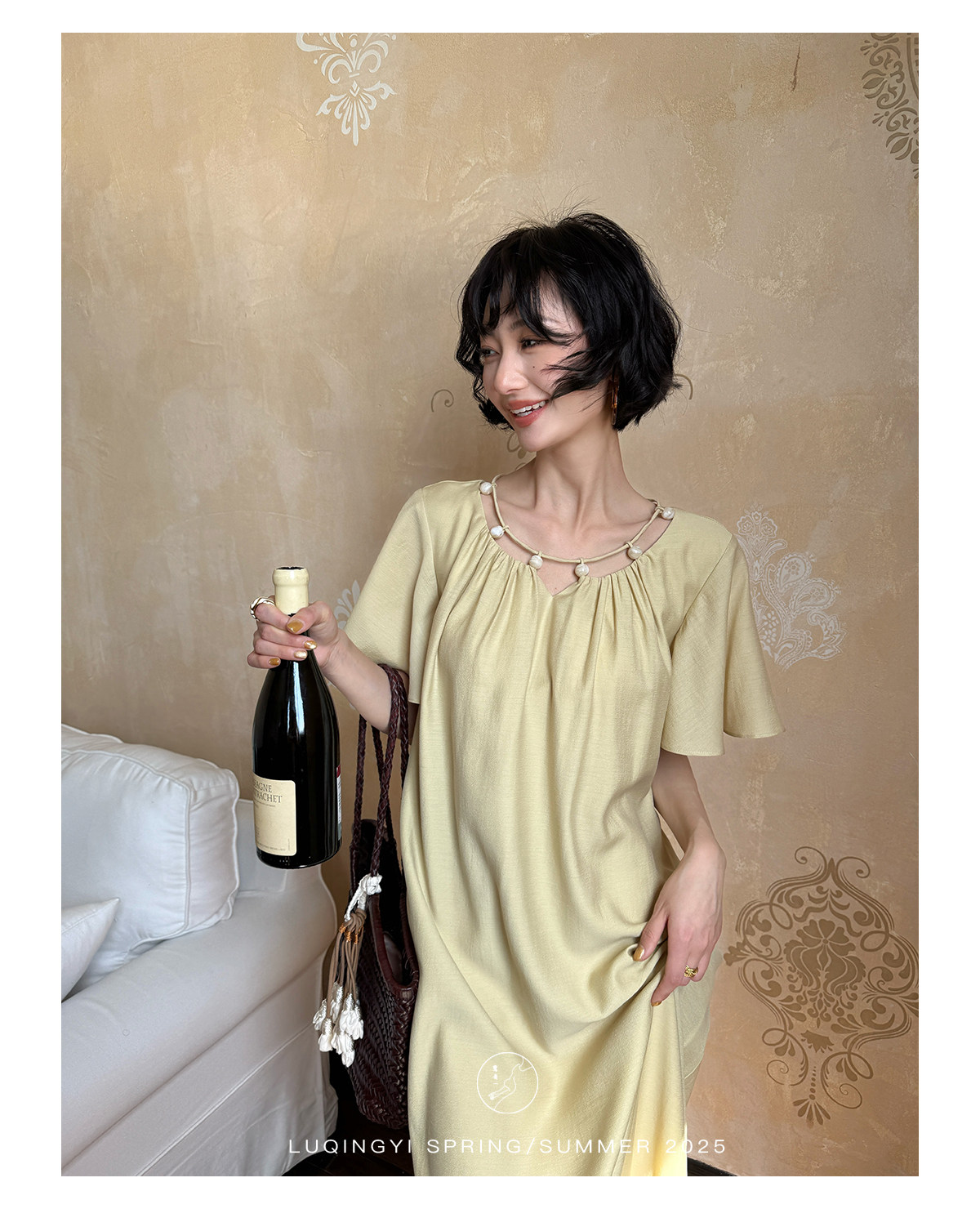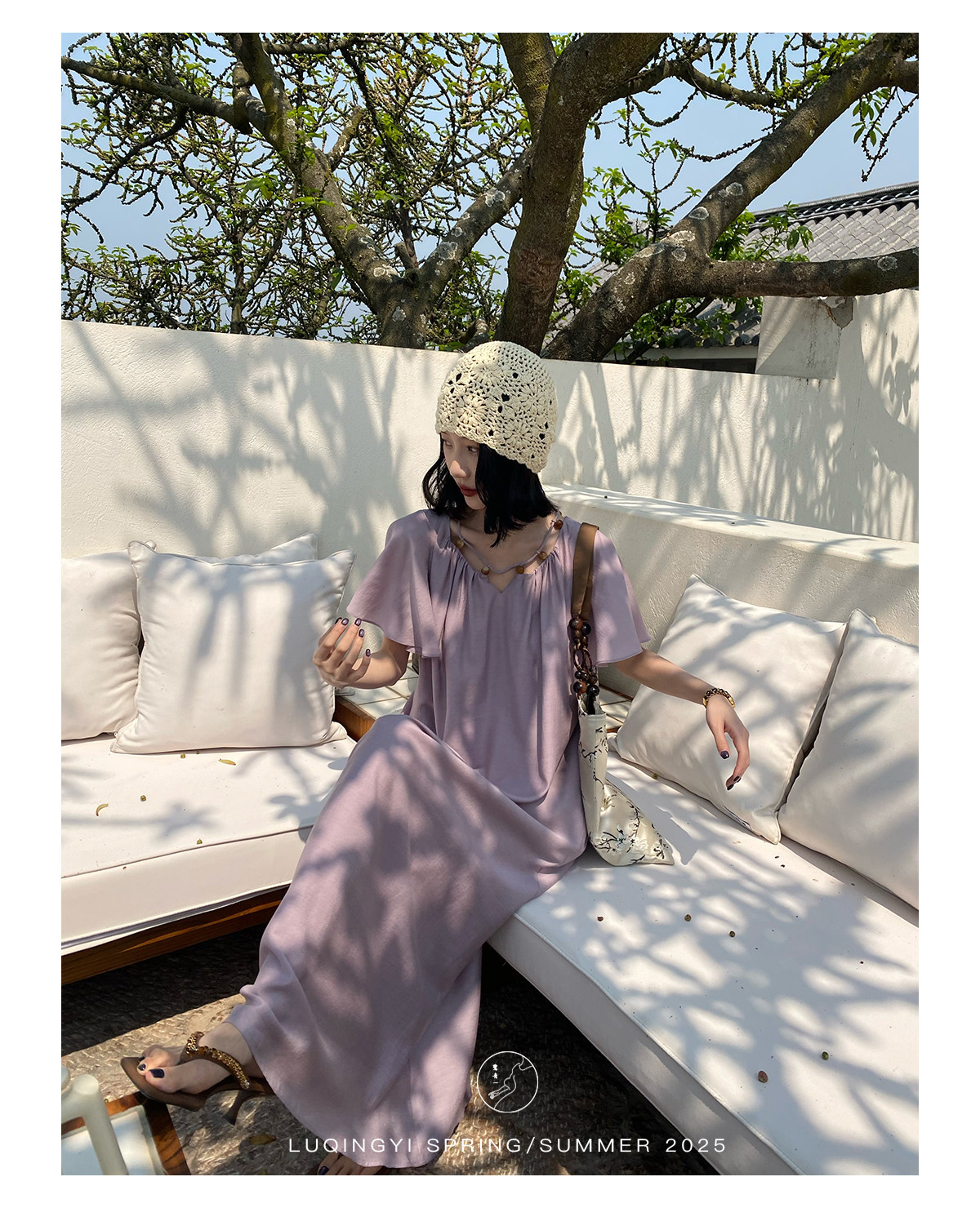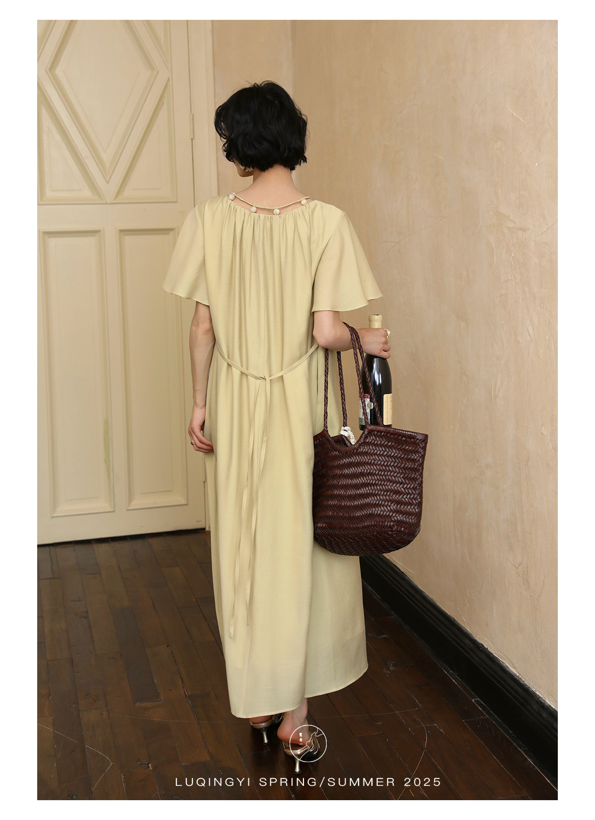 Lu Qingyi's Original [Rosary] French-Style Exquisite Acetate Dress, Summer Design with Ruffle Sleeves, Loose A-Line Skirt