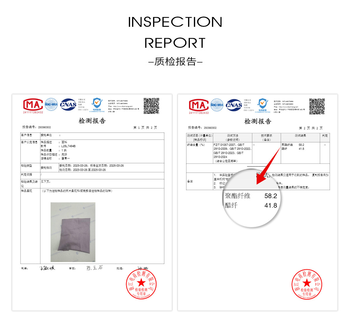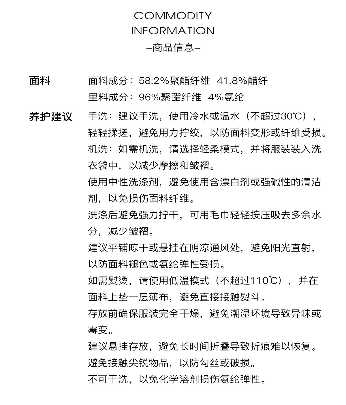 Material Composition Polyester 58.2% Acetate Fiber (Acetate Fiber) 41.8%