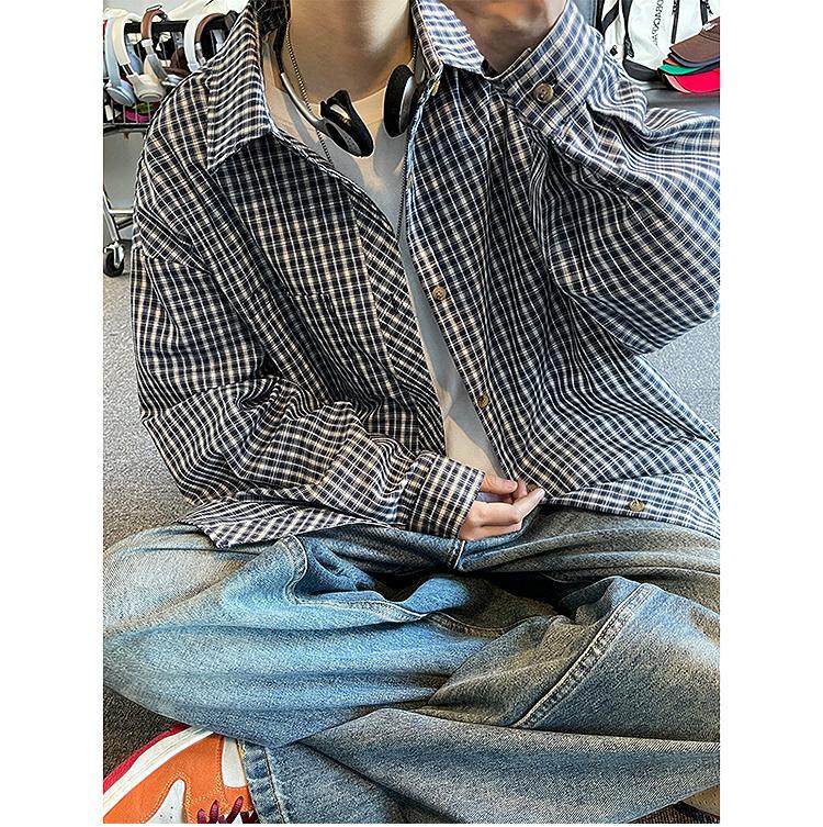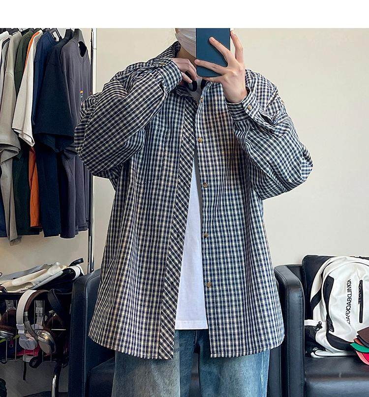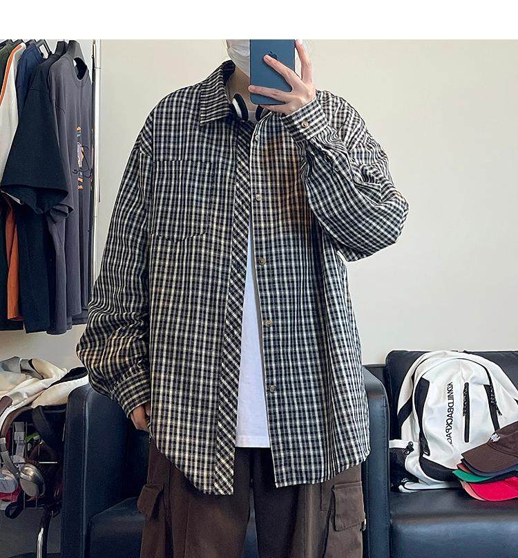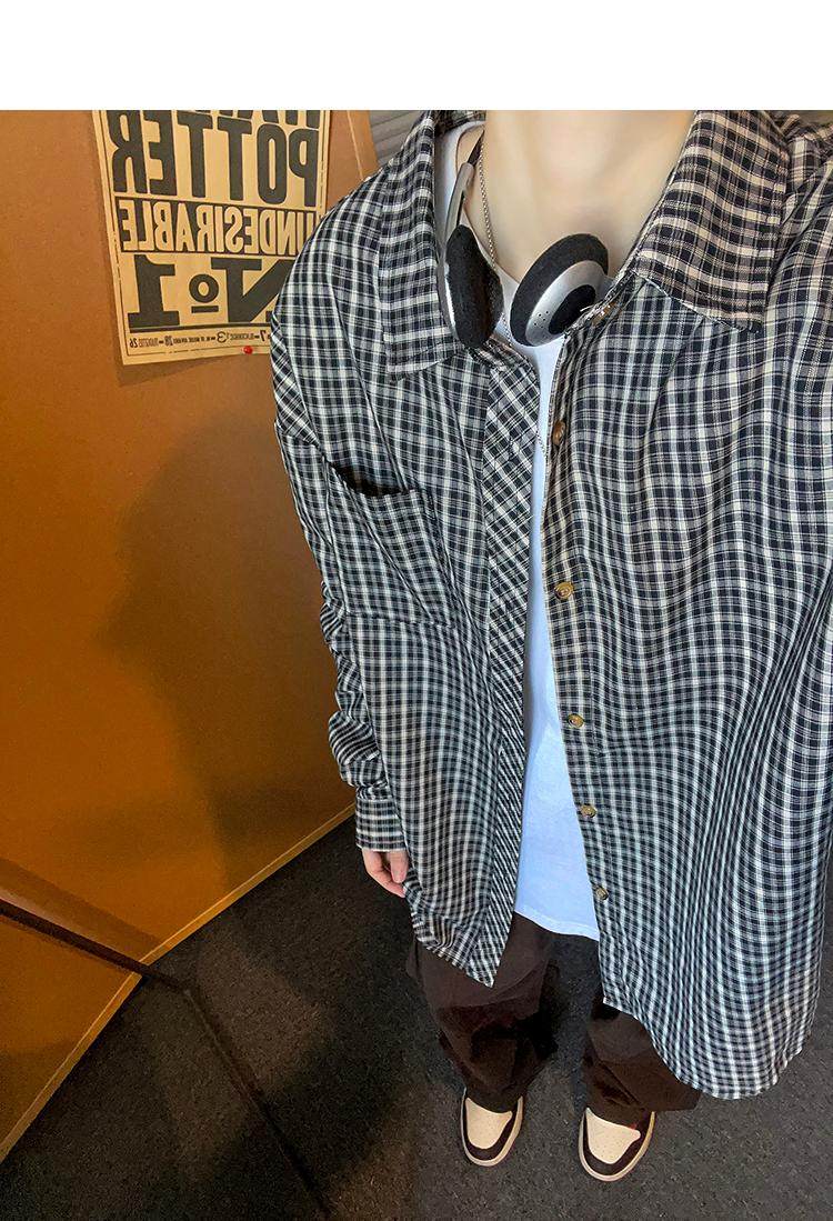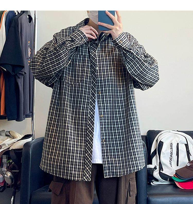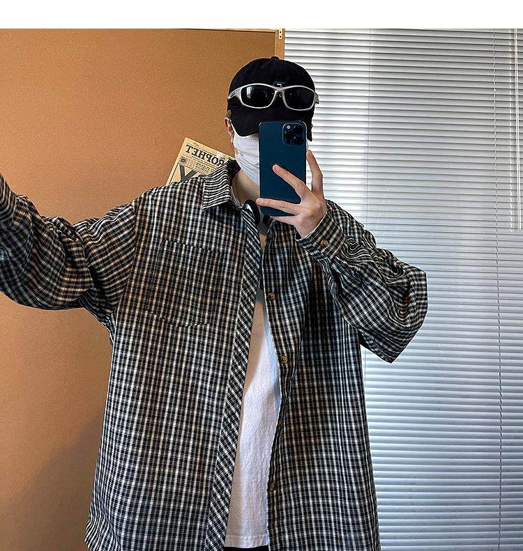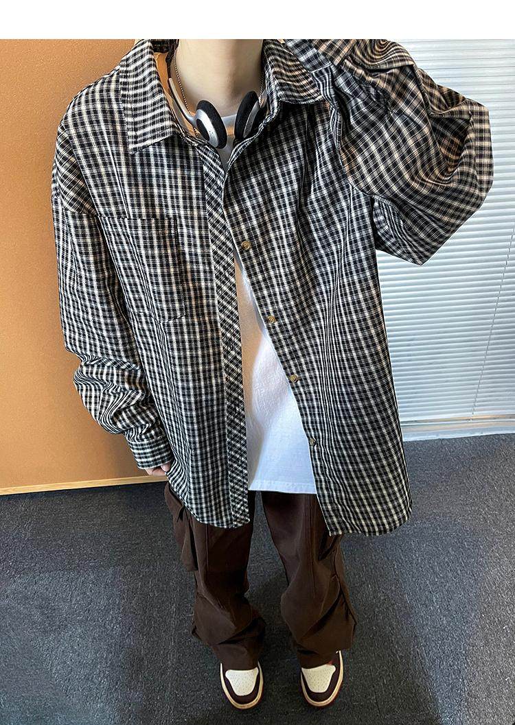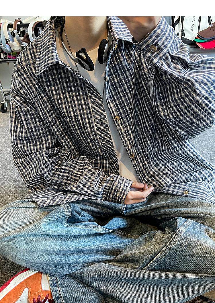 Camisa de manga larga de pata de gallo negra para hombre, chaqueta informal de moda, estilo retro americano de alta gama, de verano