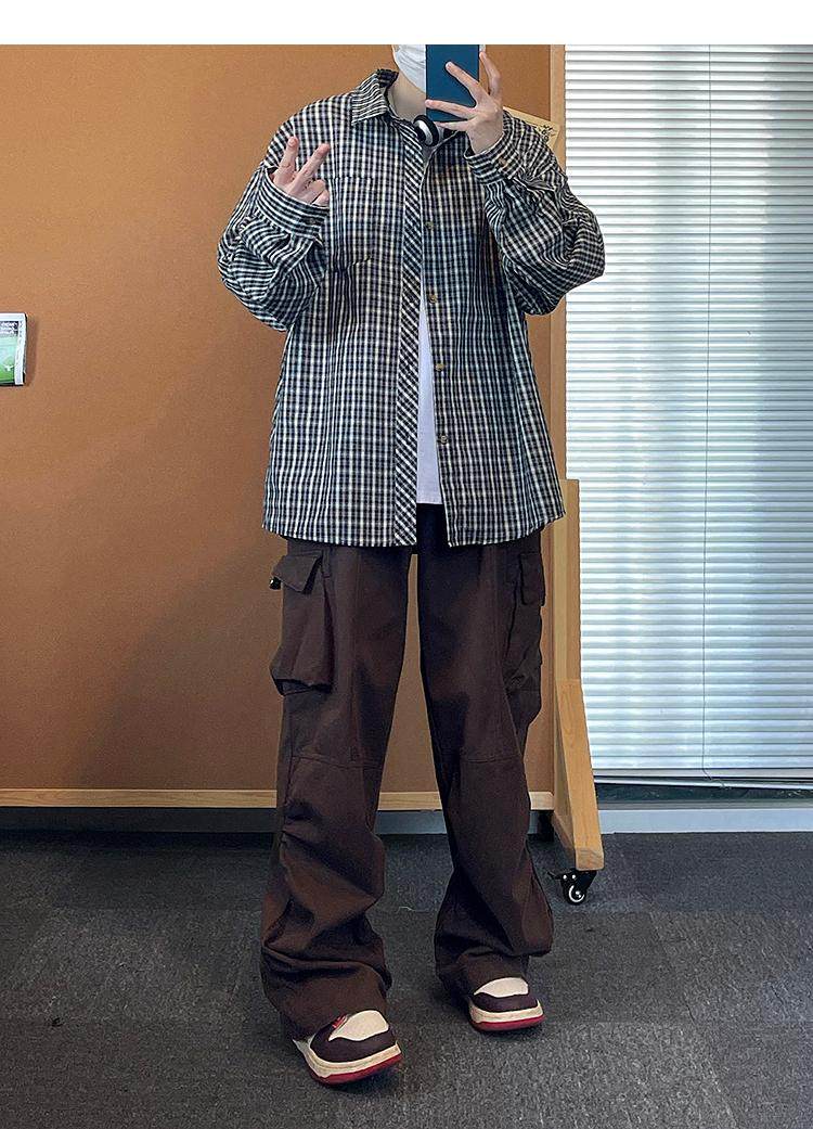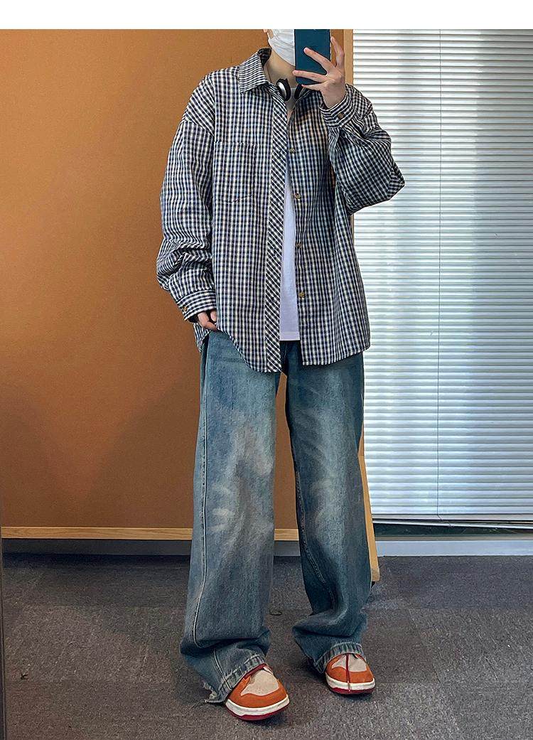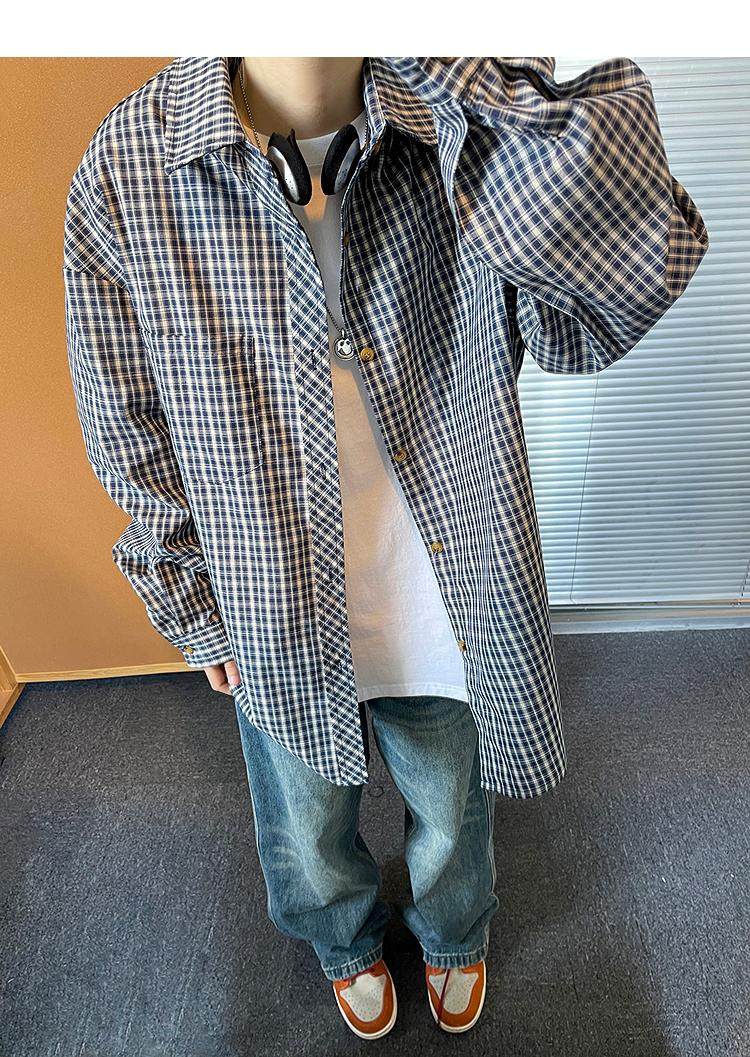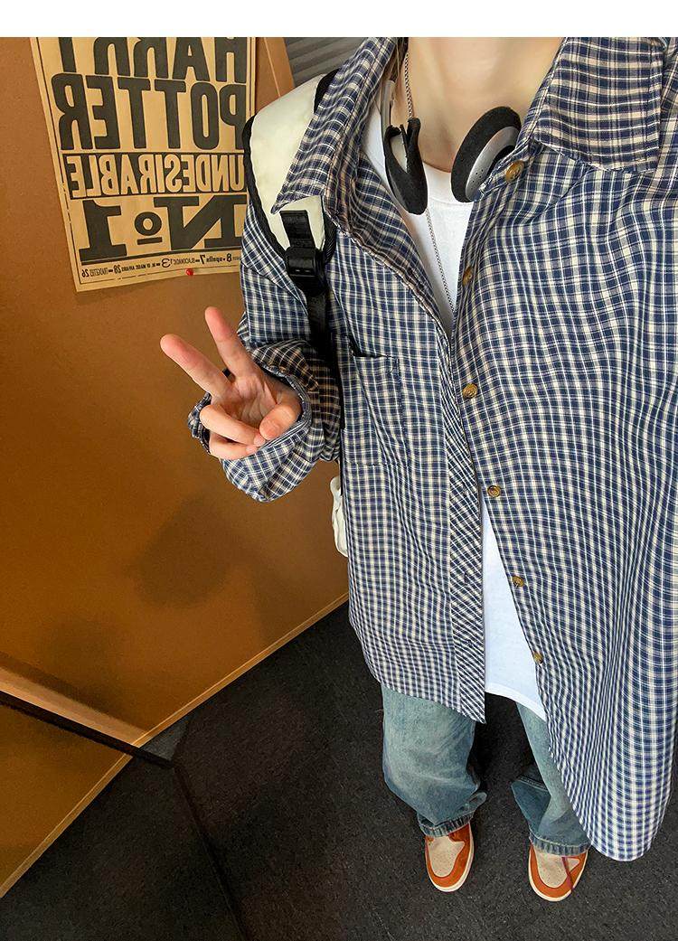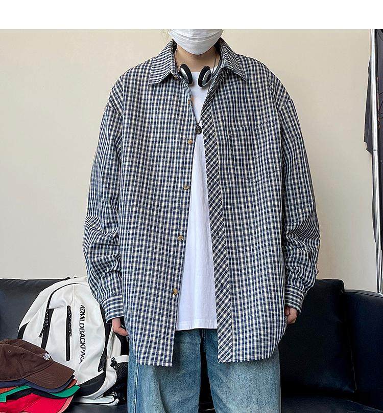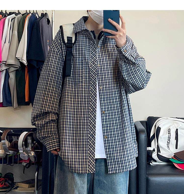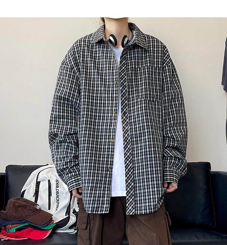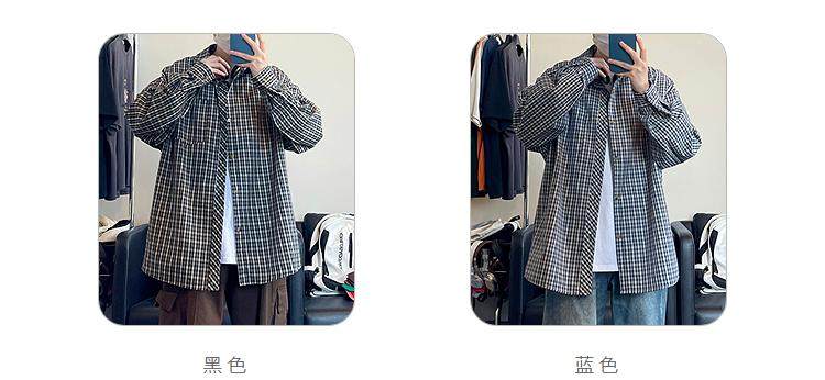 Camisa de manga larga de pata de gallo negra para hombre, chaqueta informal de moda, estilo retro americano de alta gama, de verano