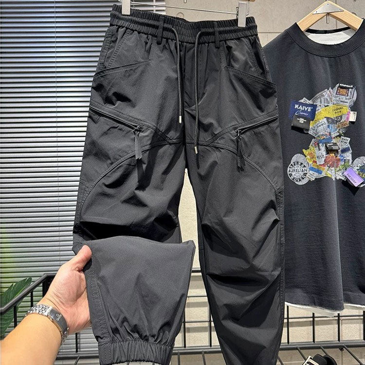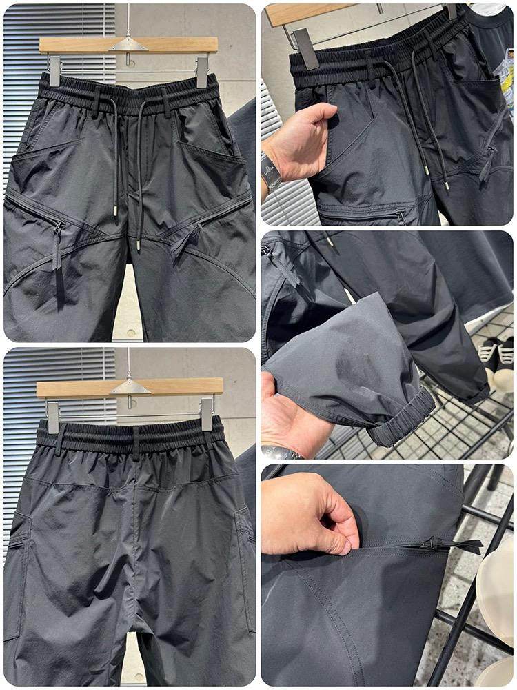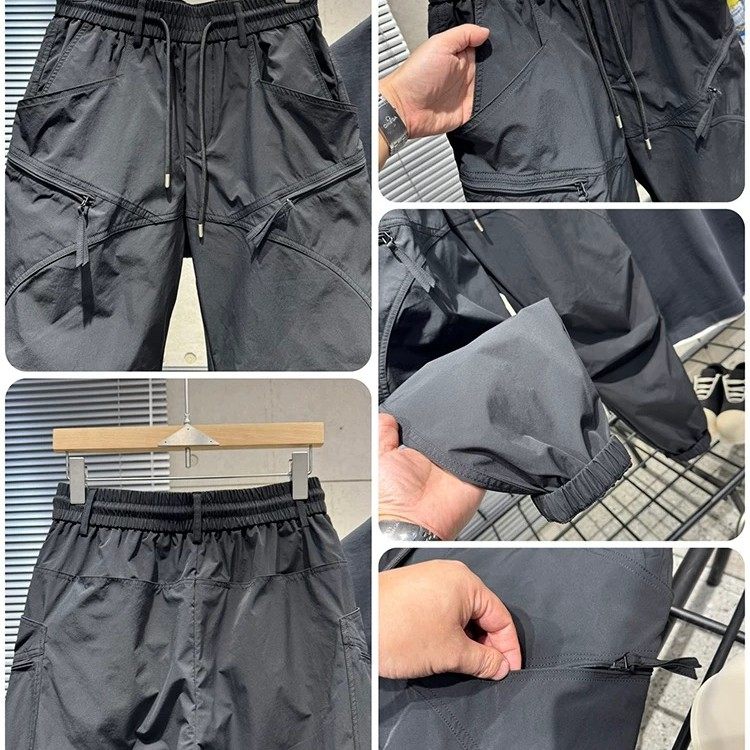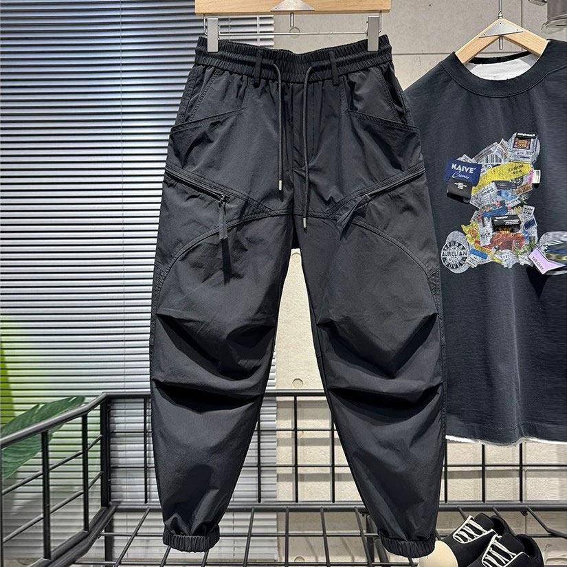 2025男士春秋季新款拼接工装裤时尚潮流百搭舒适休闲束脚哈伦裤