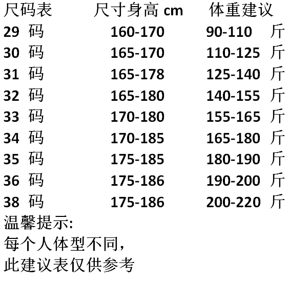 尺码 29,38,34,33,36,31,35,30,32