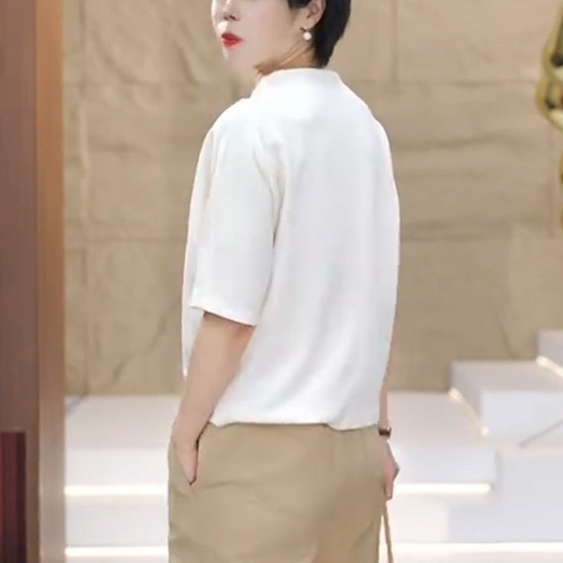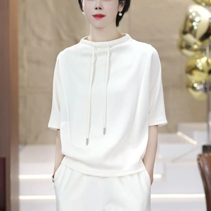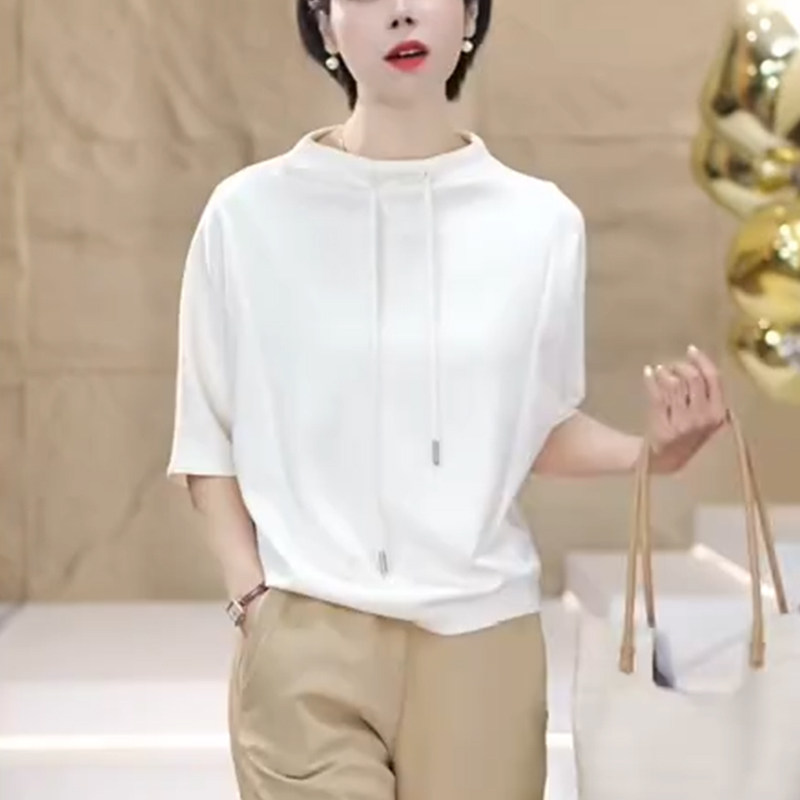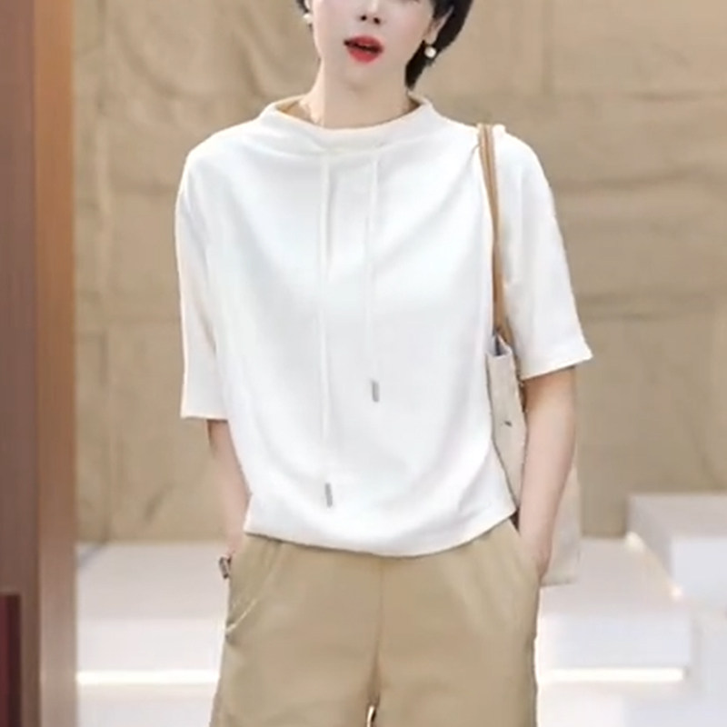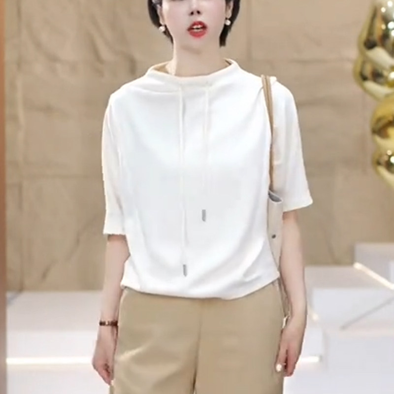 半高领白色短袖t恤女夏季2025新款时尚卫衣洋气宽松遮肚显瘦上衣