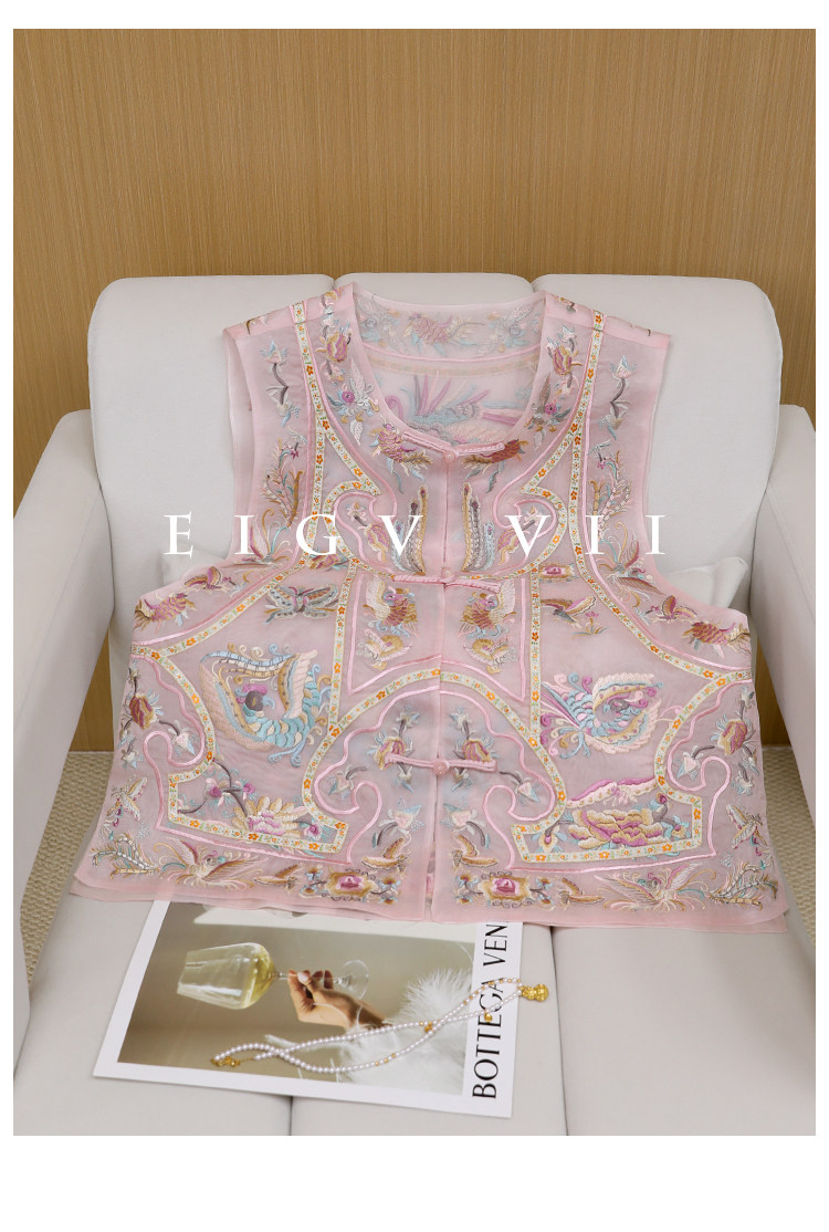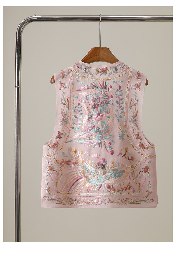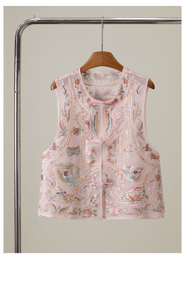 {857}Light Luxury New Chinese Style Heavy Embroidery Silk Vest for Women 2026 Spring and Summer National Style Mulberry Silk Vest