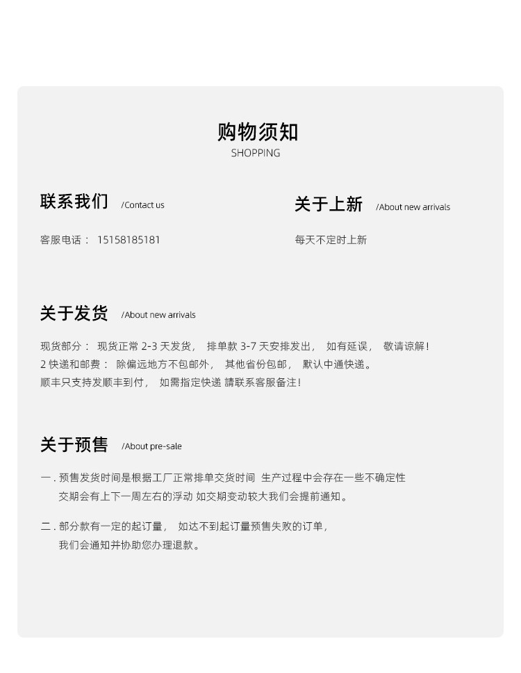 2)运费通常按每0.5公斤收费。因此,如果你购买的产品只有0.1公斤,那么你可以考虑一次购买2-3件,这不会增加你订单的运费。