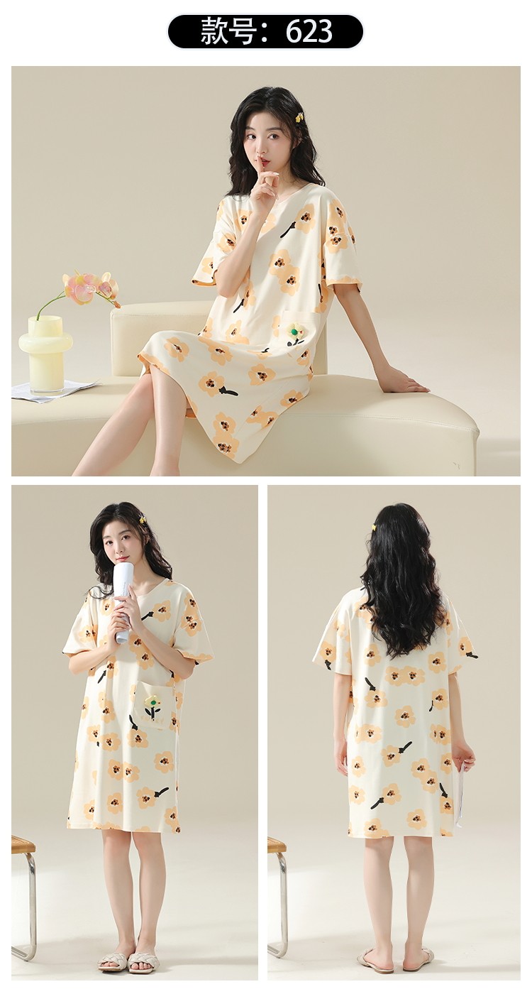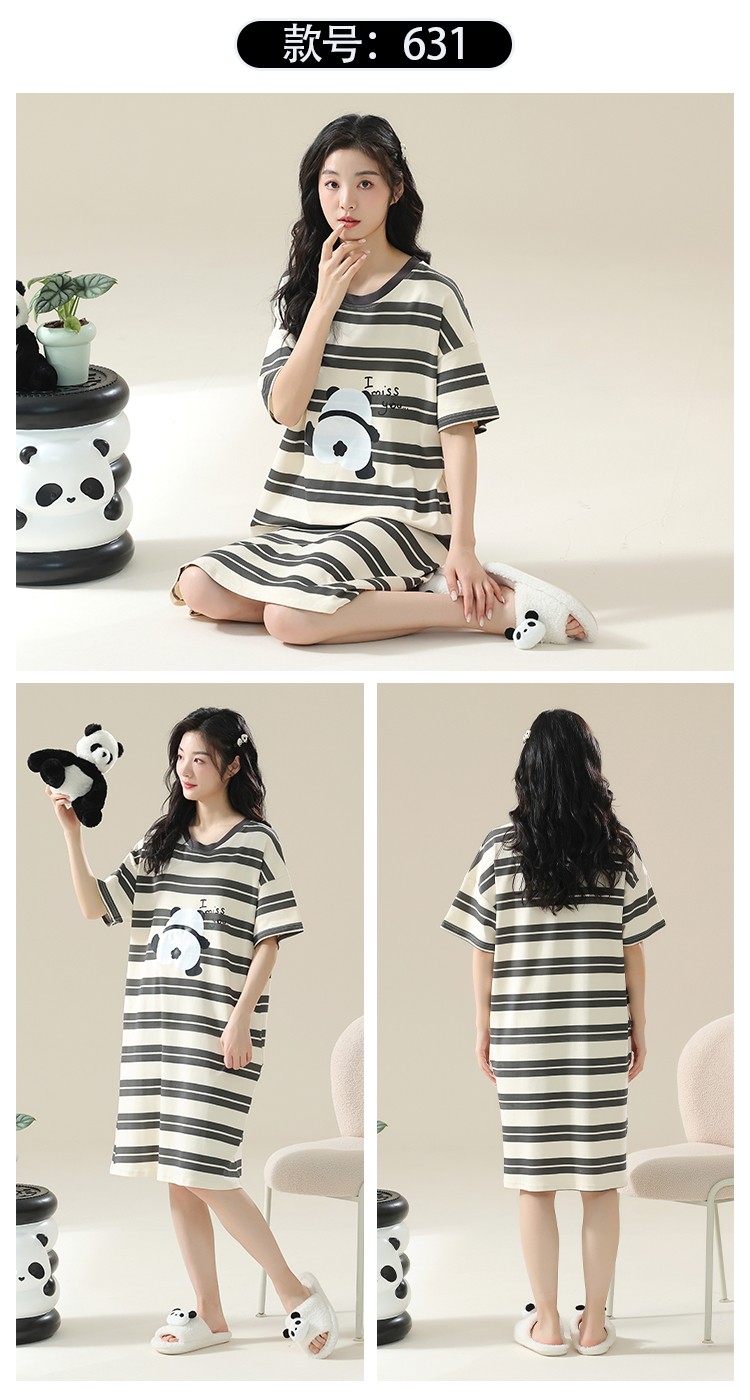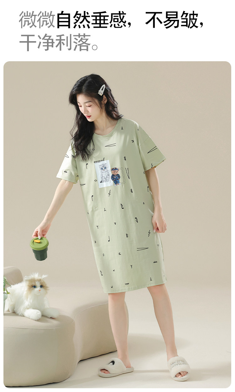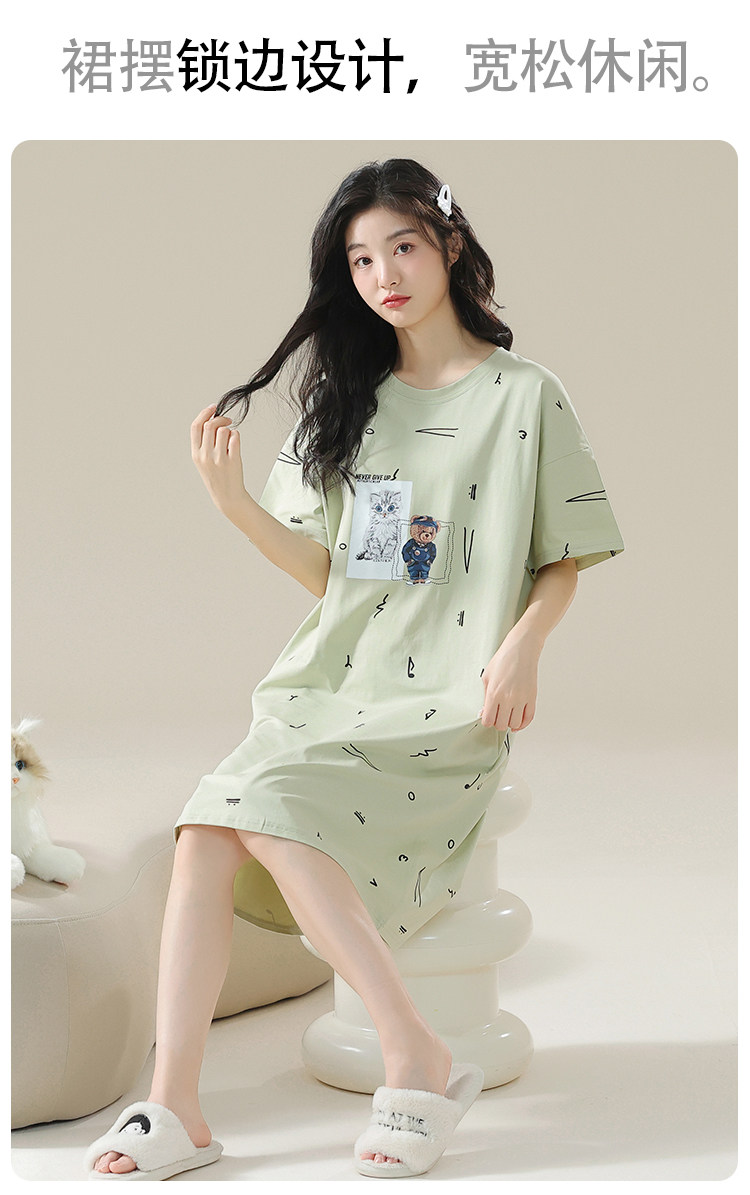 Cat-Themed Nightgown for Women, Summer Pure Cotton Pajamas, Thin Style, Can Be Worn Outside, Loose Fit, Plus Size, Mid-Length Dress, Loungewear