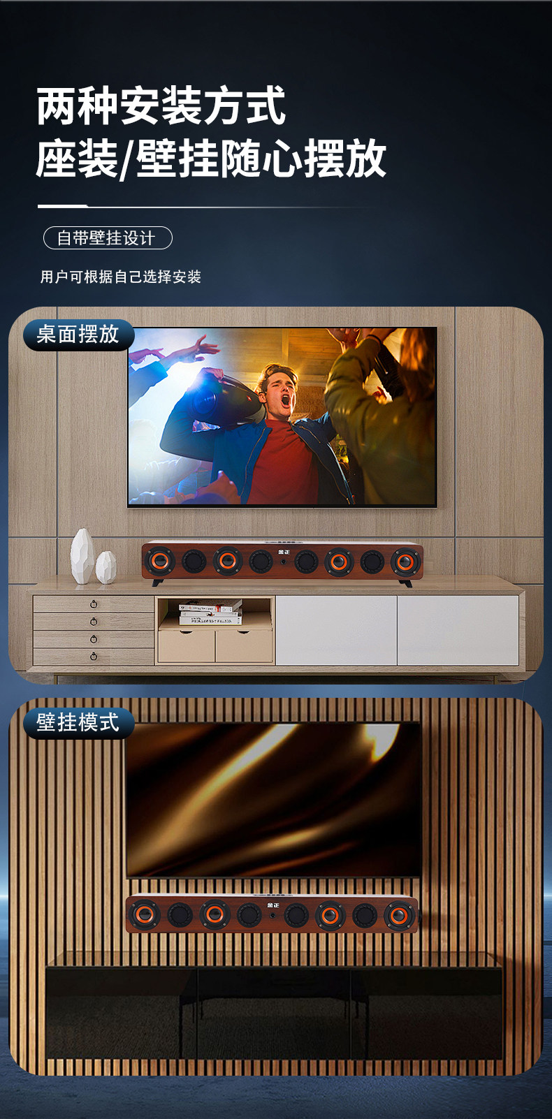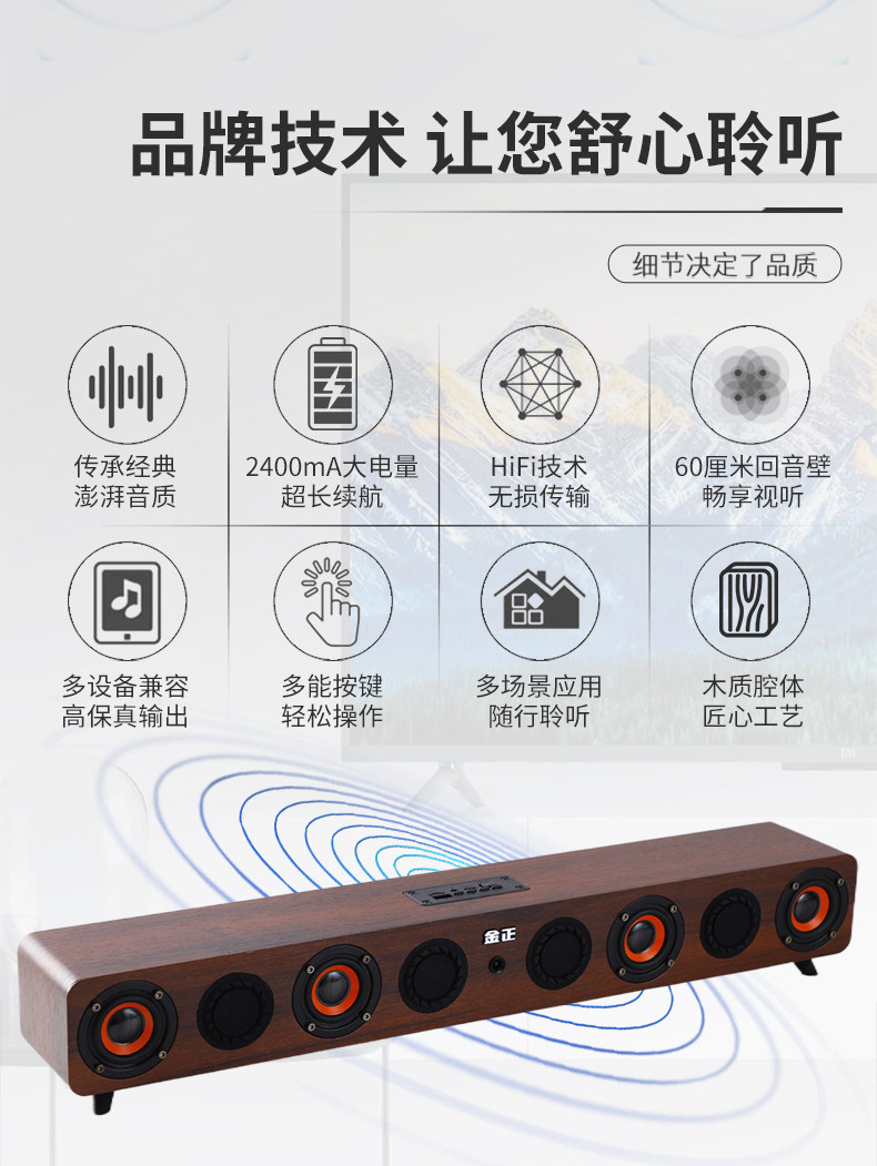 German Berlin Sound Retro Wooden Bluetooth Speaker Home Theater Soundbar Long Speaker Subwoofer