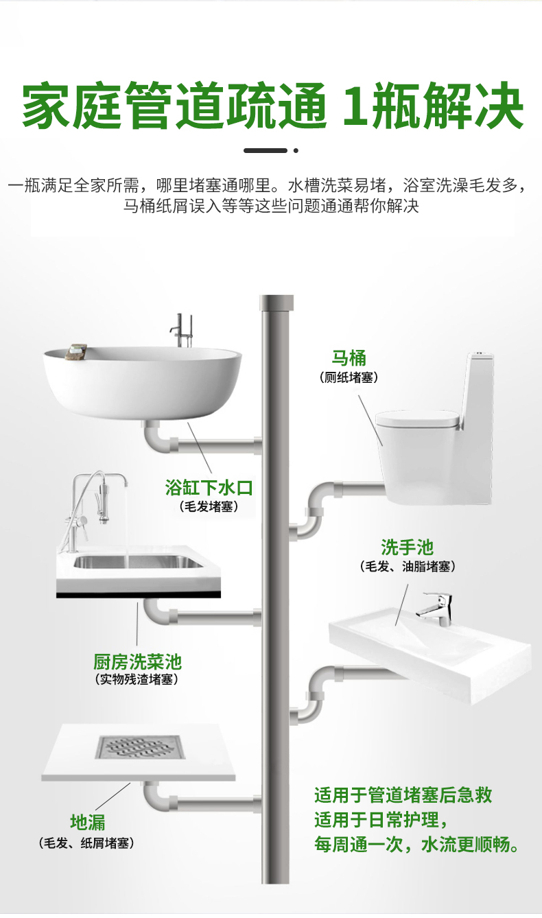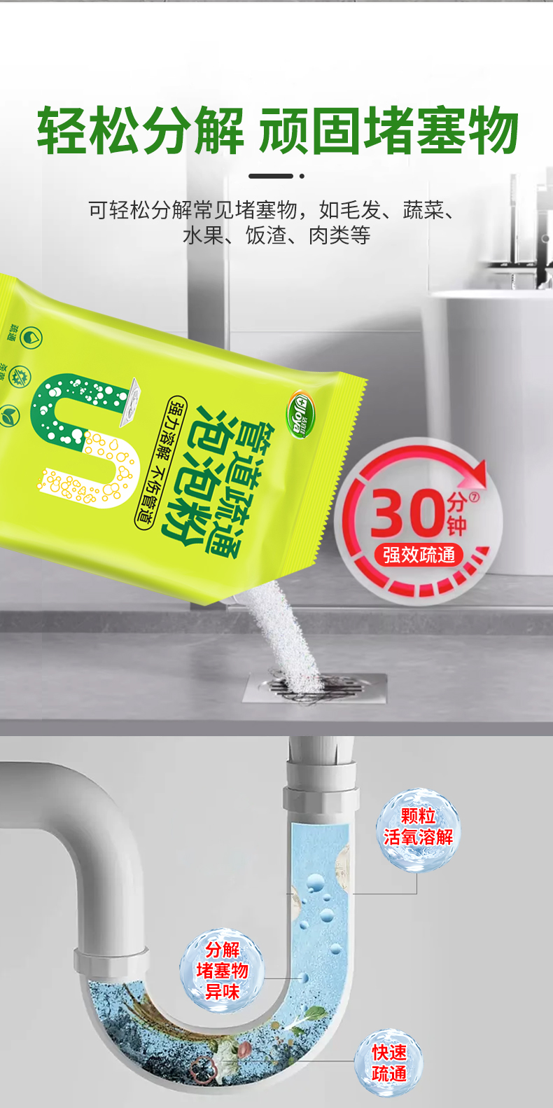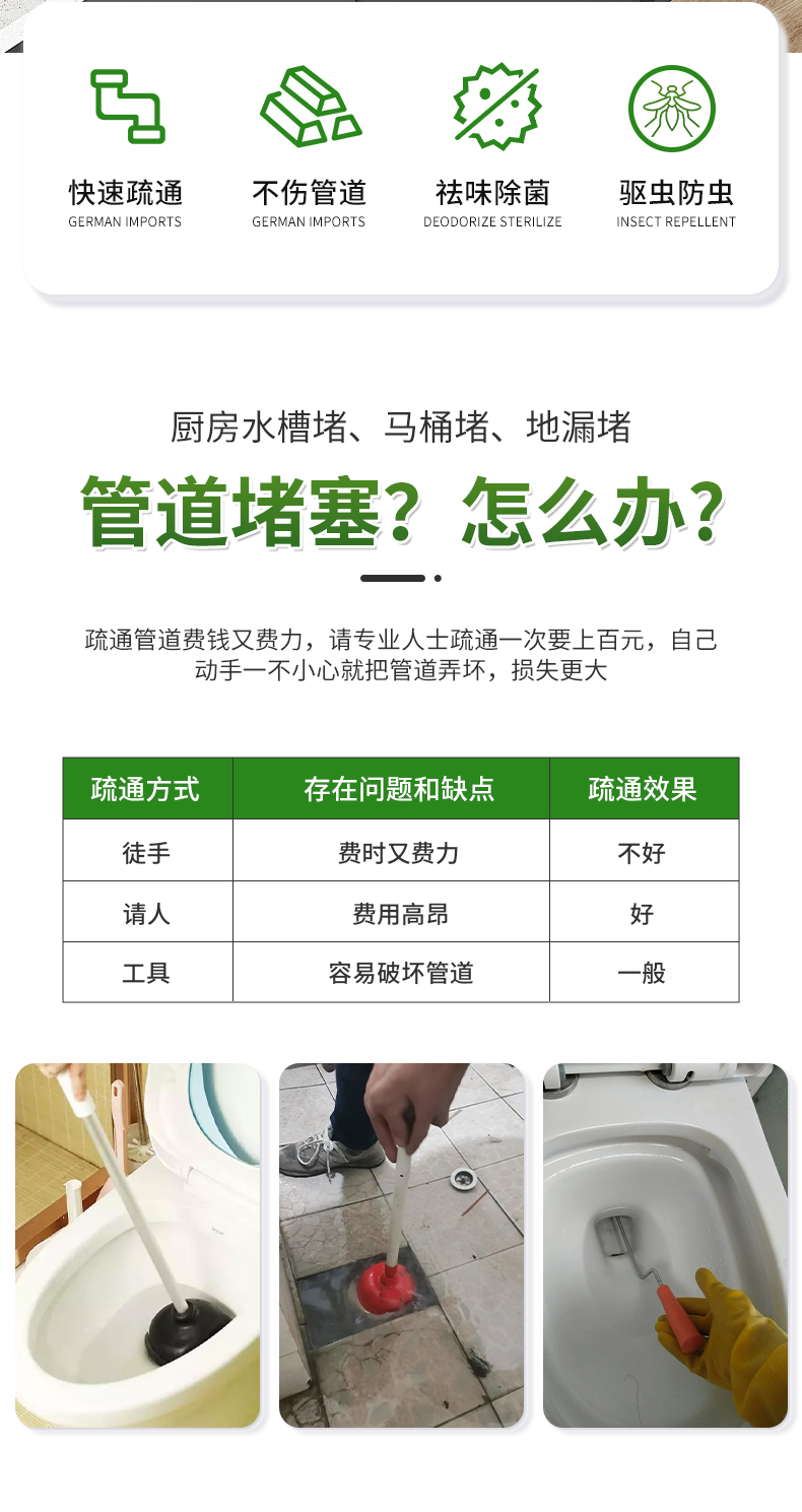 管道疏通剂下水道强力高速溶解泡泡粉神器第厨房厕所一名油污堵塞