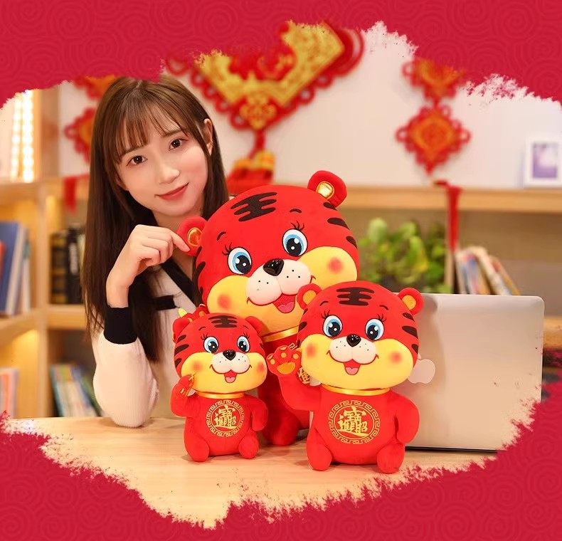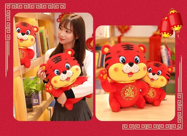 Мягкая игрушка-талисман Тигр (Год Тигра), милый и удачливый красный тигр, реалистичная плюшевая игрушка-тигр, большой плюшевый тигр-игрушка для лучшего друга