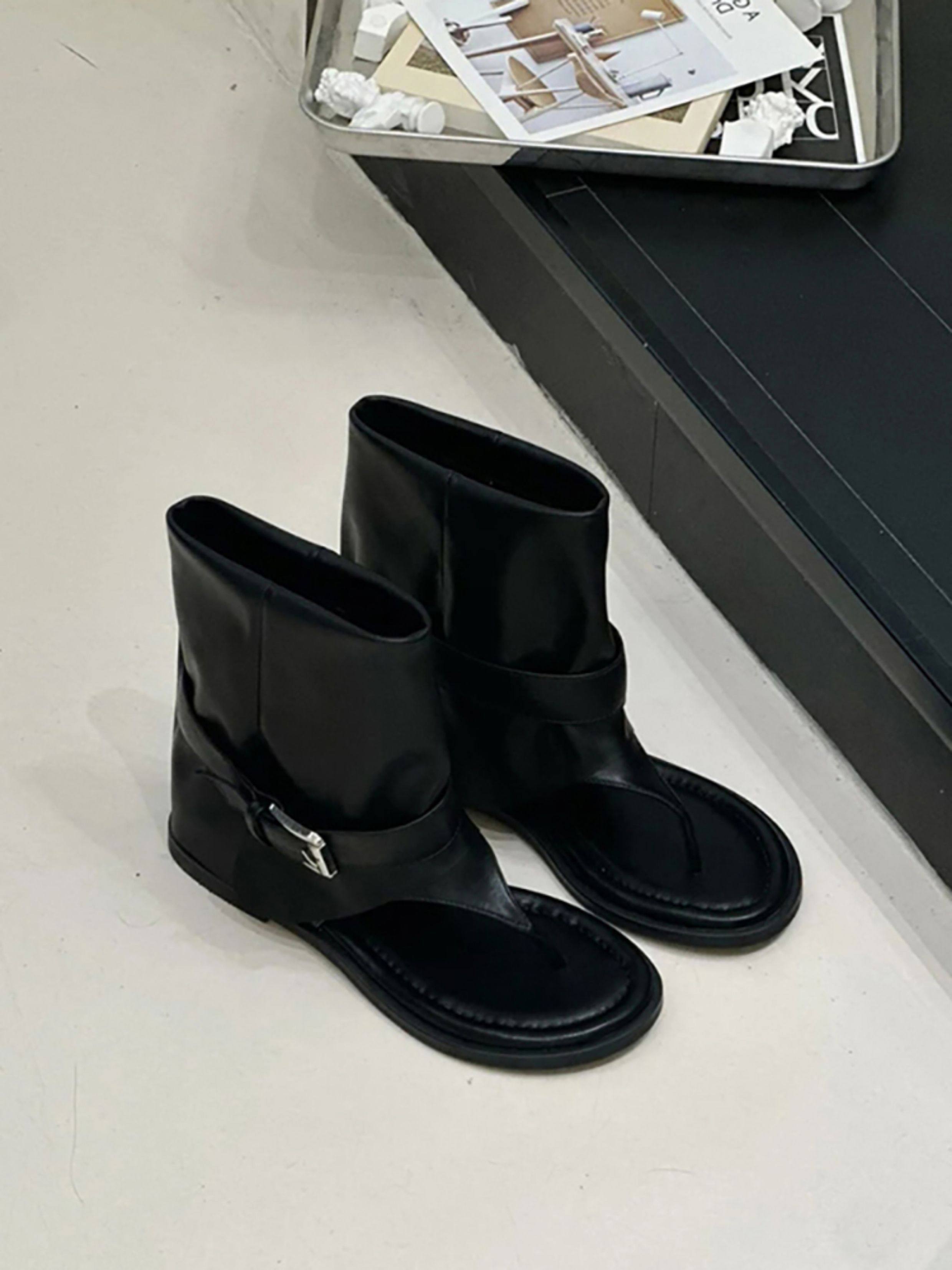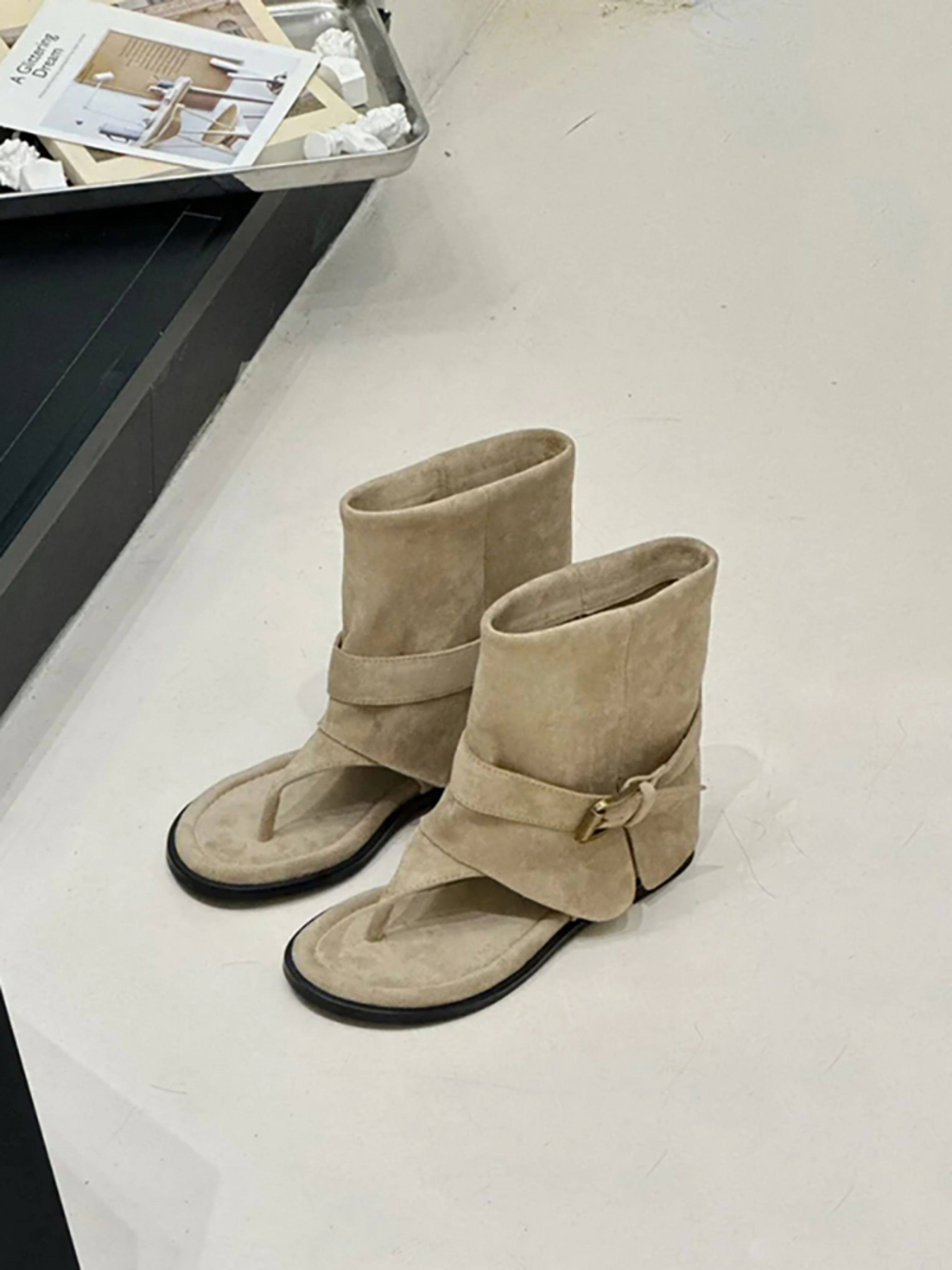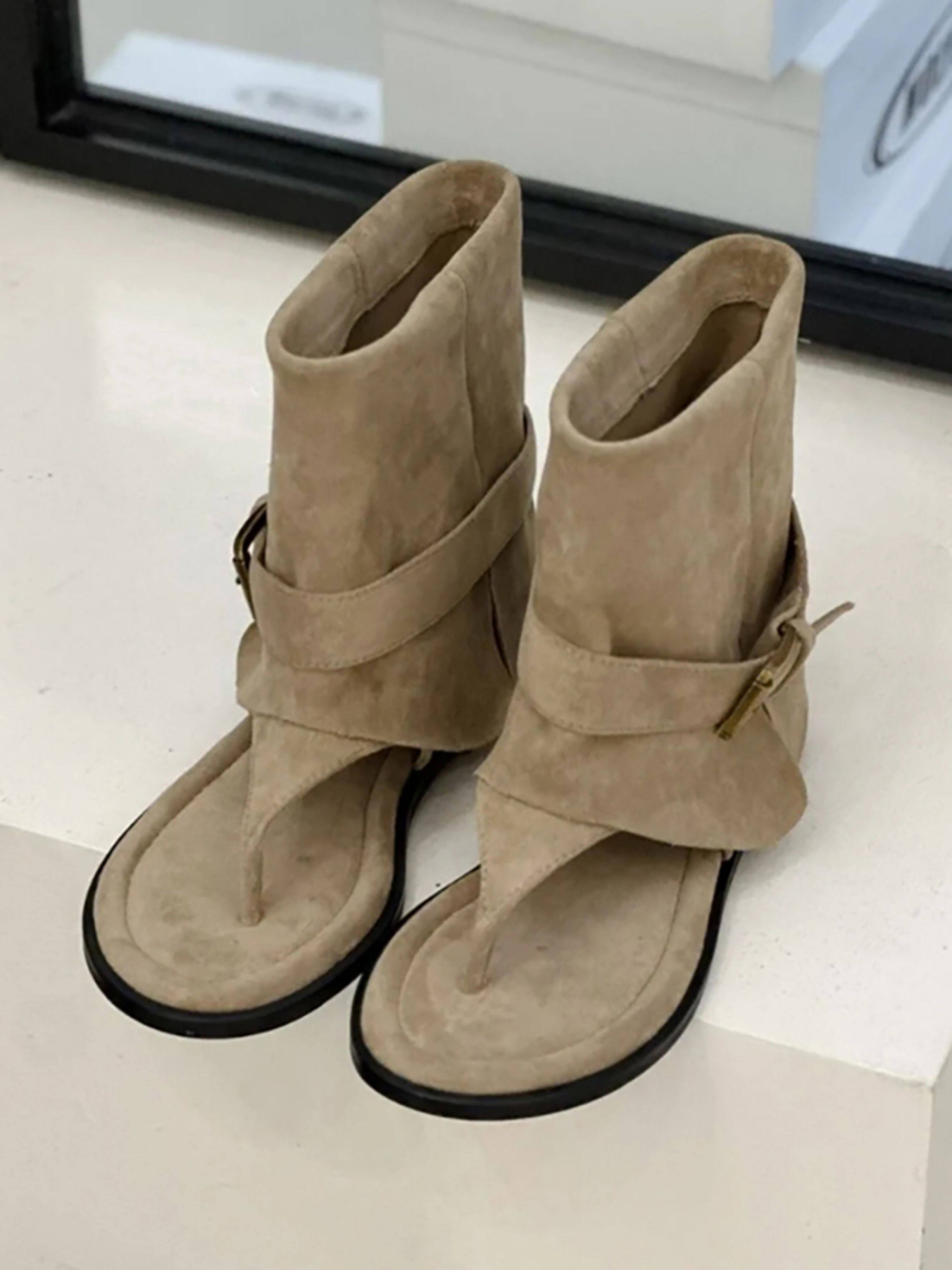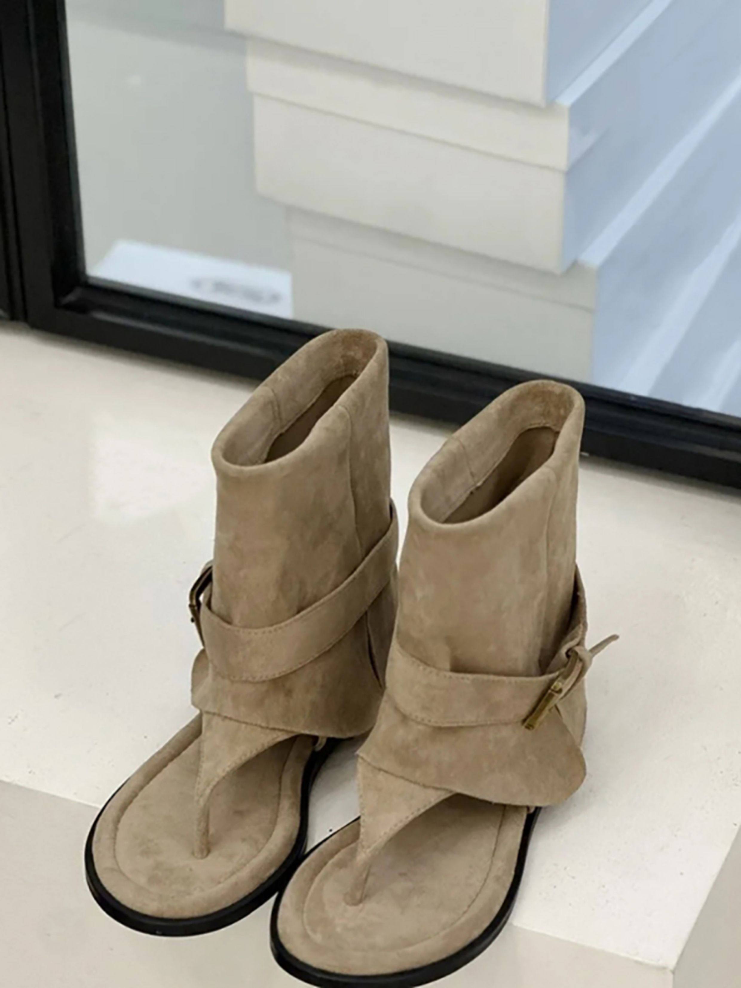 Сандалии-шлепанцы из овчины с увеличением роста, в стиле ретро, с круглым носком, новая модная коллекция 2025 года, для женщин, для летнего ношения на улице