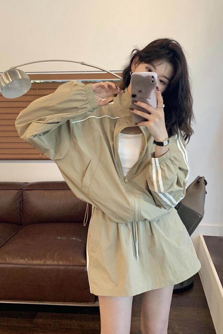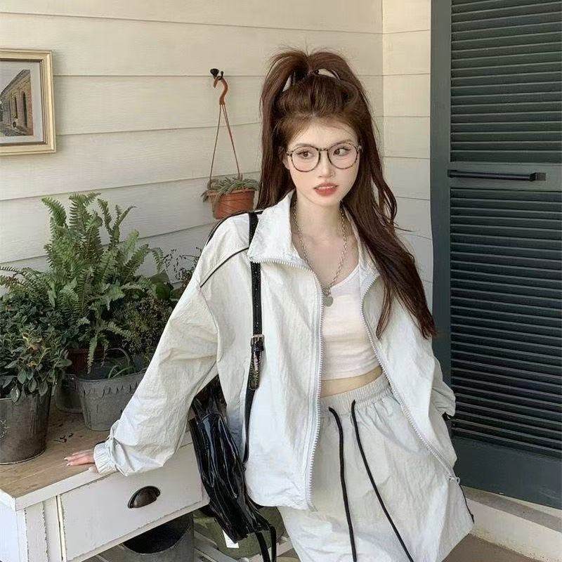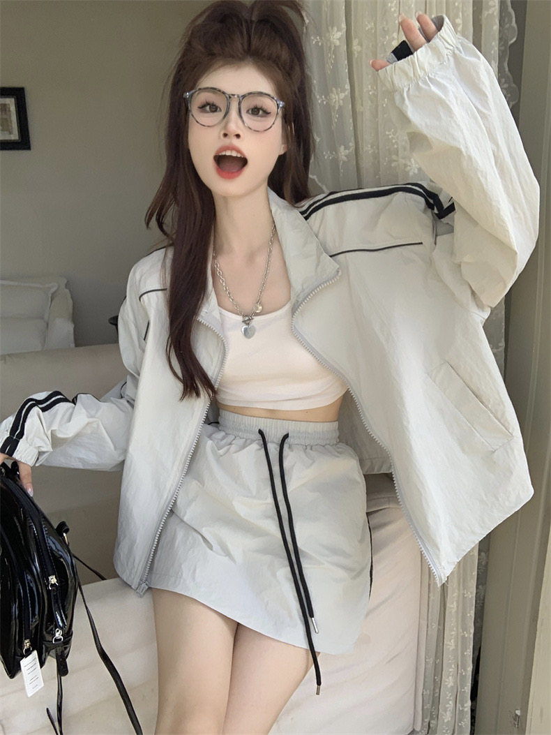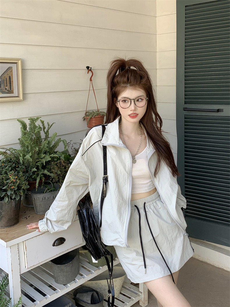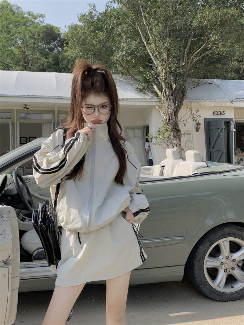 防晒冲锋衣运动套装裙女夏季韩系休闲防晒衣外套松紧腰短裙两件套