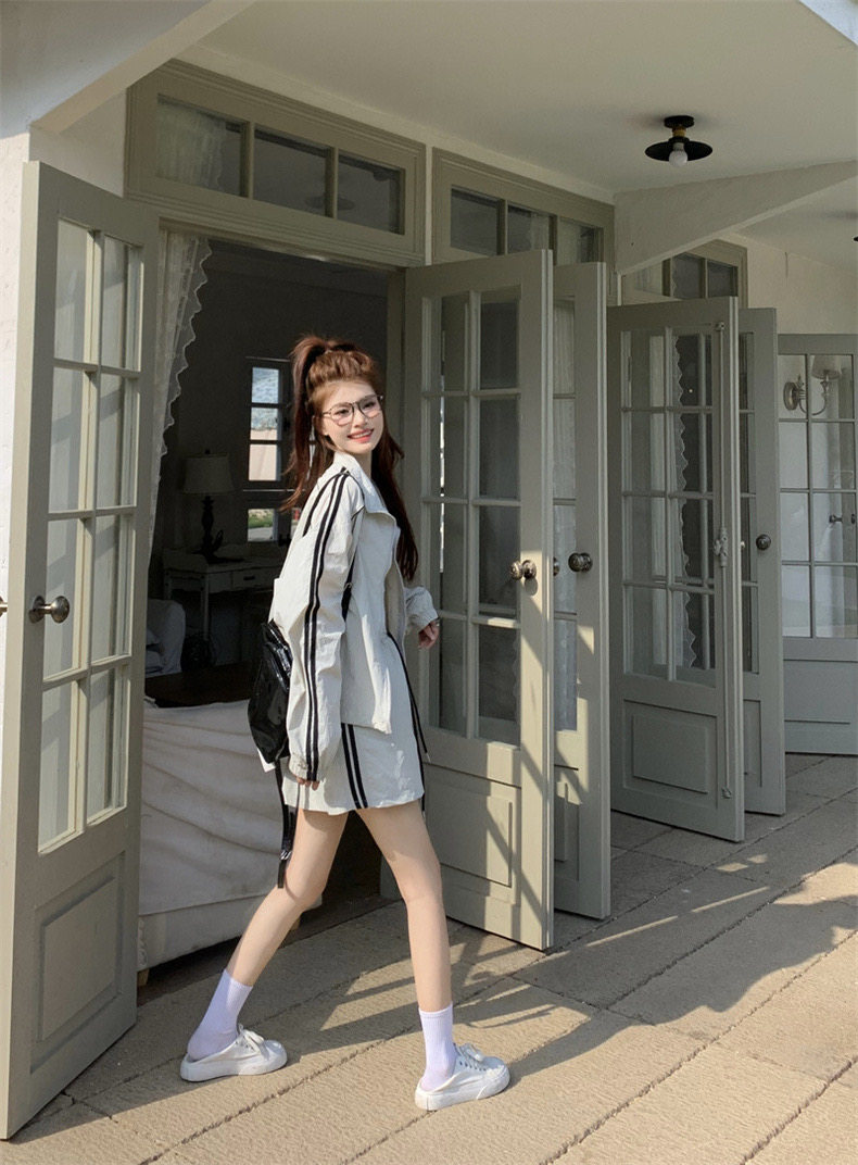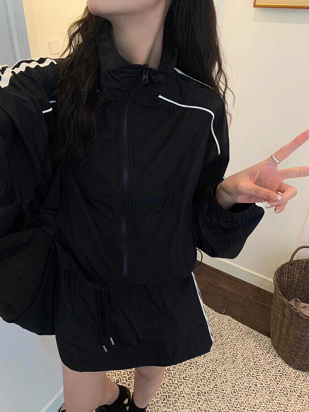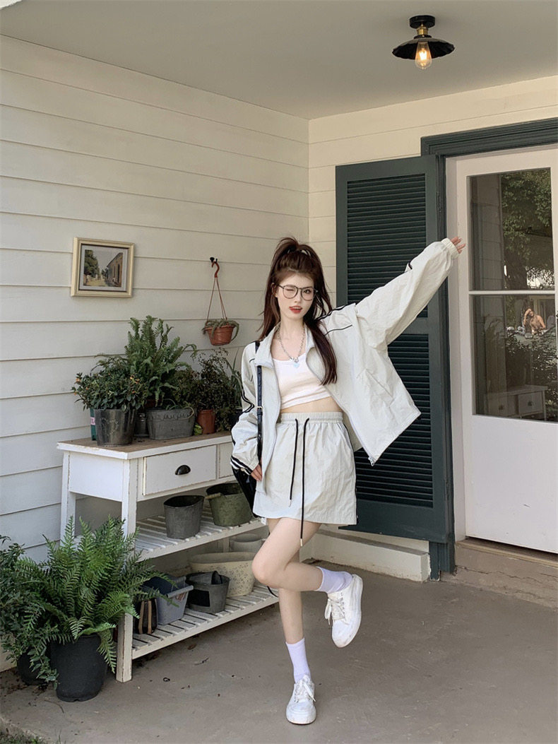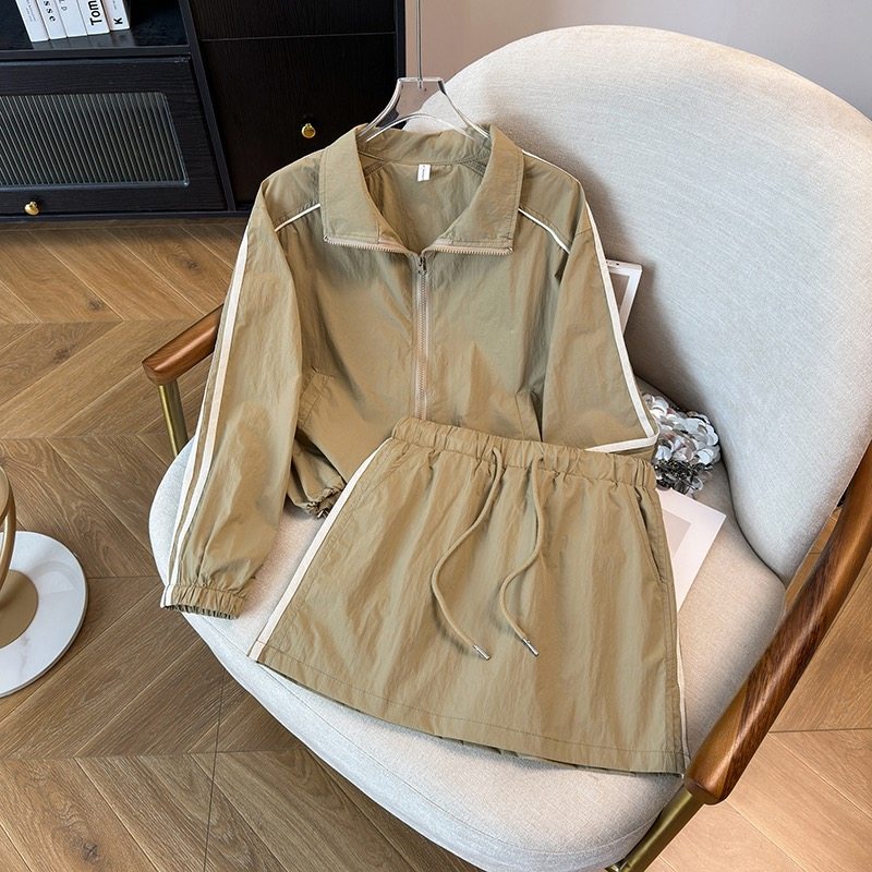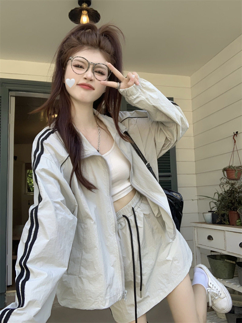 防晒冲锋衣运动套装裙女夏季韩系休闲防晒衣外套松紧腰短裙两件套