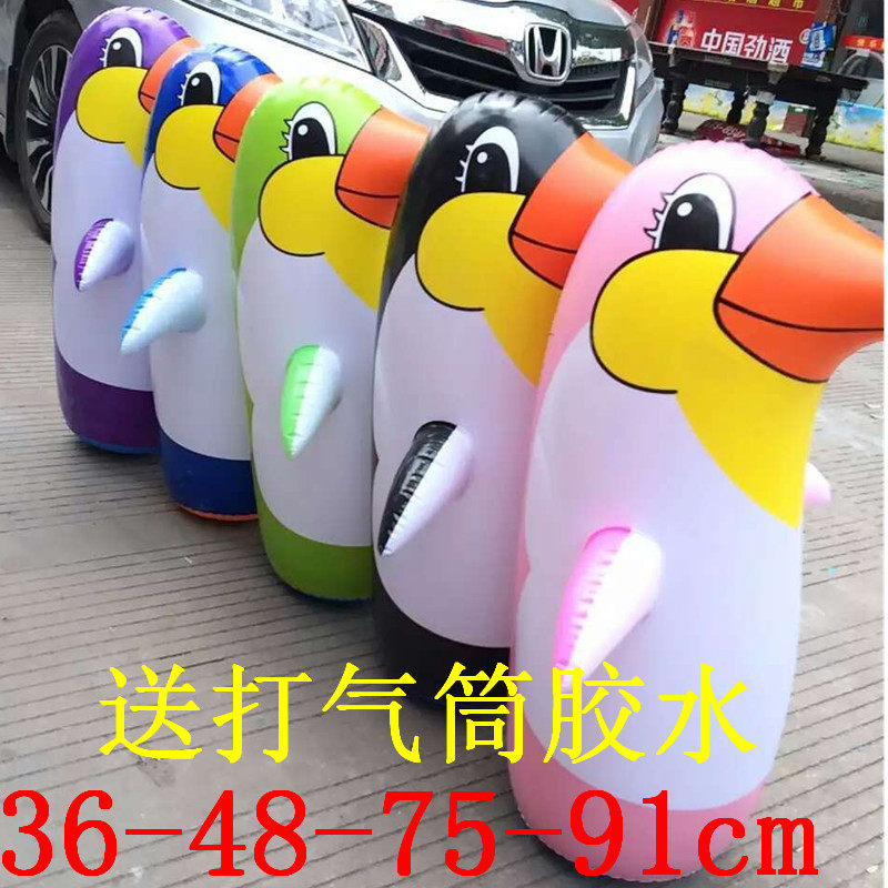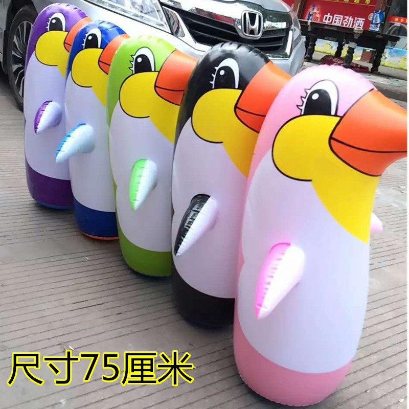 新款玩具充气彩色尖嘴企鹅不倒翁地摊儿童PVC玩具大小五色企鹅