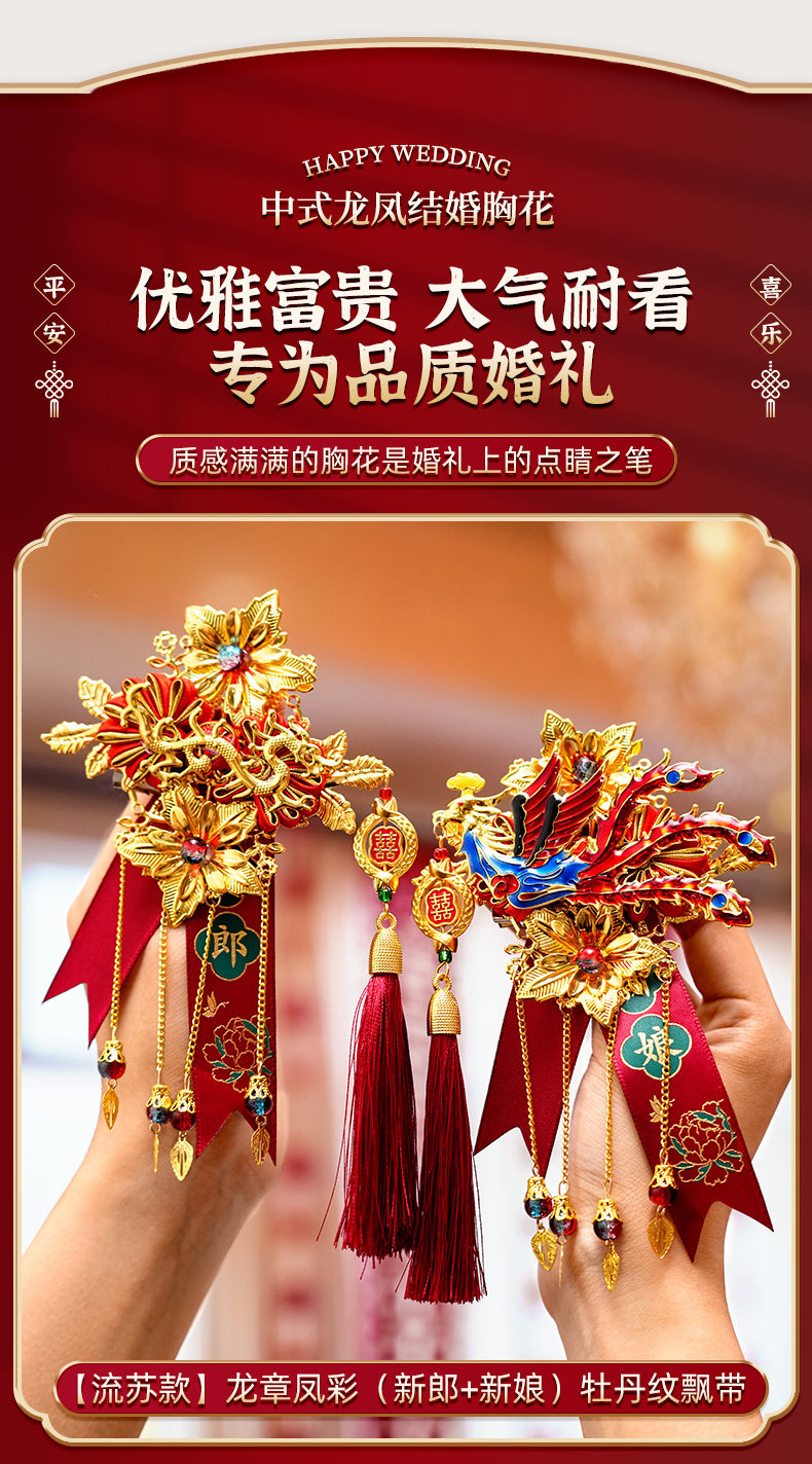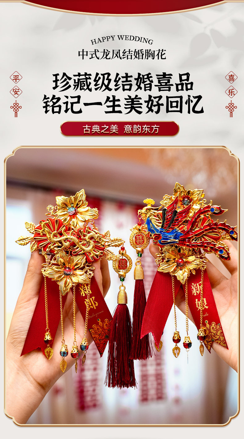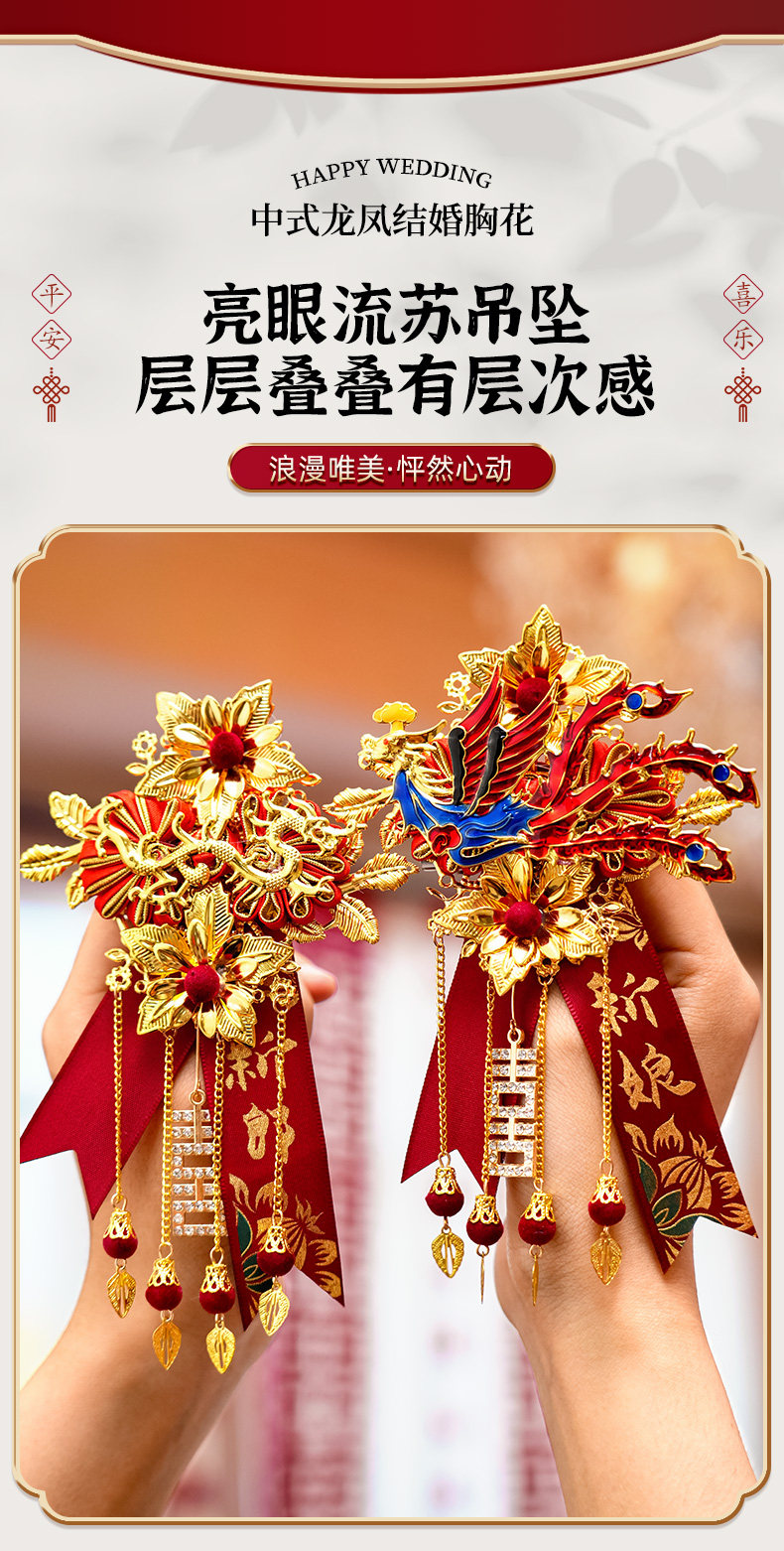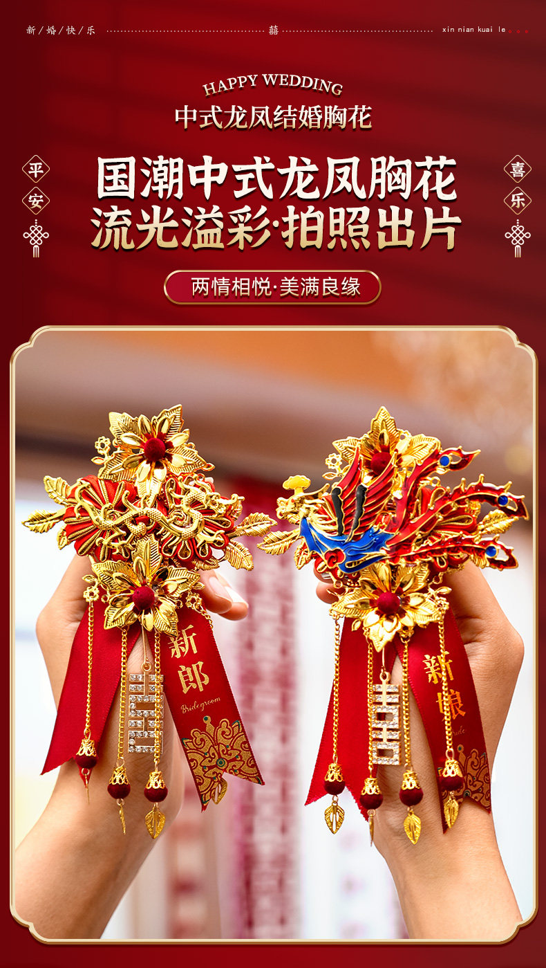 Полный набор свадебных принадлежностей, элитные корсажи с изображением дракона и феникса для свадьбы, пара новых свадебных корсажей для жениха и невесты, полный комплект корсажей.