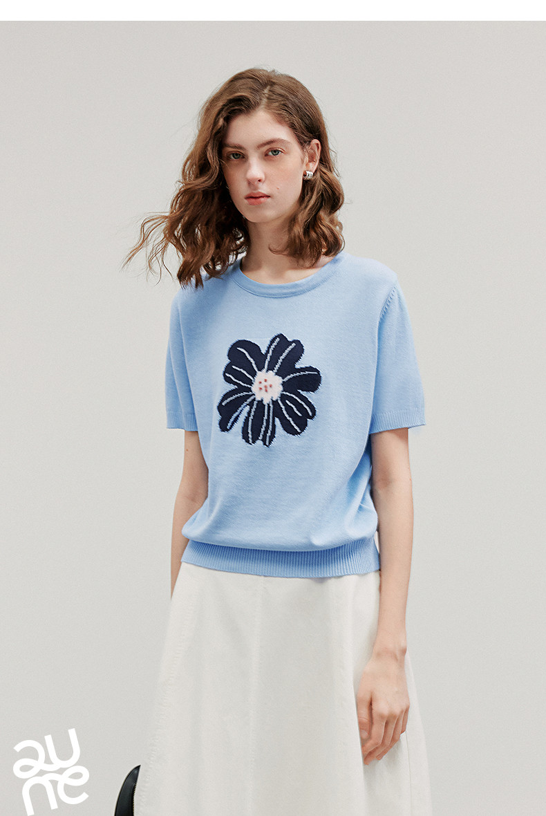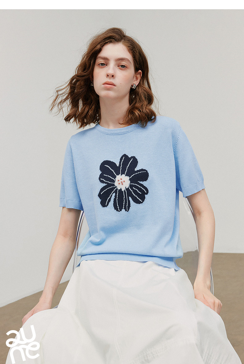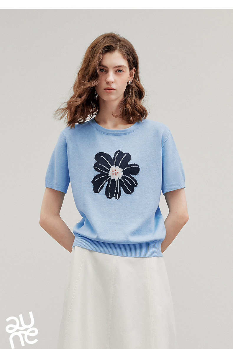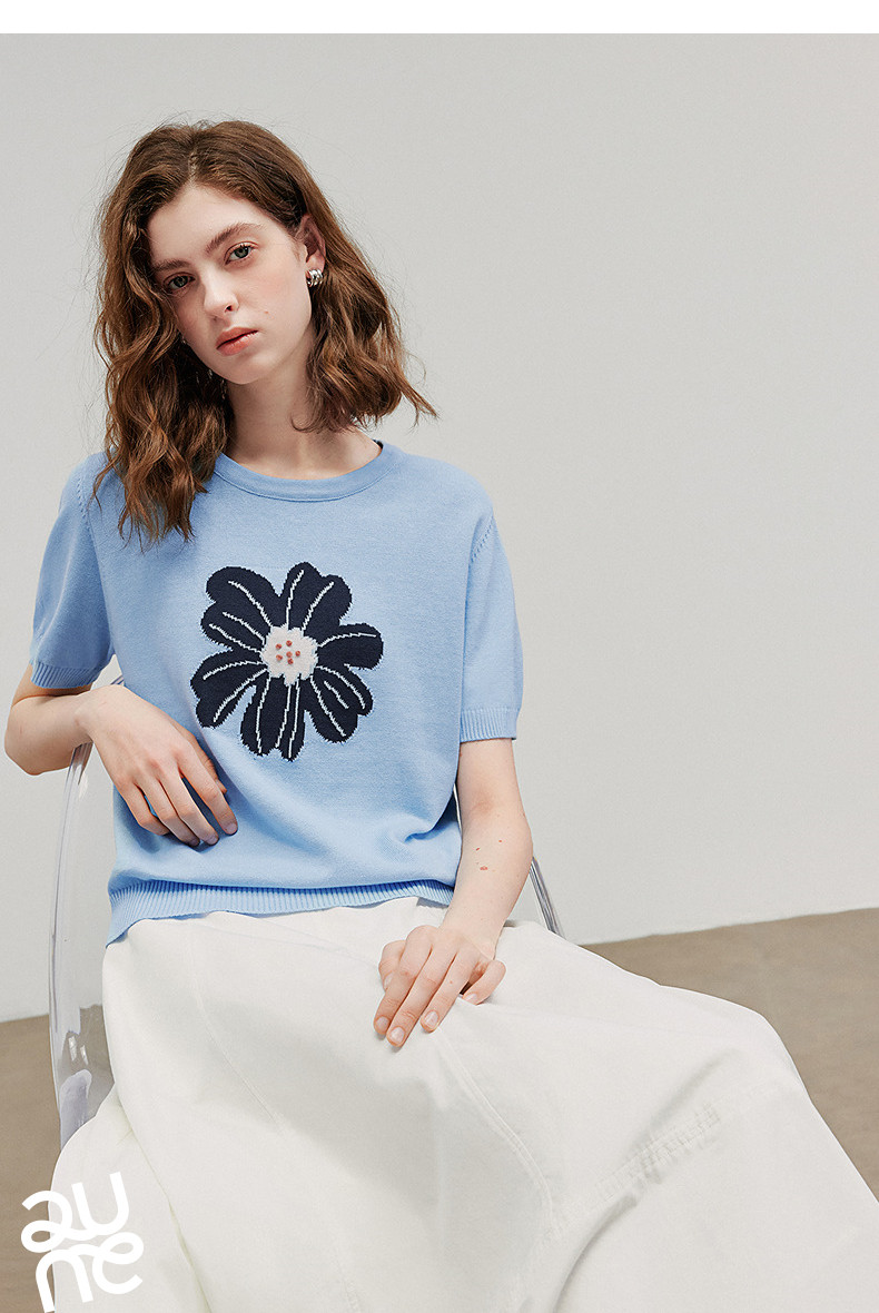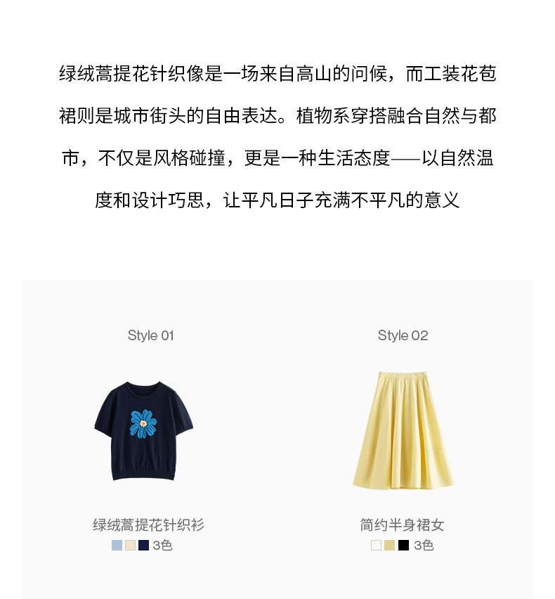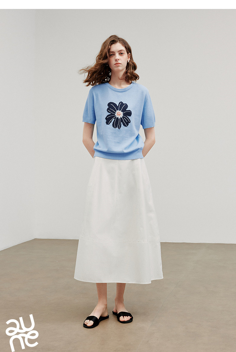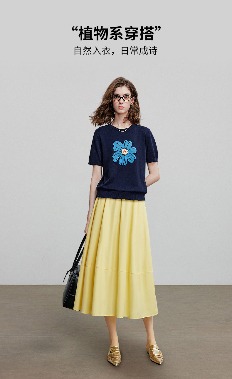 初语2026夏季新款穿搭花卉提花短袖针织衫/简约气质纯色半身裙