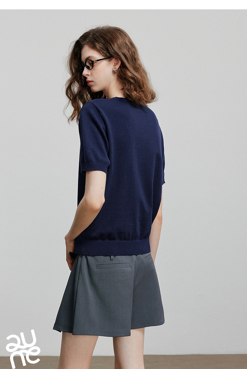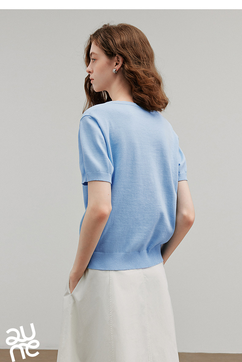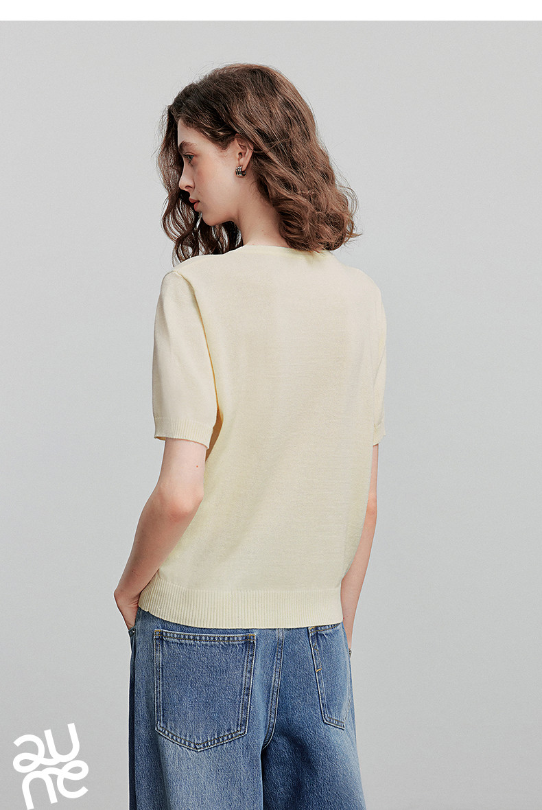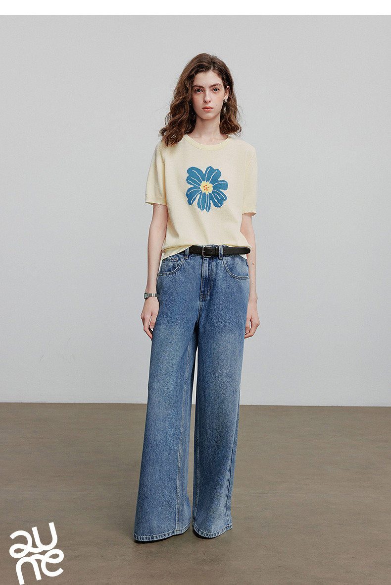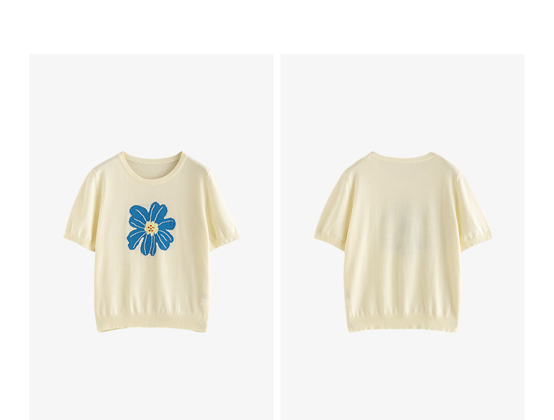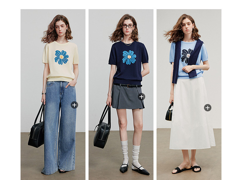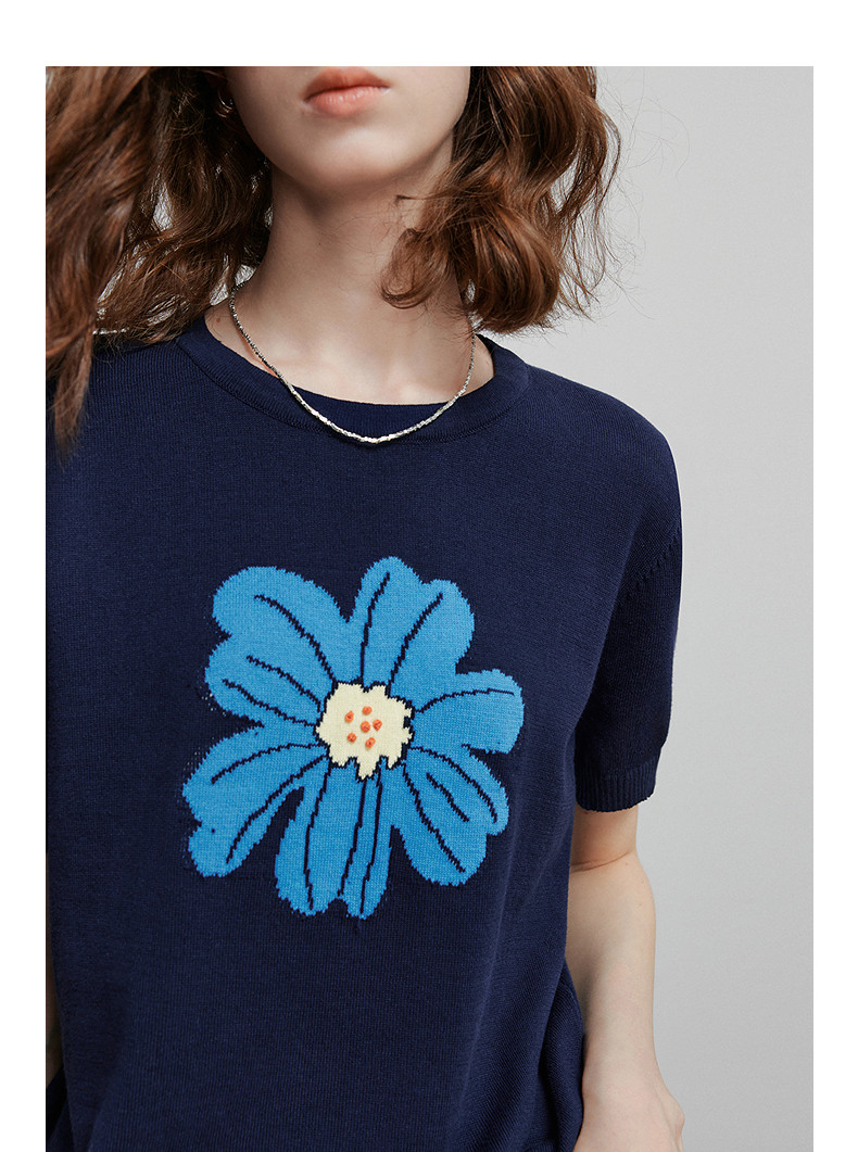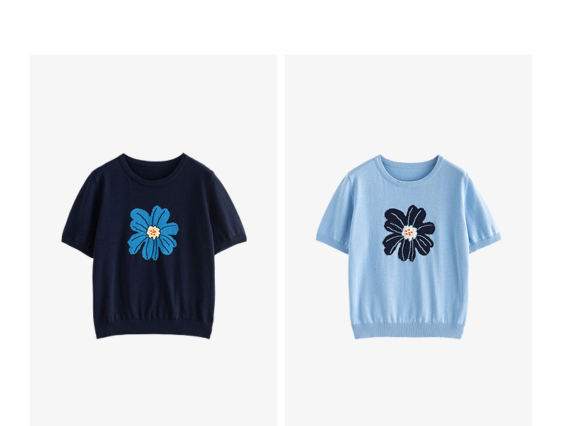 初语2026夏季新款穿搭花卉提花短袖针织衫/简约气质纯色半身裙