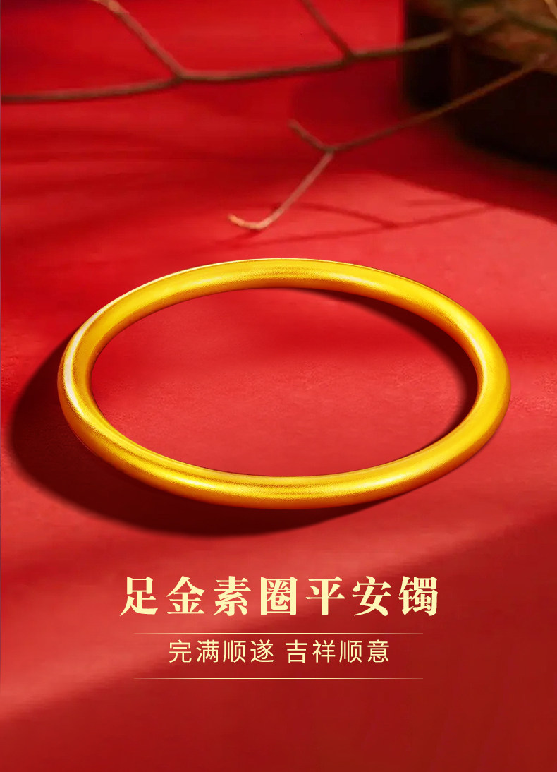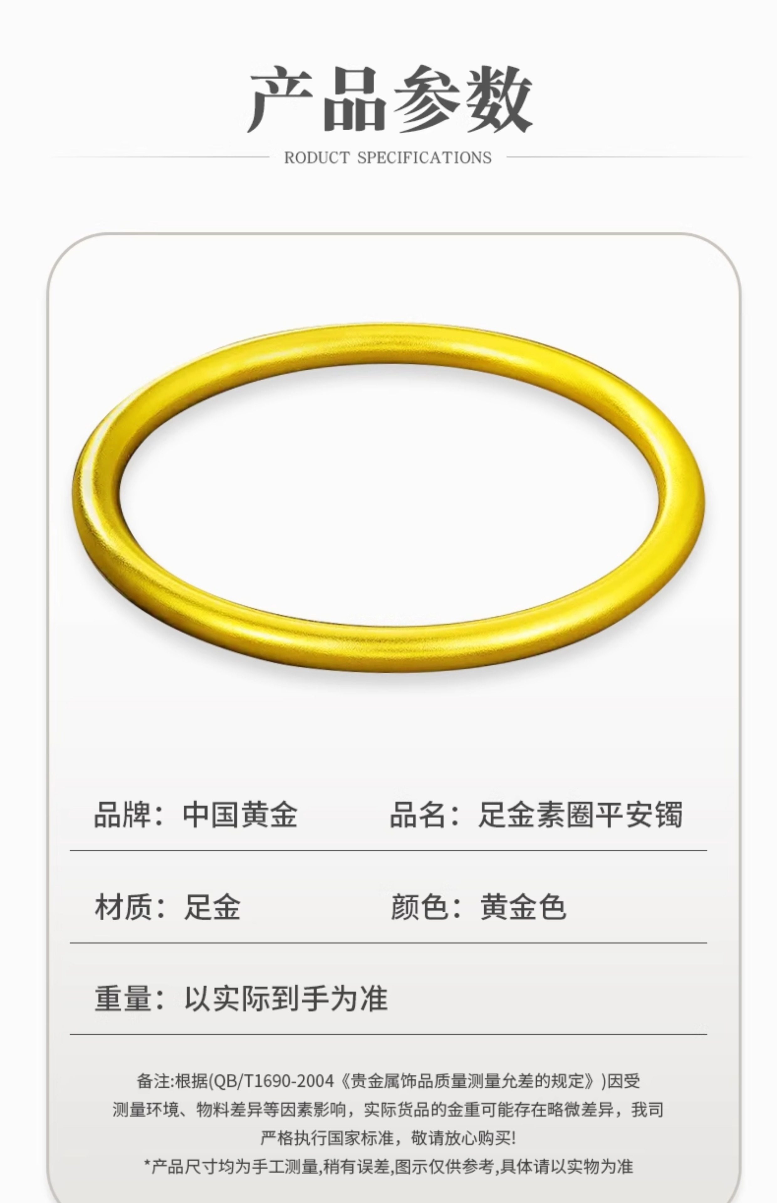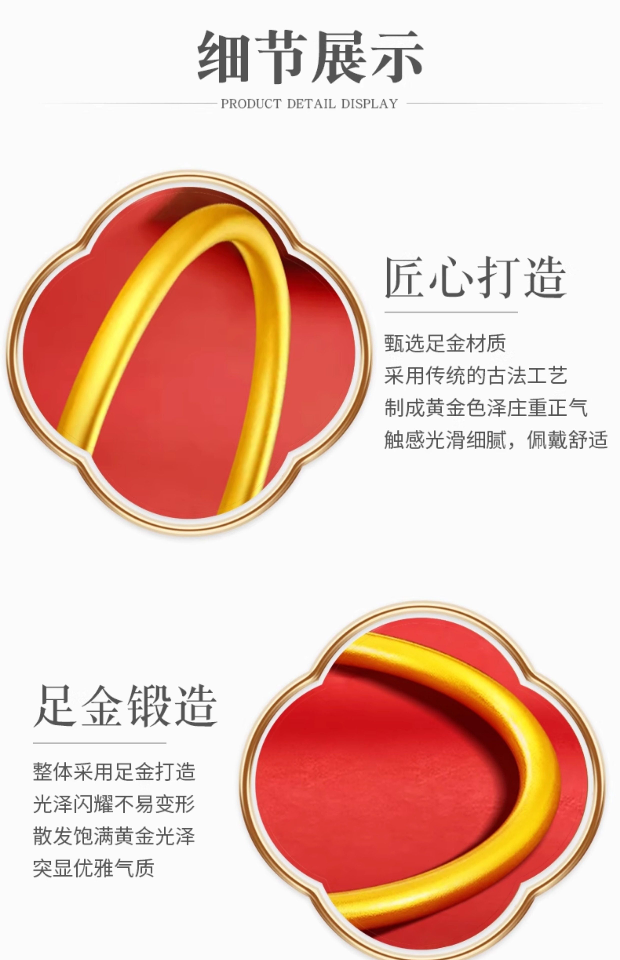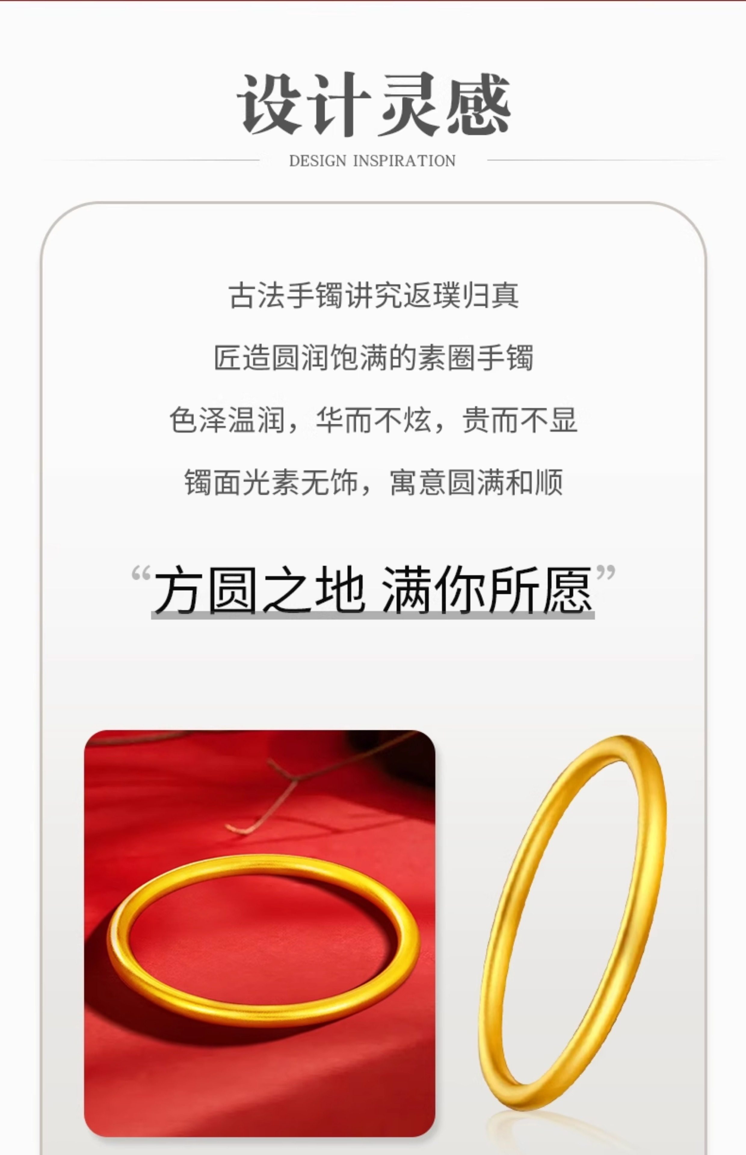 中国黄金古法素圈手镯女新款黄金999足金女士镯子生日礼物送女友