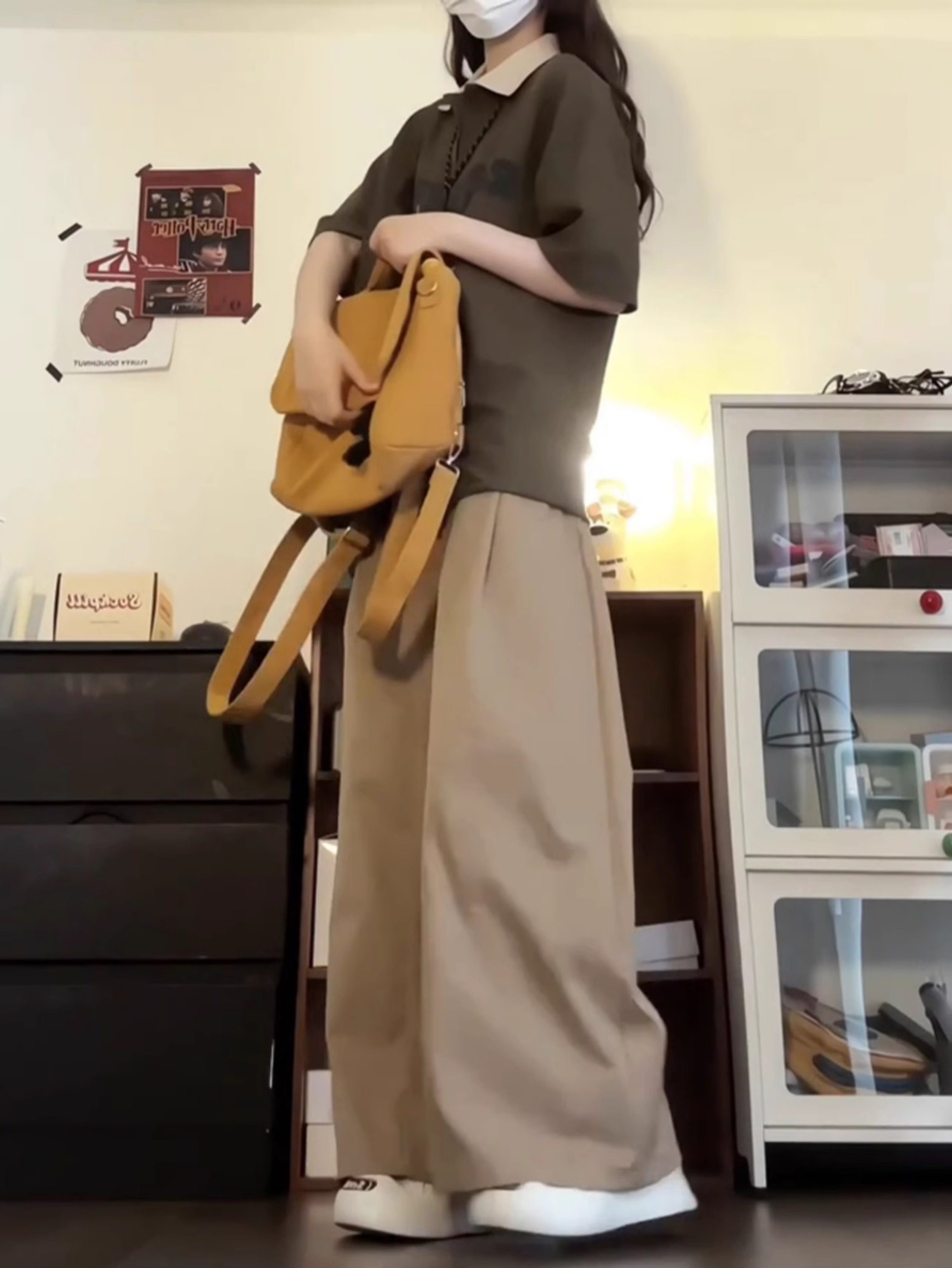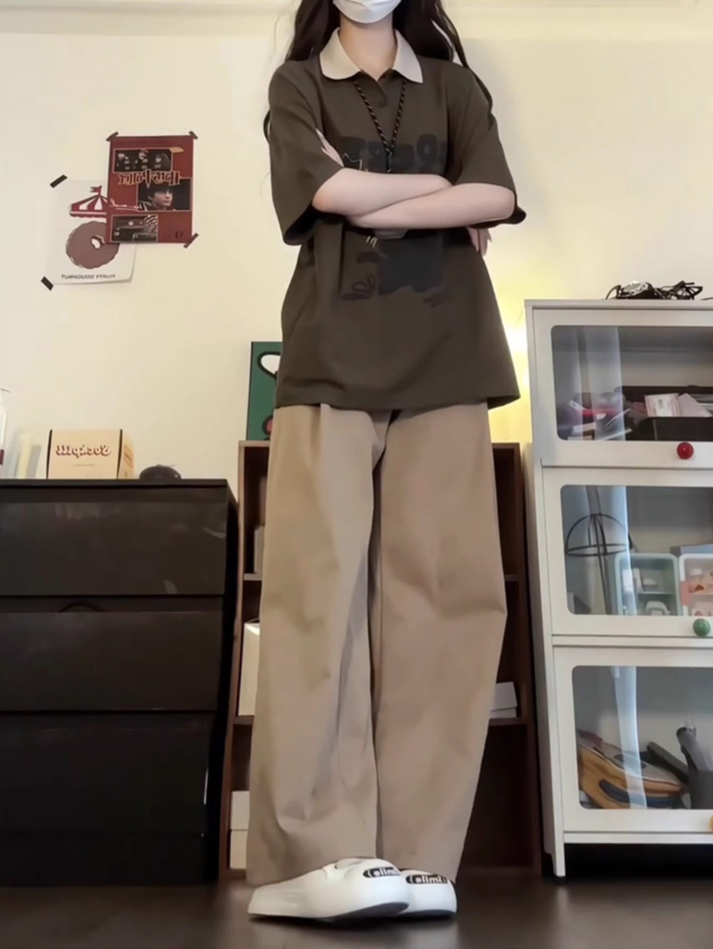 Color Classification Green Top + Khaki Trousers [Cotton Two-Piece Set]