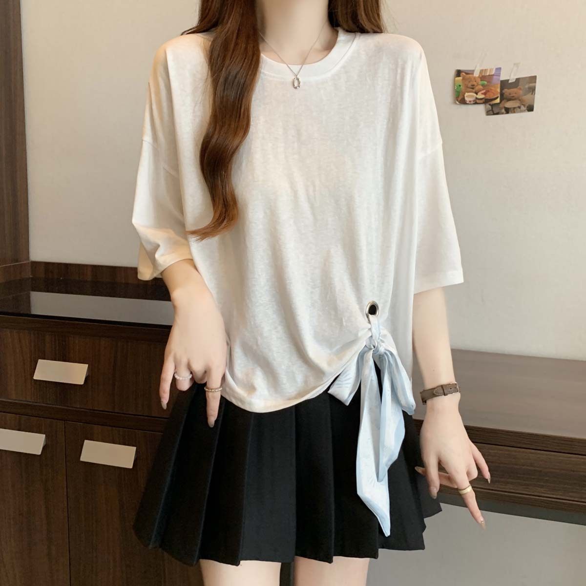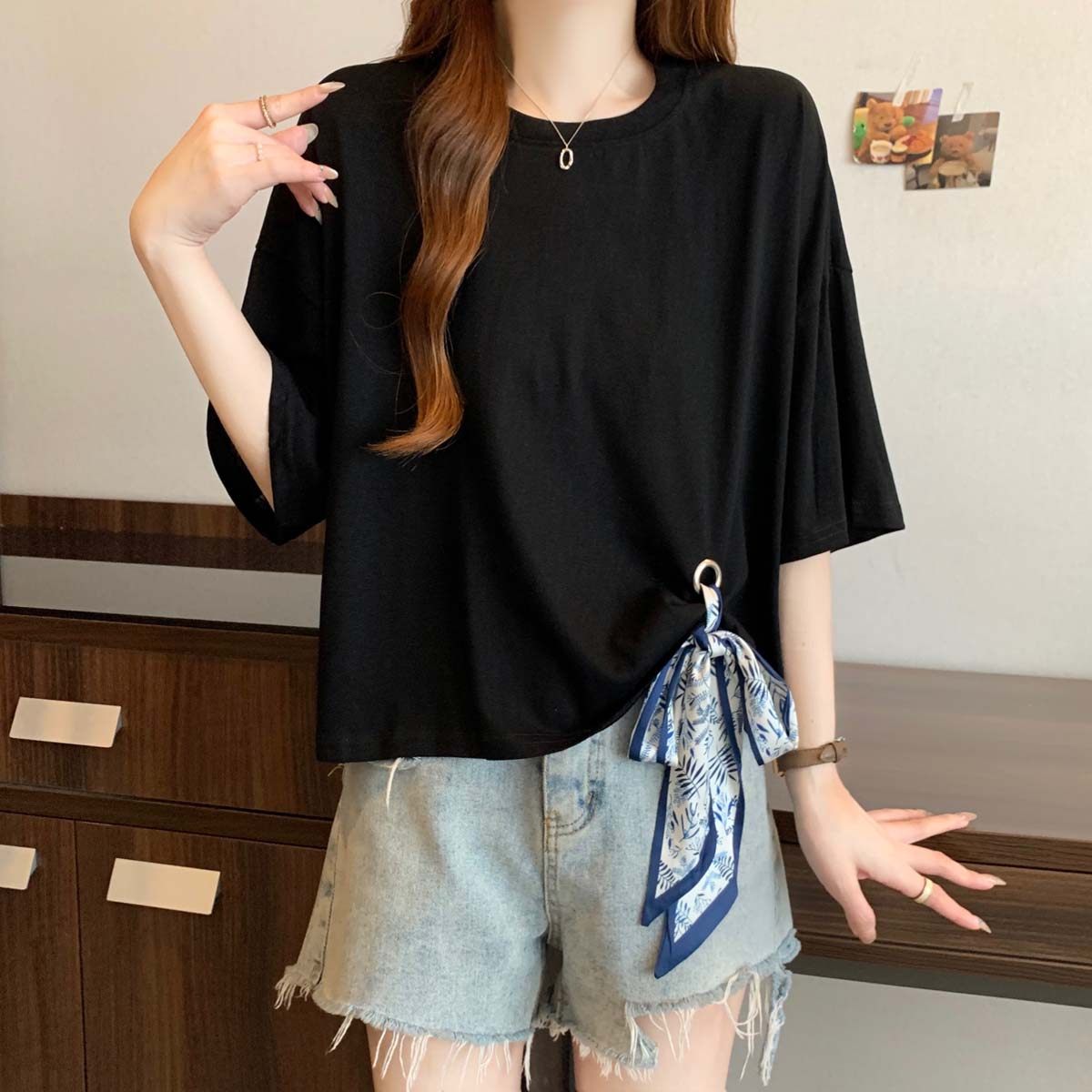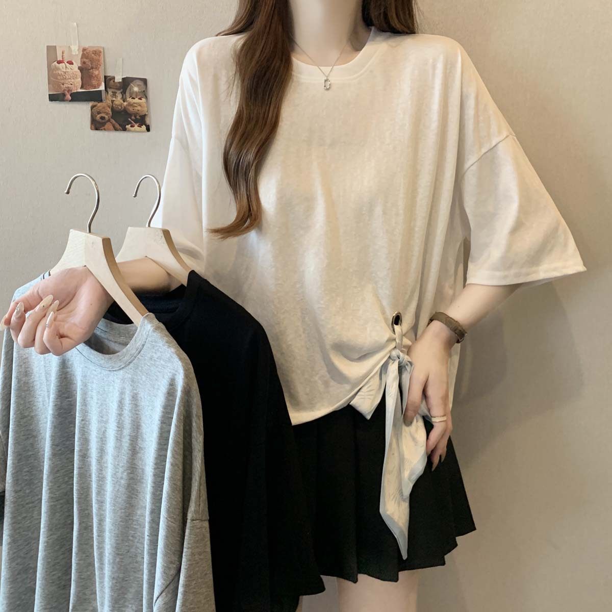 Новая летняя шелковая футболка-поло 2025 года с коротким рукавом, больших размеров, для полных женщин, серая, утягивающая, скрывающая живот, с рукавом до локтя