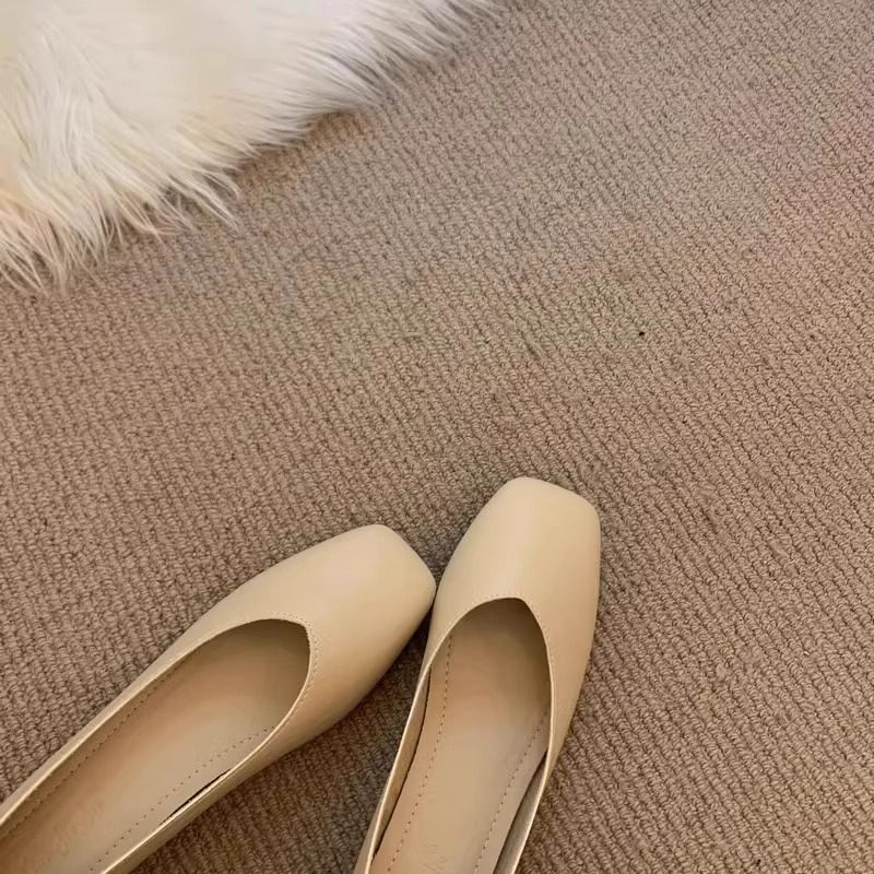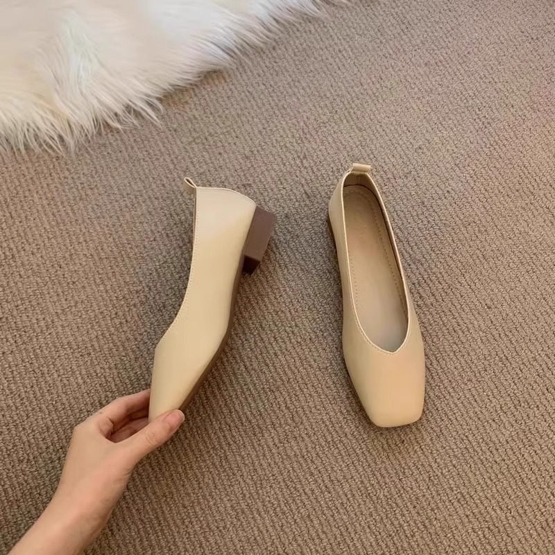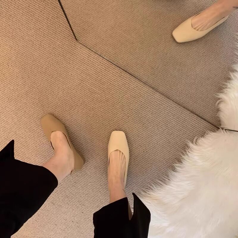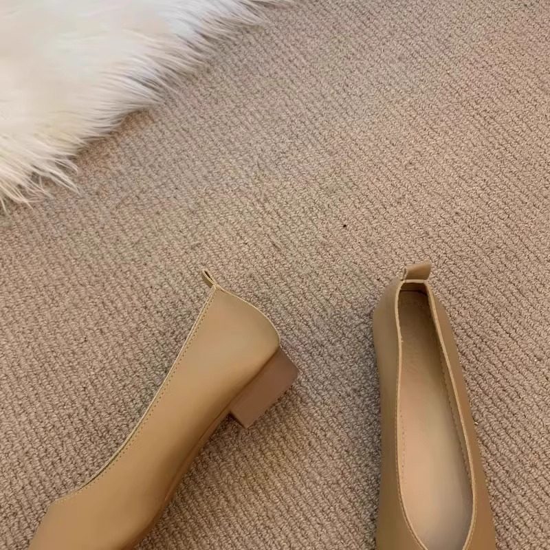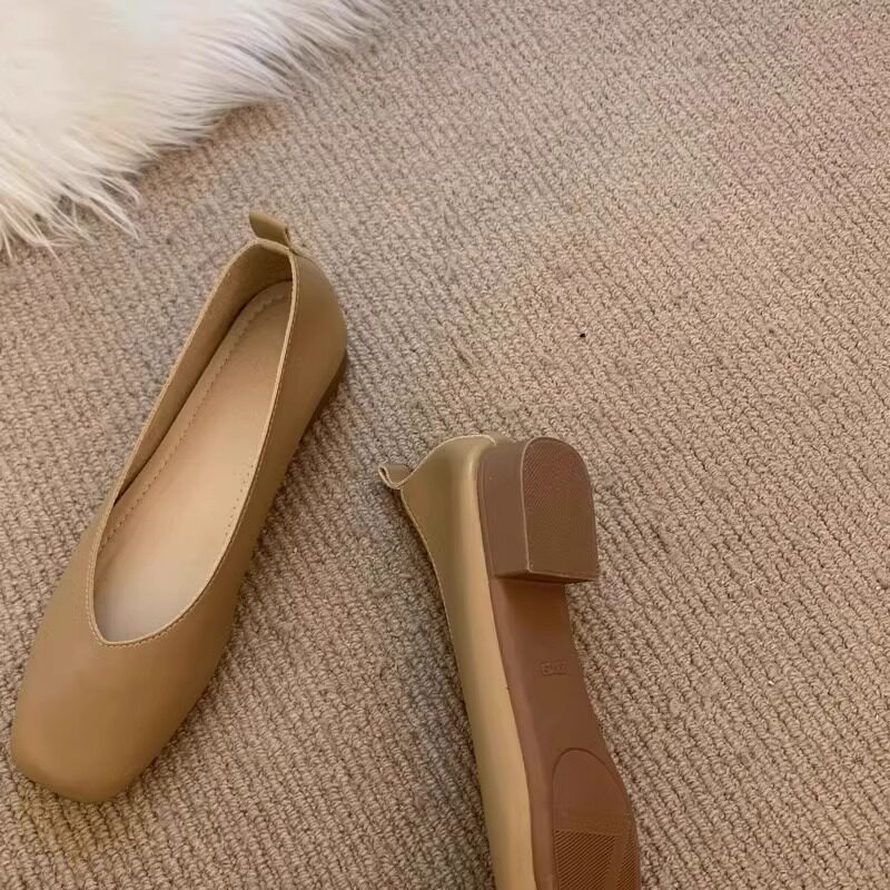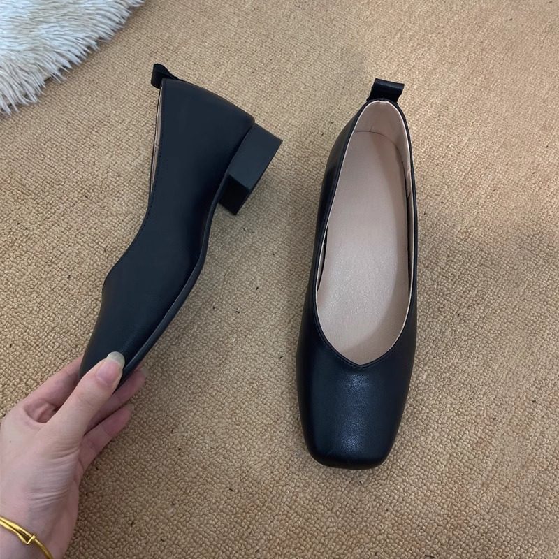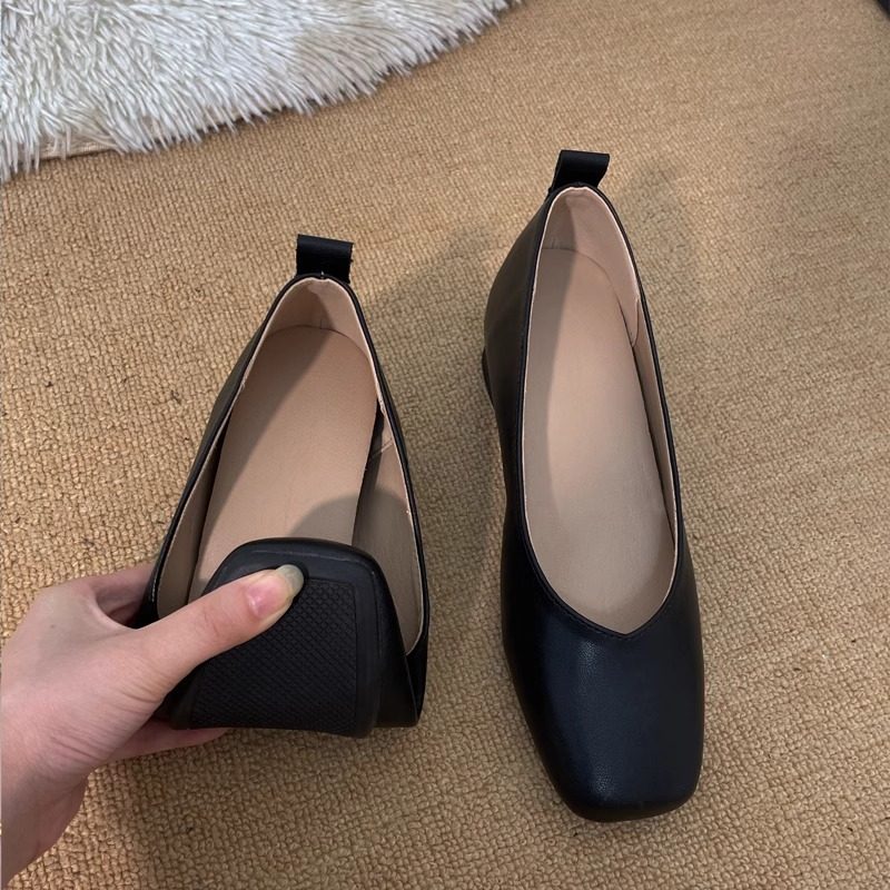 超软小羊皮~内增高小个子6cm单鞋女浅口粗跟方头奶奶鞋软底豆豆鞋