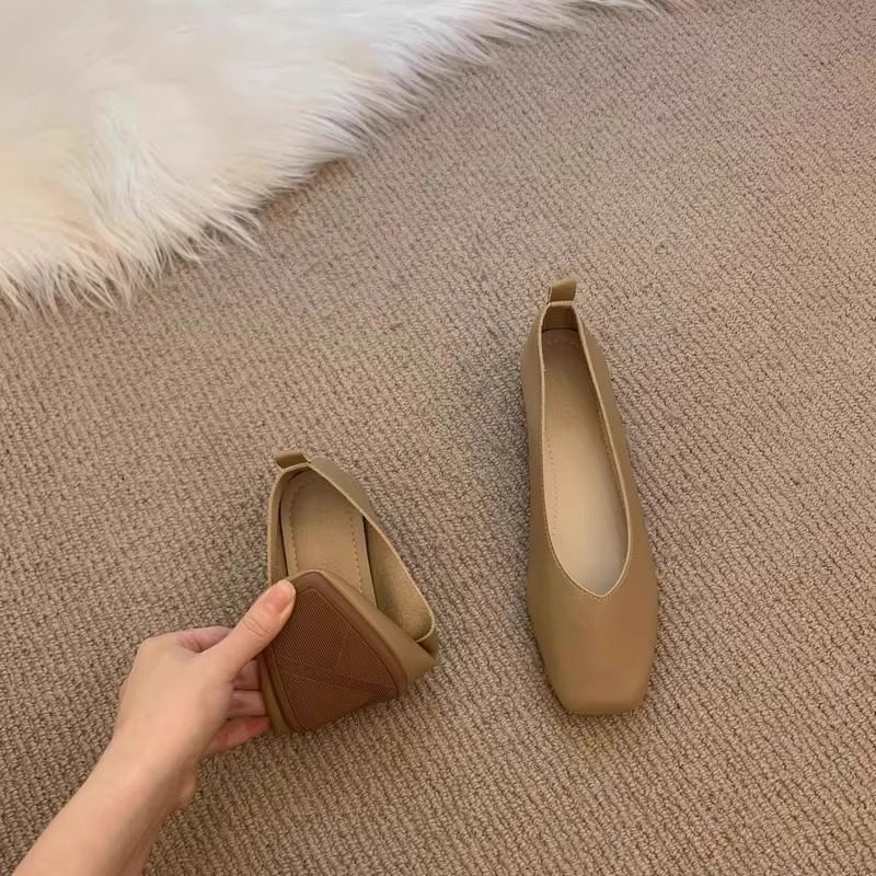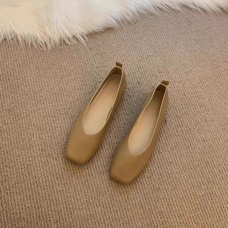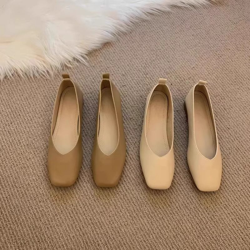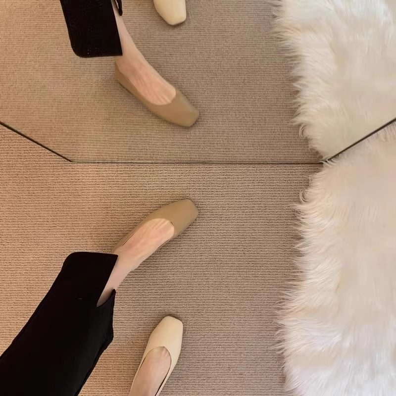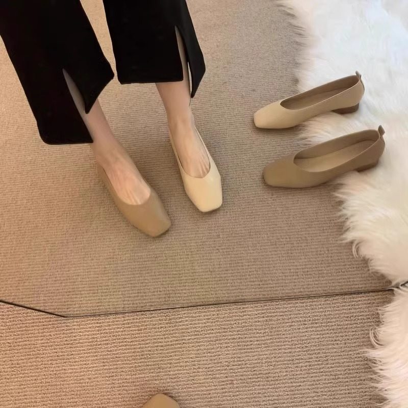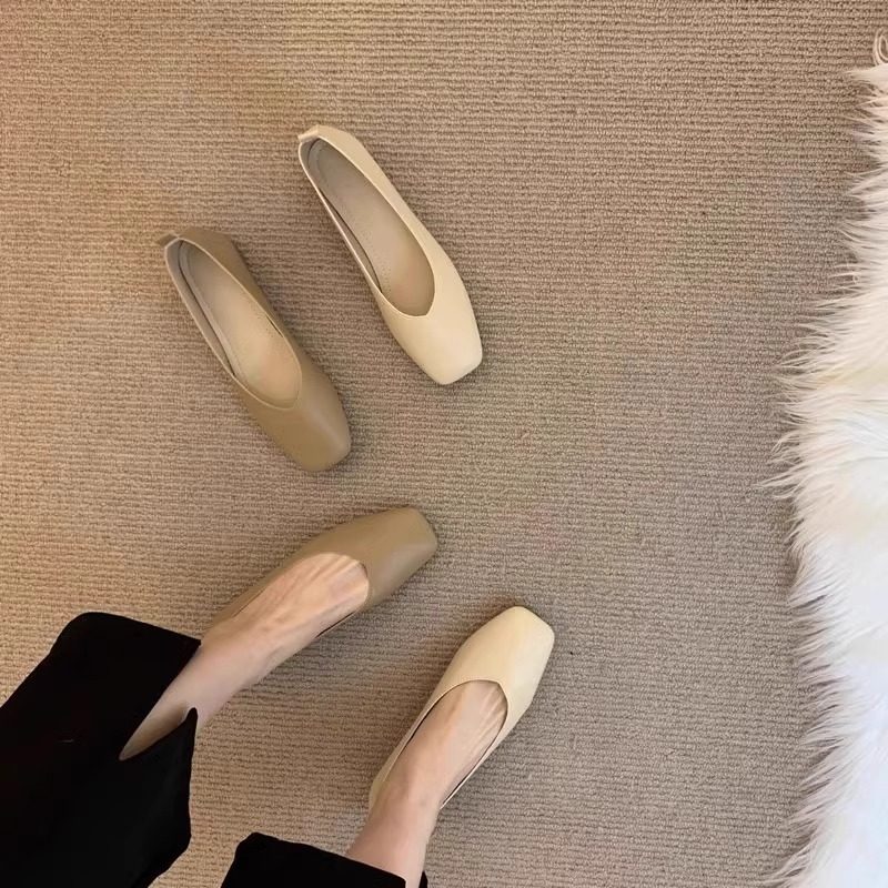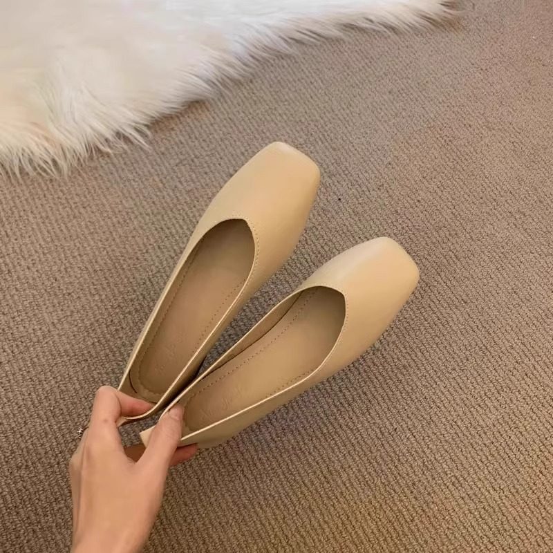 超软小羊皮~内增高小个子6cm单鞋女浅口粗跟方头奶奶鞋软底豆豆鞋