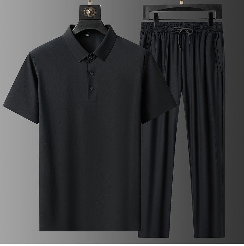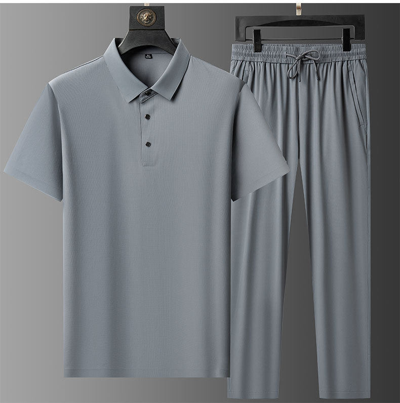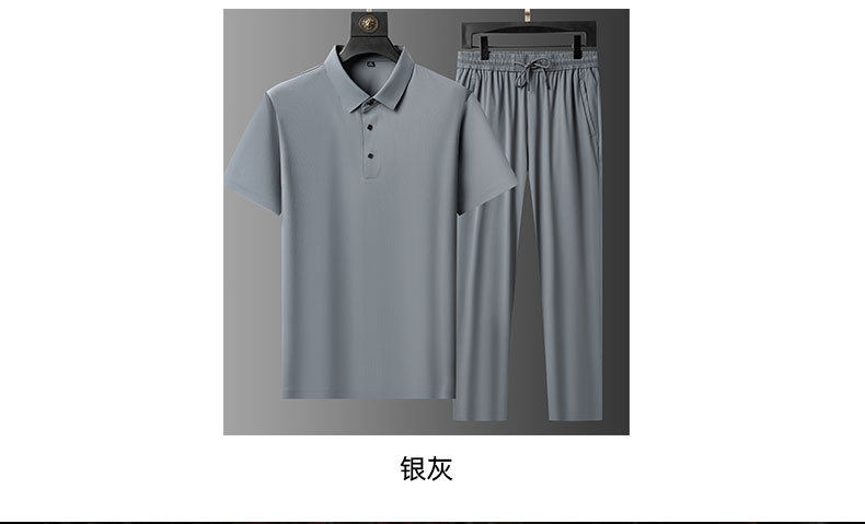 YENR 男式休闲运动套装 2025夏季纯色锦氨微弹 短袖t恤透气面料