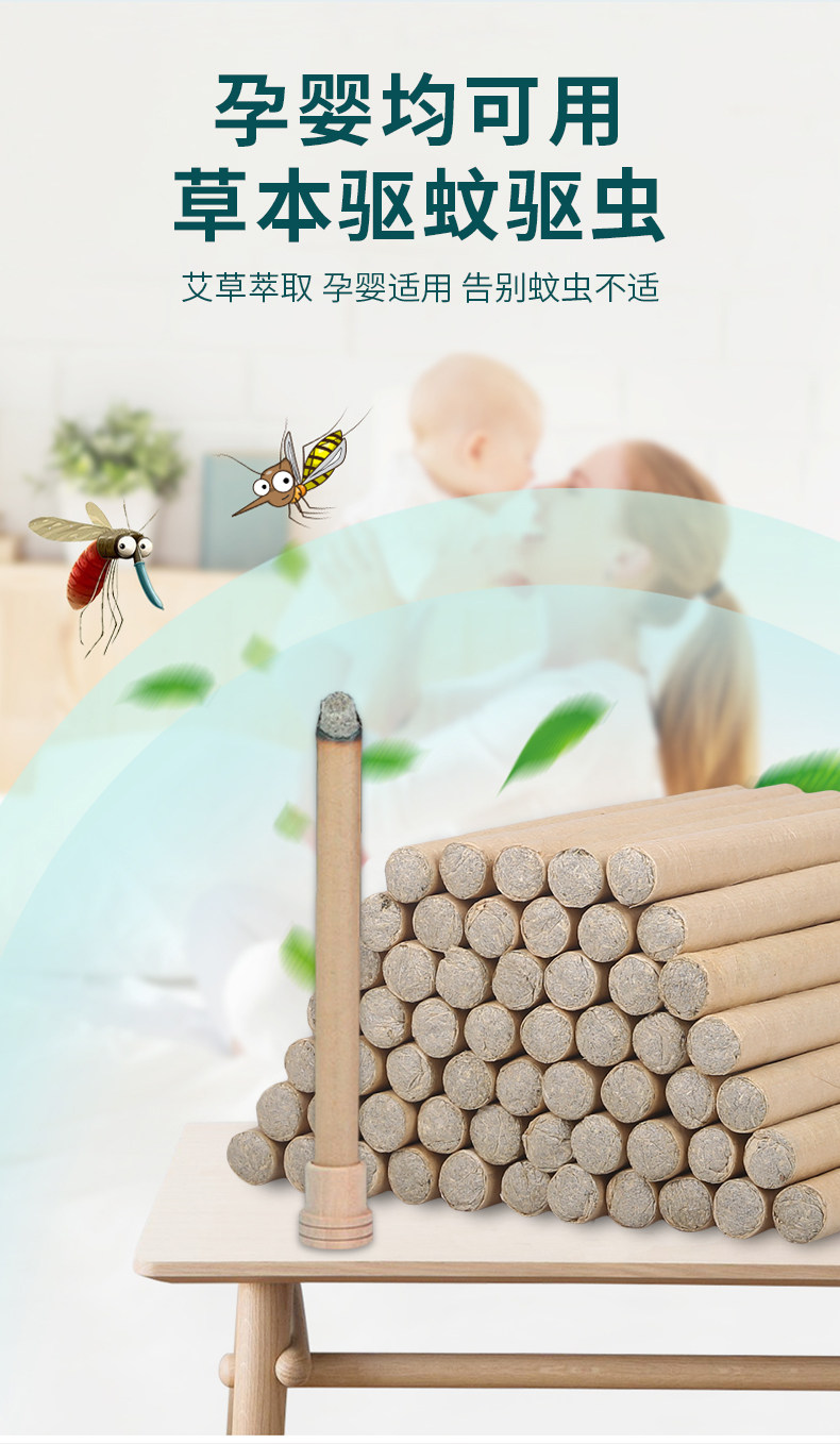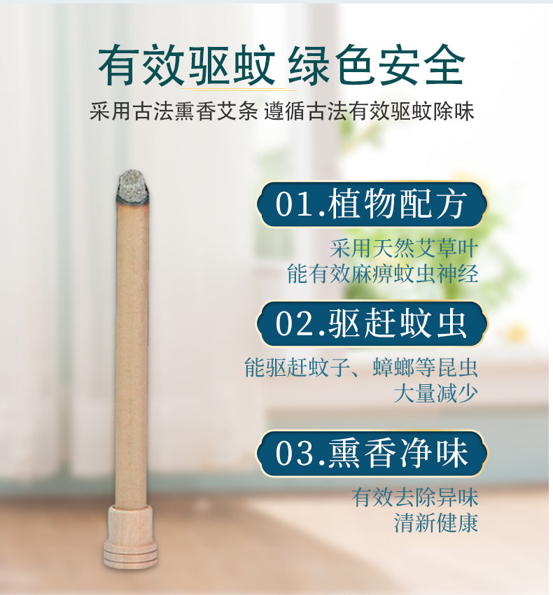 艾草驱蚊艾条100支熏香防疫艾柱蚊香棒驱蚊虫条家用室内杀菌纯艾
