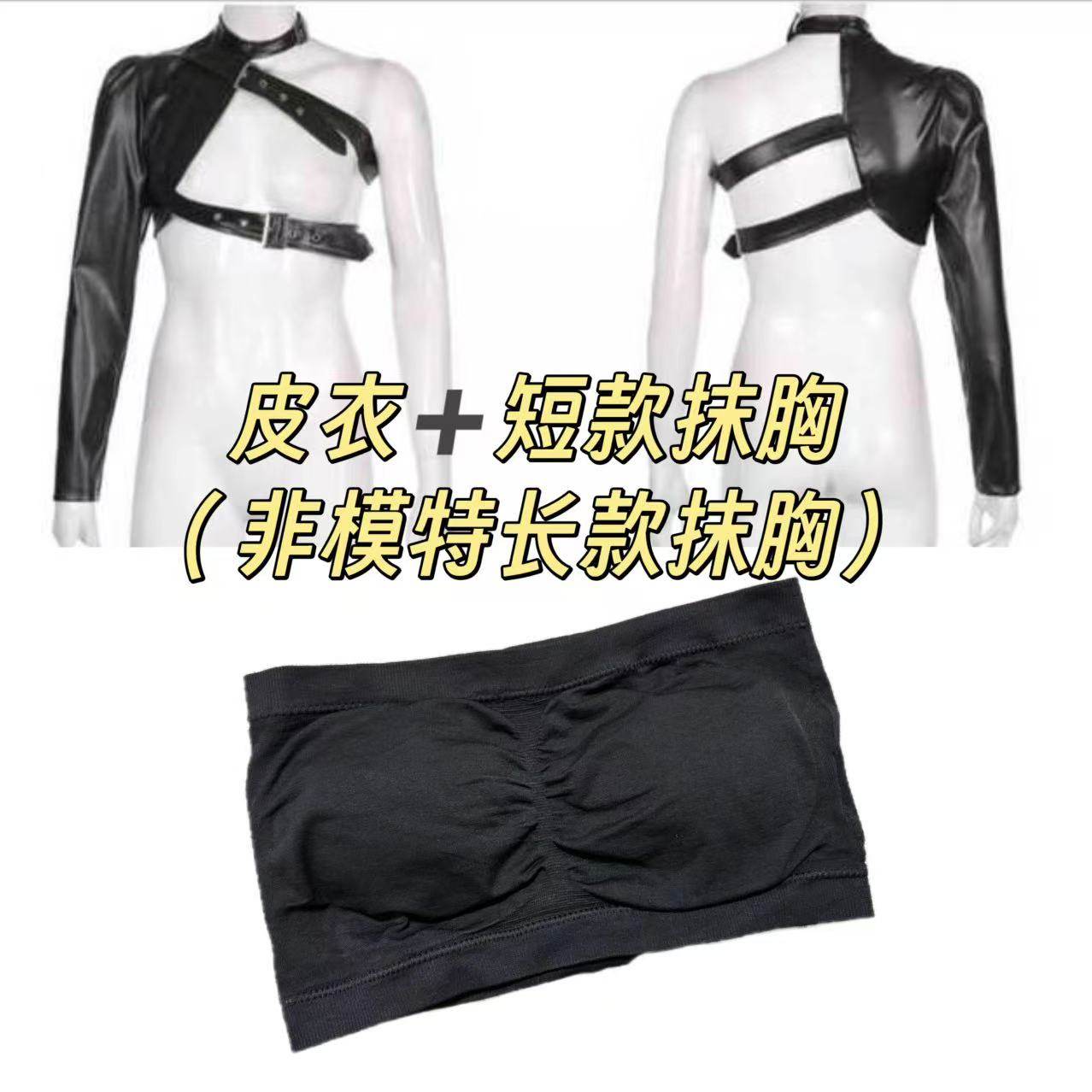 颜色分类 黑色单袖子,黑色上衣配抹胸,黑皮群