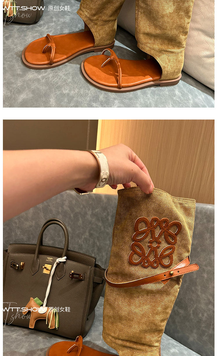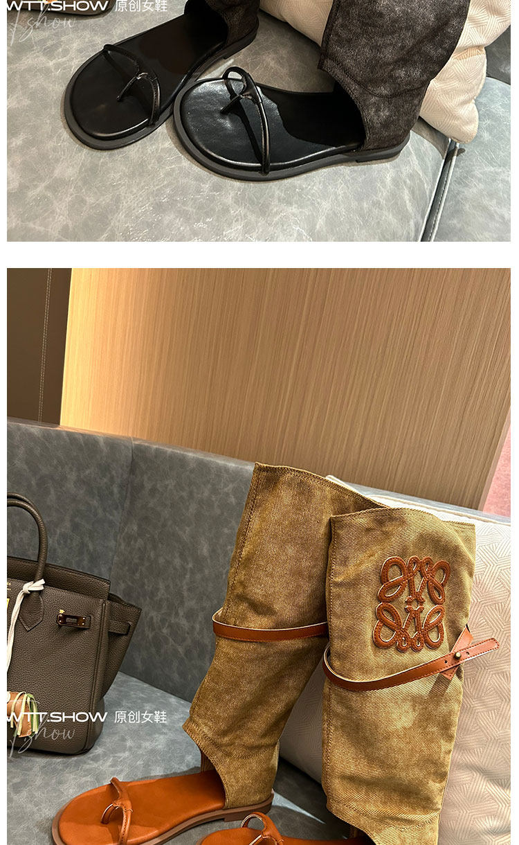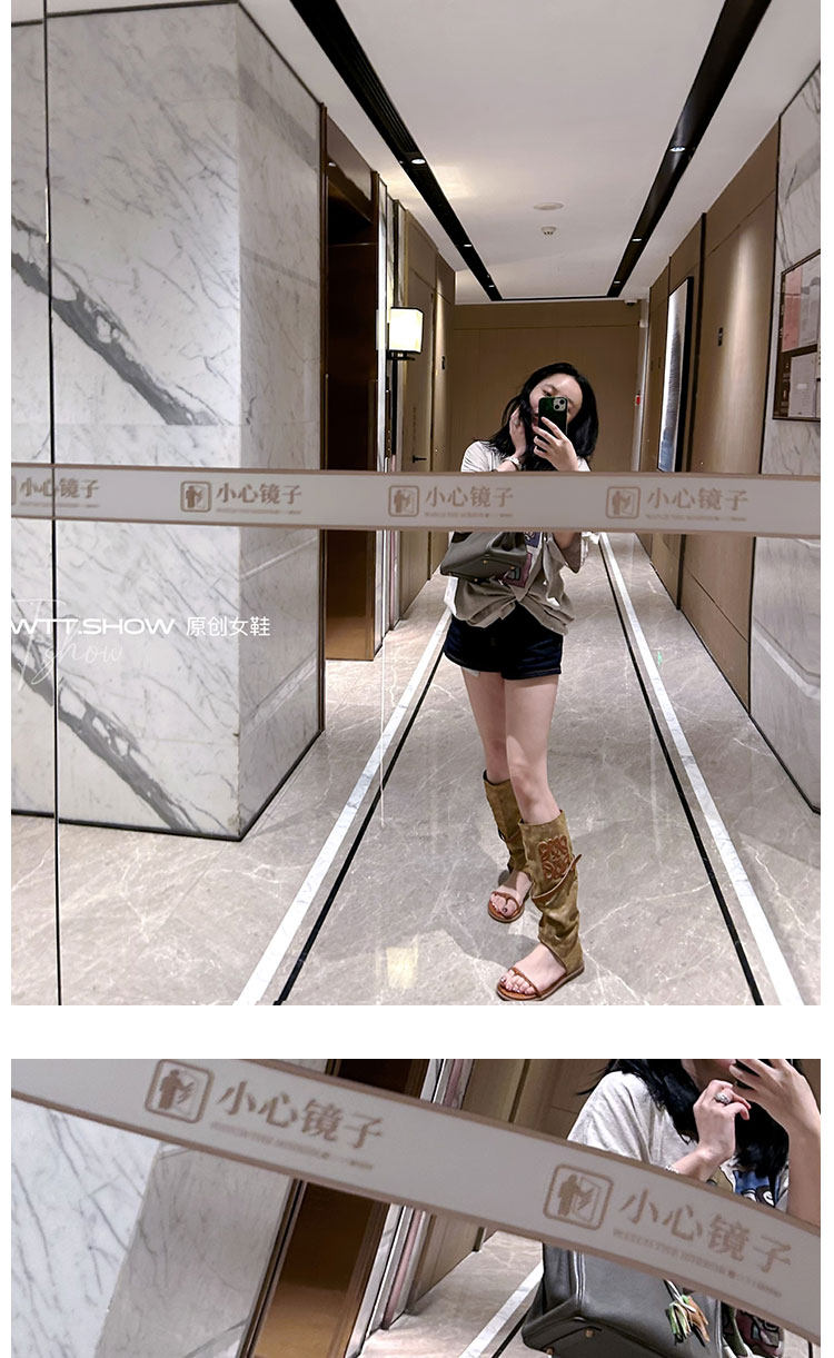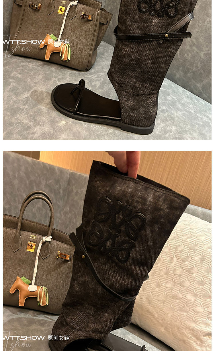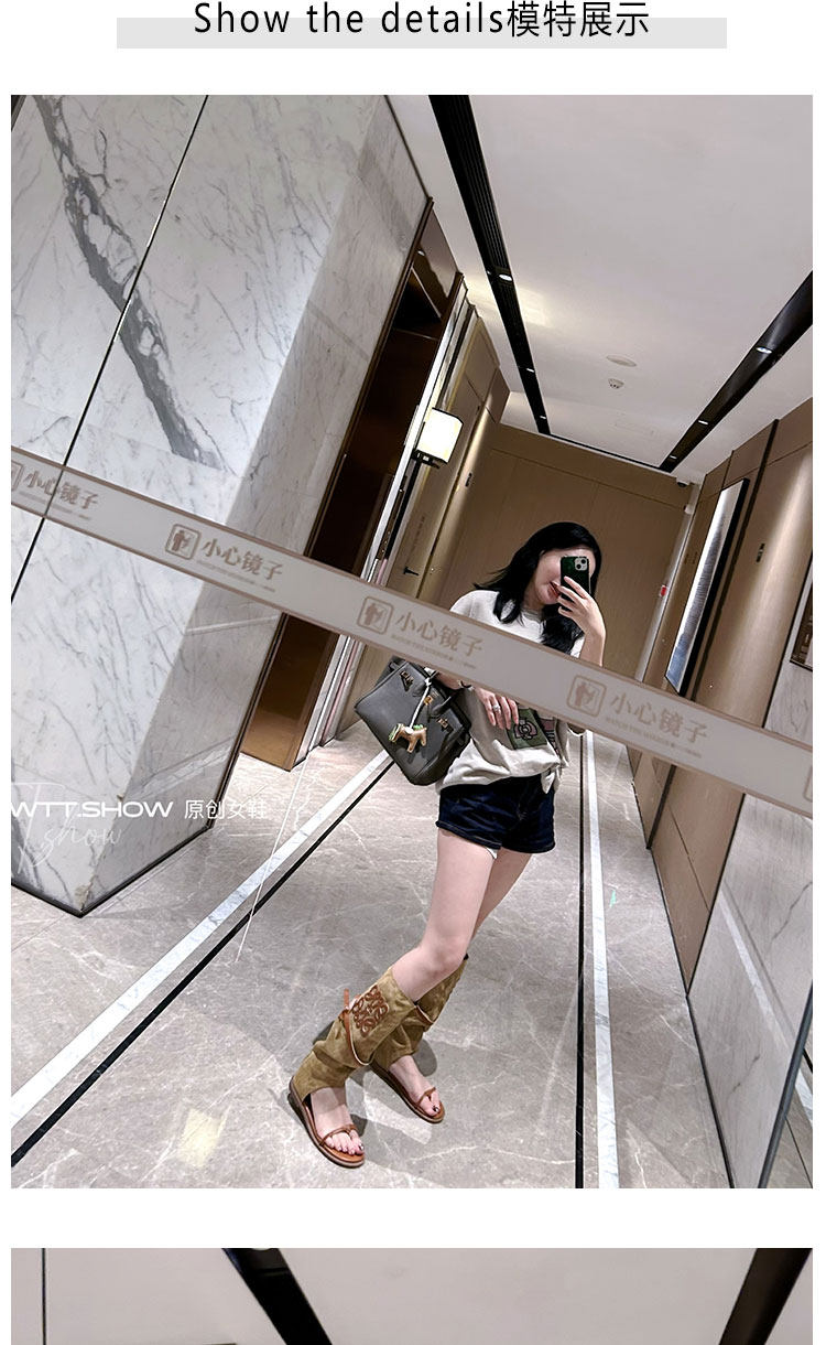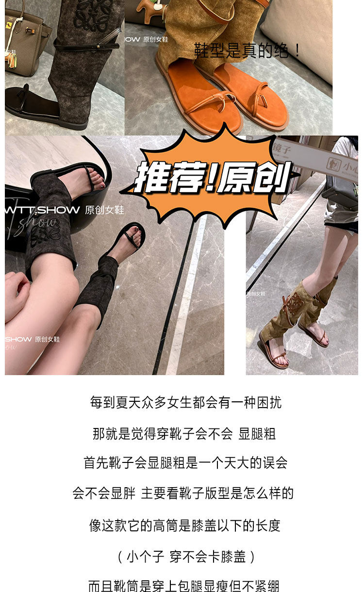 马丁靴女2025夏季新款长筒靴复古凉靴西部牛仔裤管靴罗马堆堆靴子
