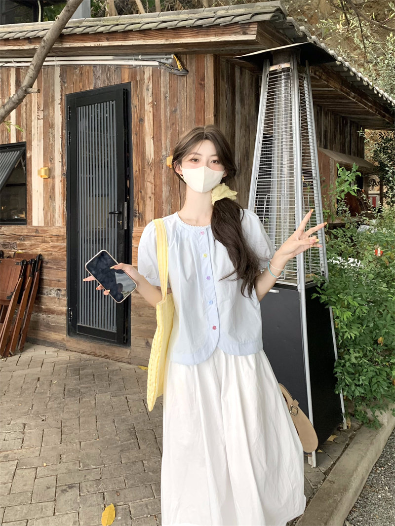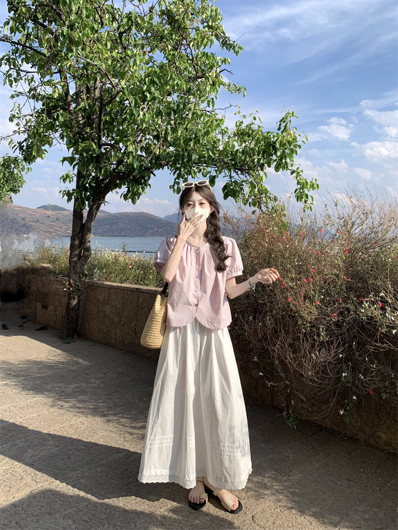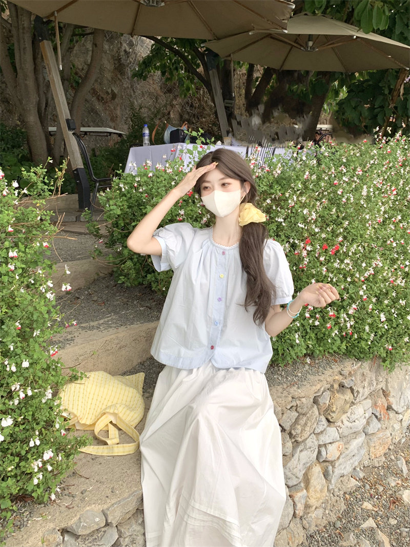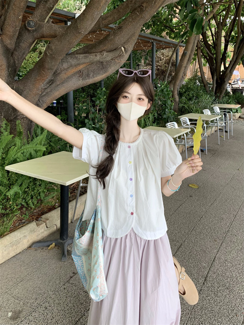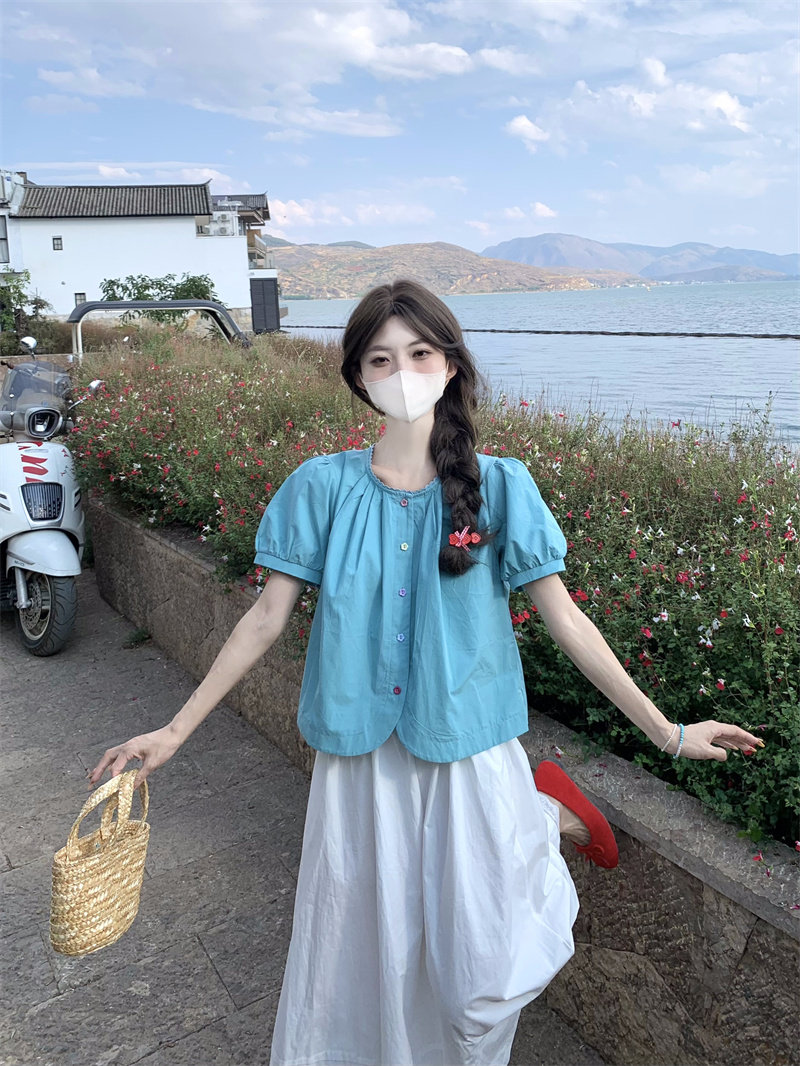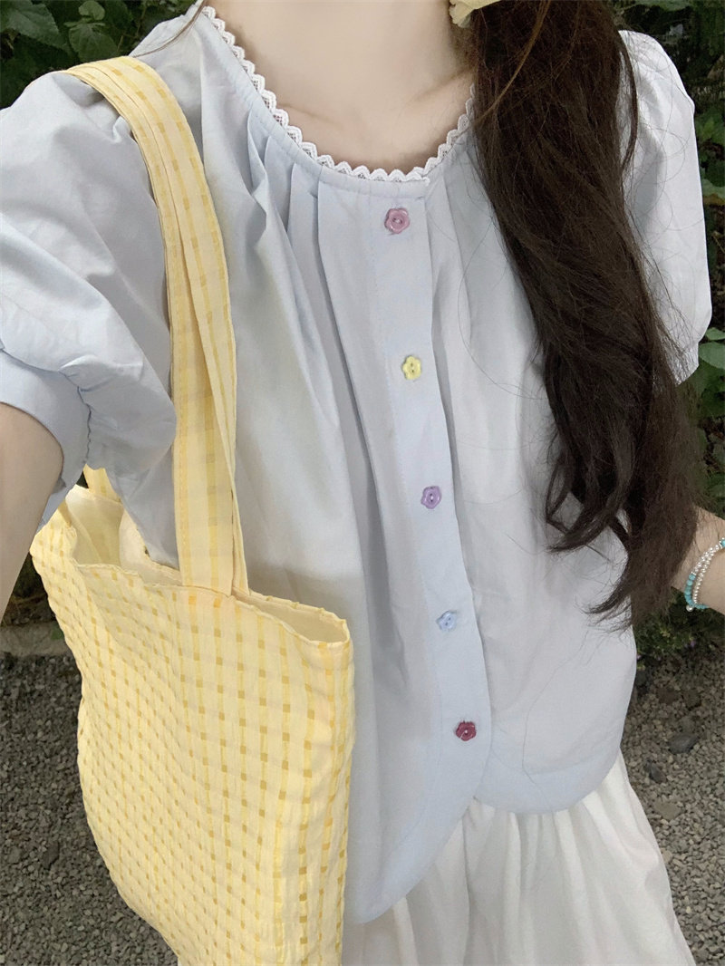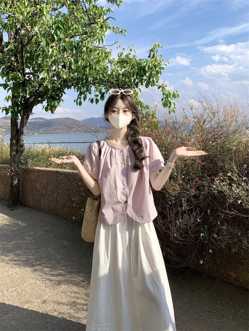 Cotton and linen short-sleeved top for women's summer 2025 new dopamine wear set French unique beautiful doll shirt shirt