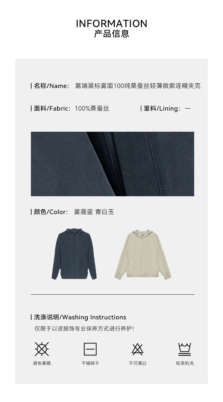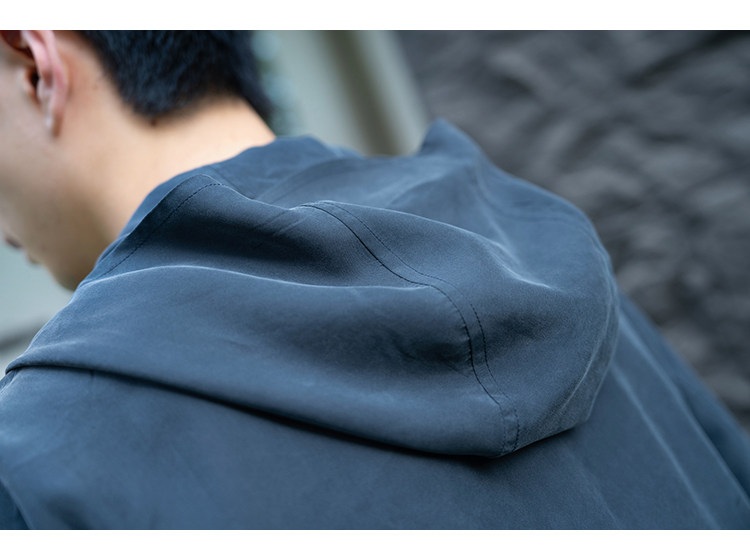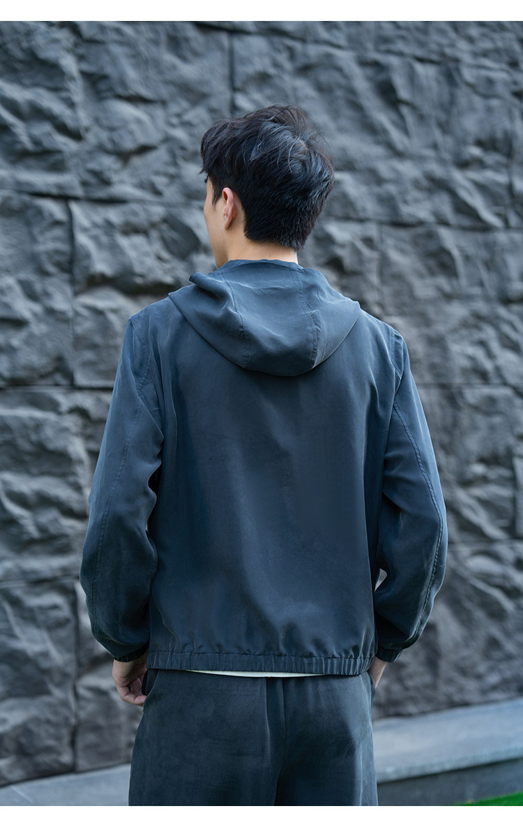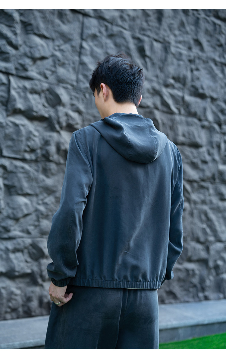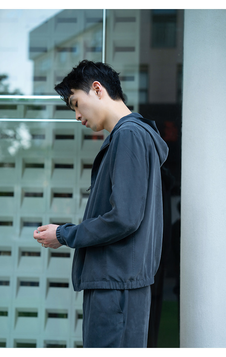 Zhengchen/正辰 高端黑标雾面纯桑蚕丝轻薄微廓连帽夹克外套男秋
