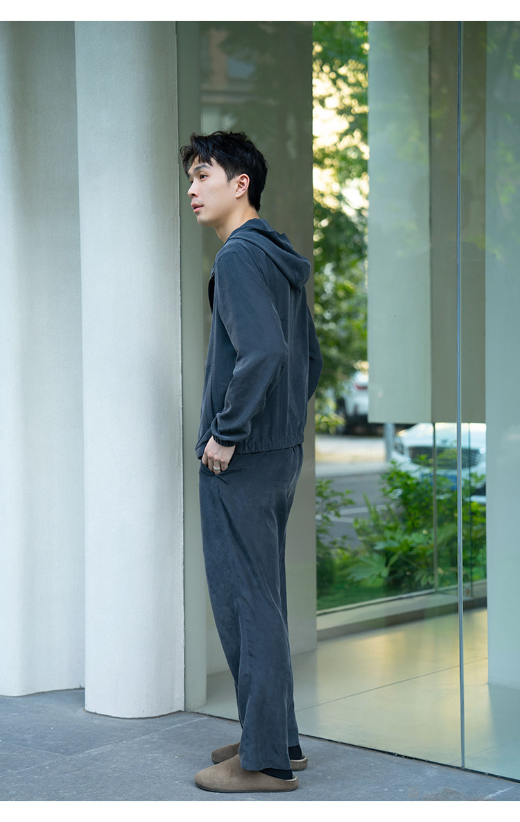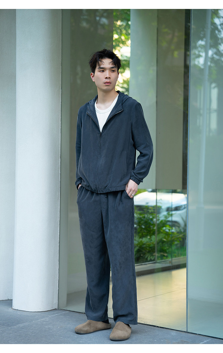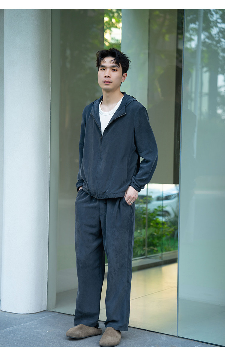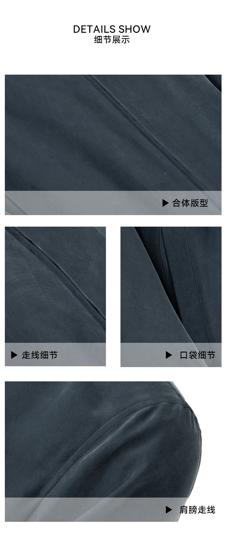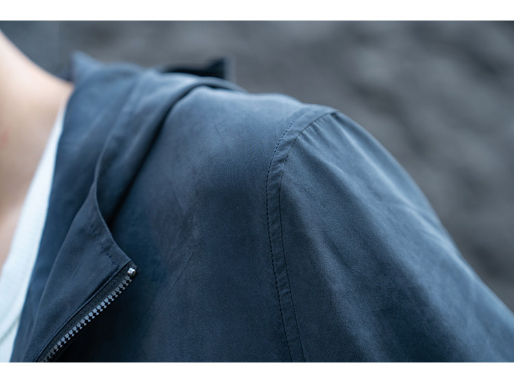 Zhengchen/正辰 高端黑标雾面纯桑蚕丝轻薄微廓连帽夹克外套男秋
