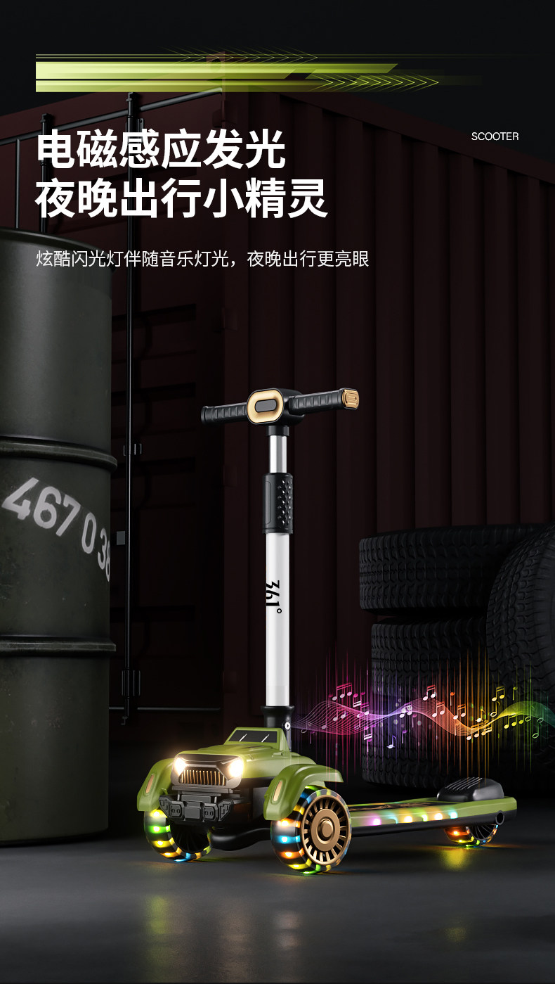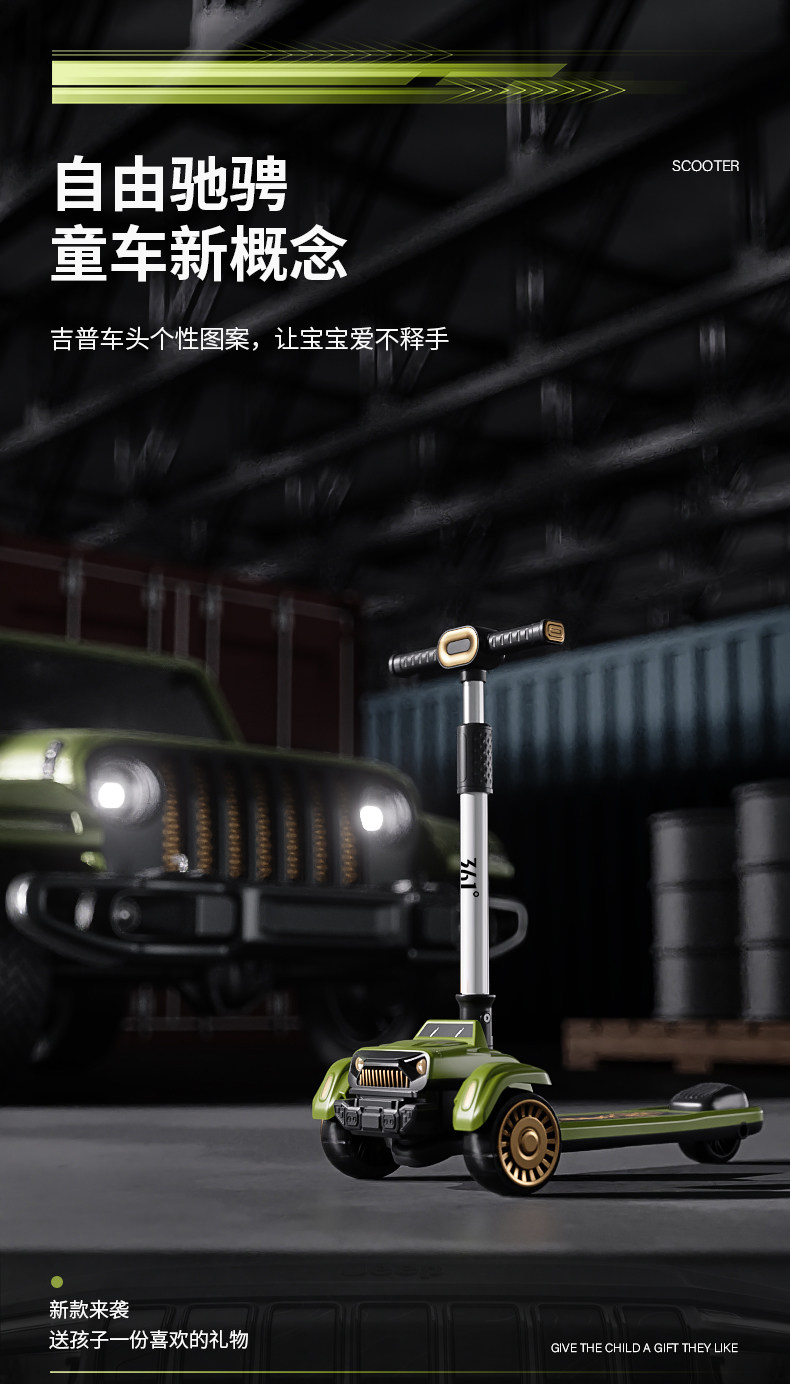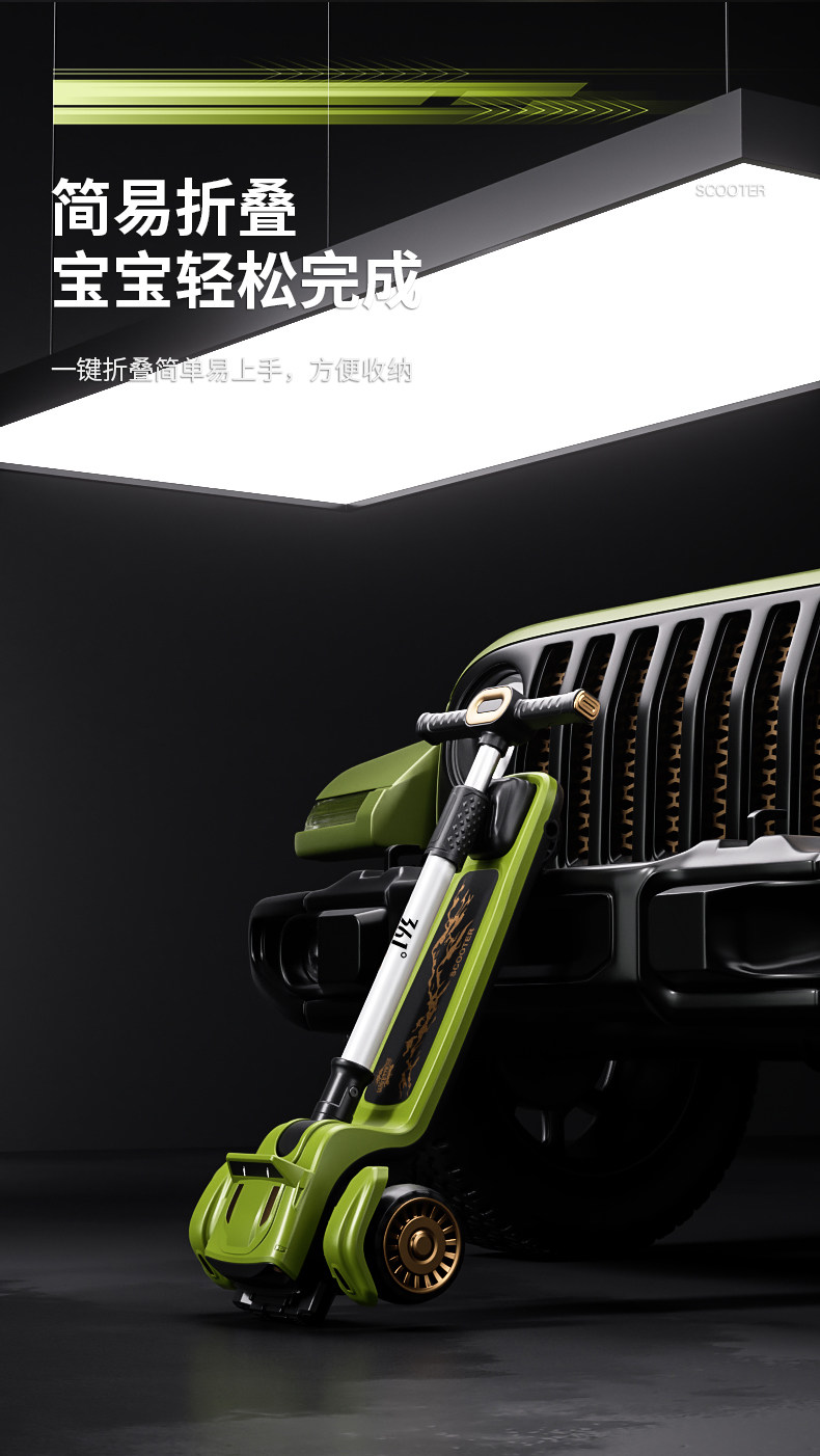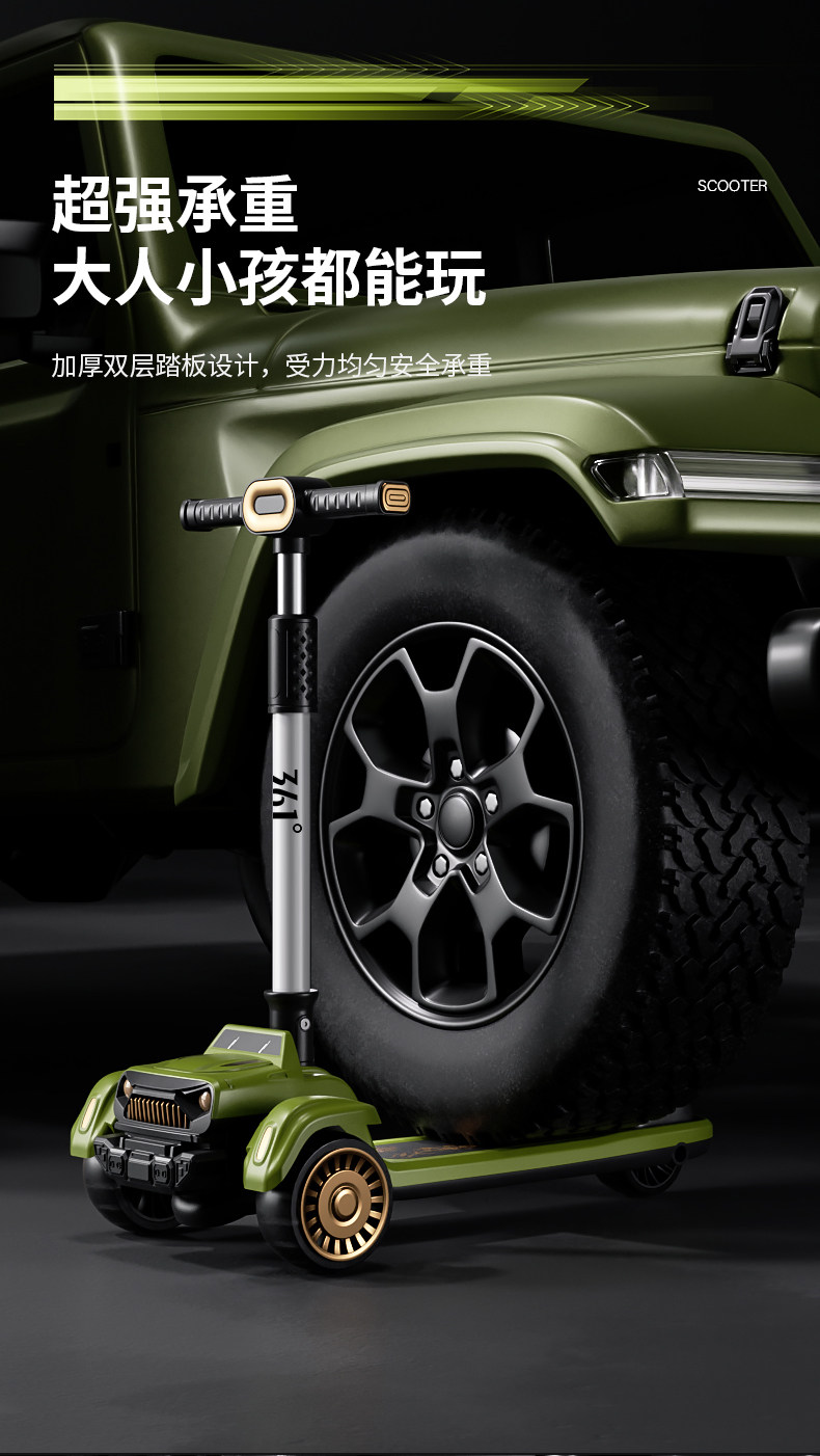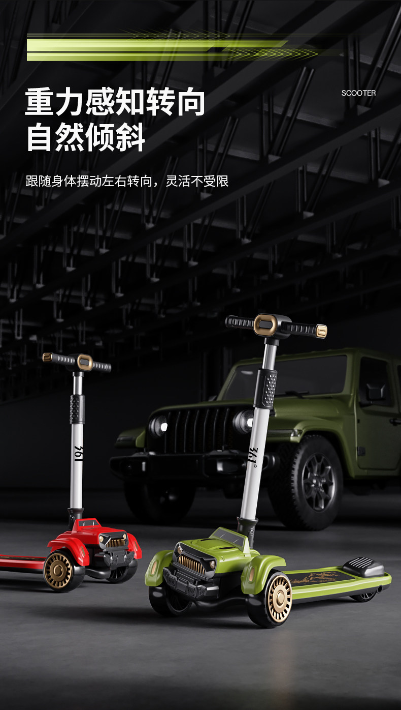 361度儿童吉普滑板车3-6岁-12岁男女大童宝宝折叠踏板滑滑车溜溜