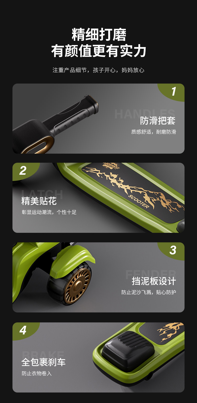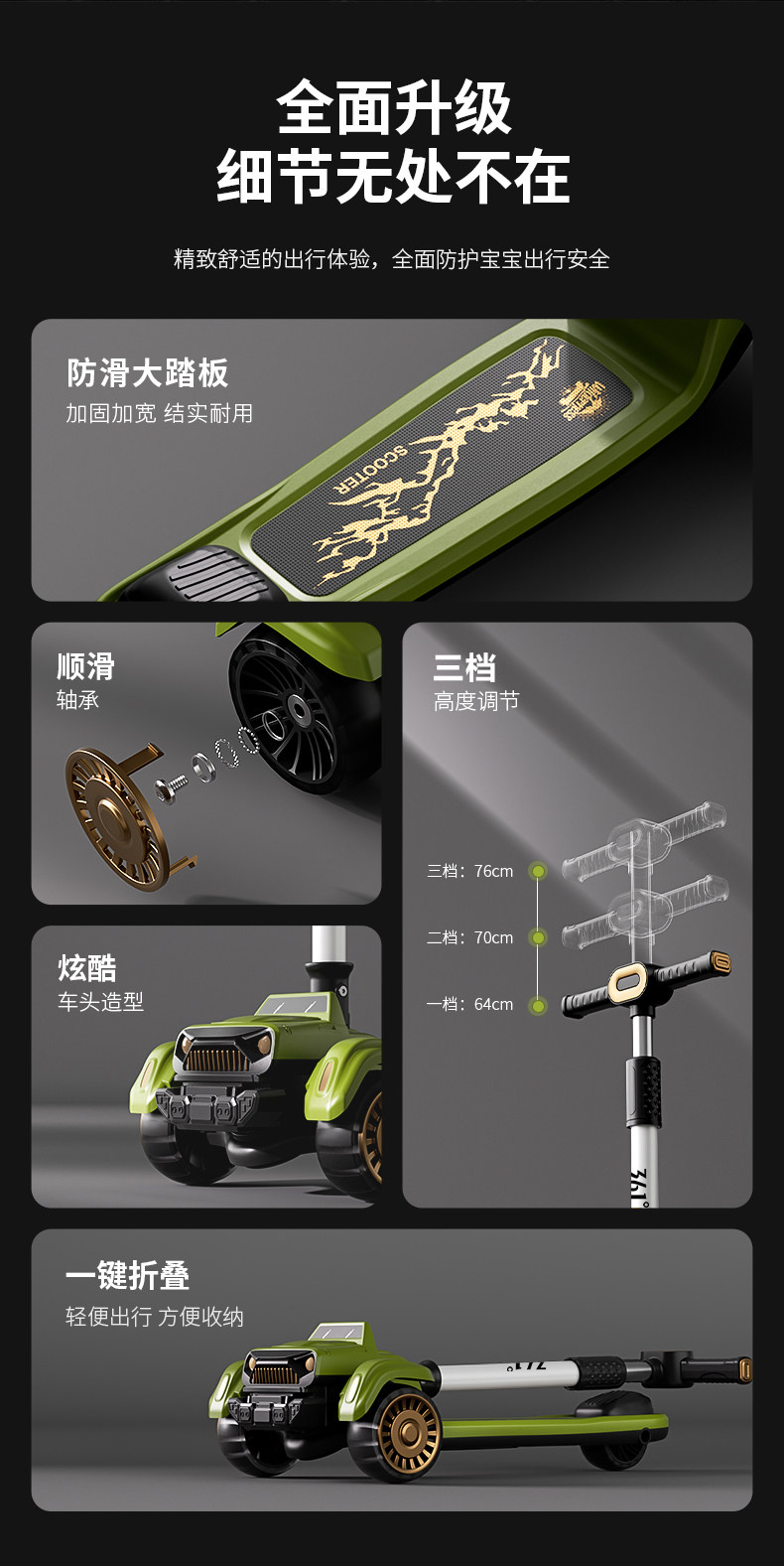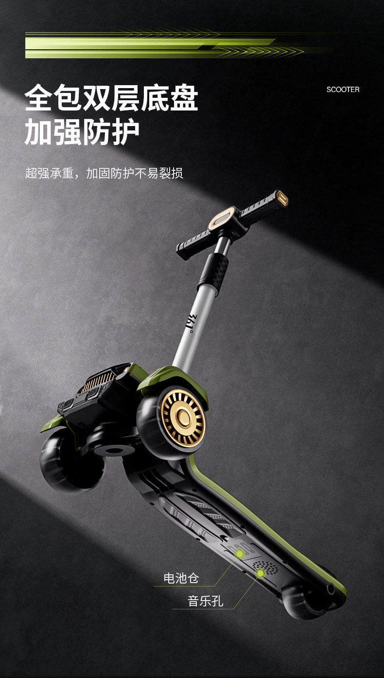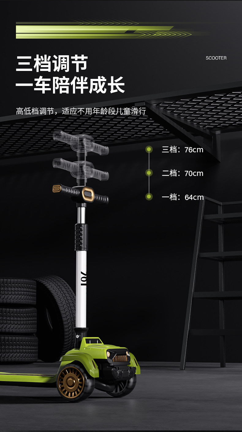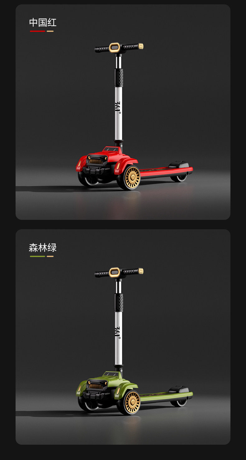 361度儿童吉普滑板车3-6岁-12岁男女大童宝宝折叠踏板滑滑车溜溜