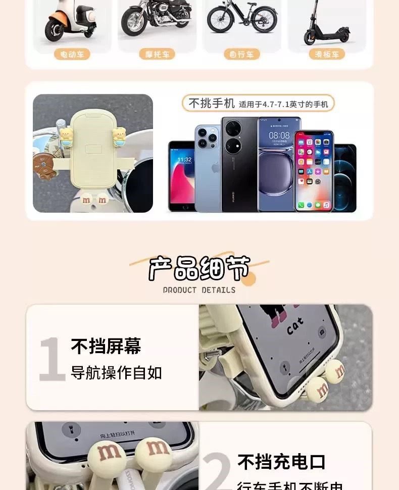 电动车手机支架2025新款可爱动物摩托车导航架自行车固定手机架