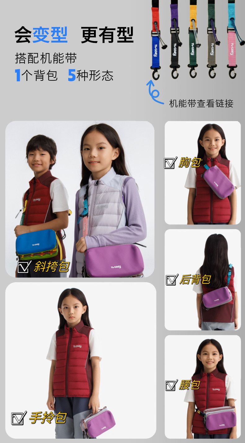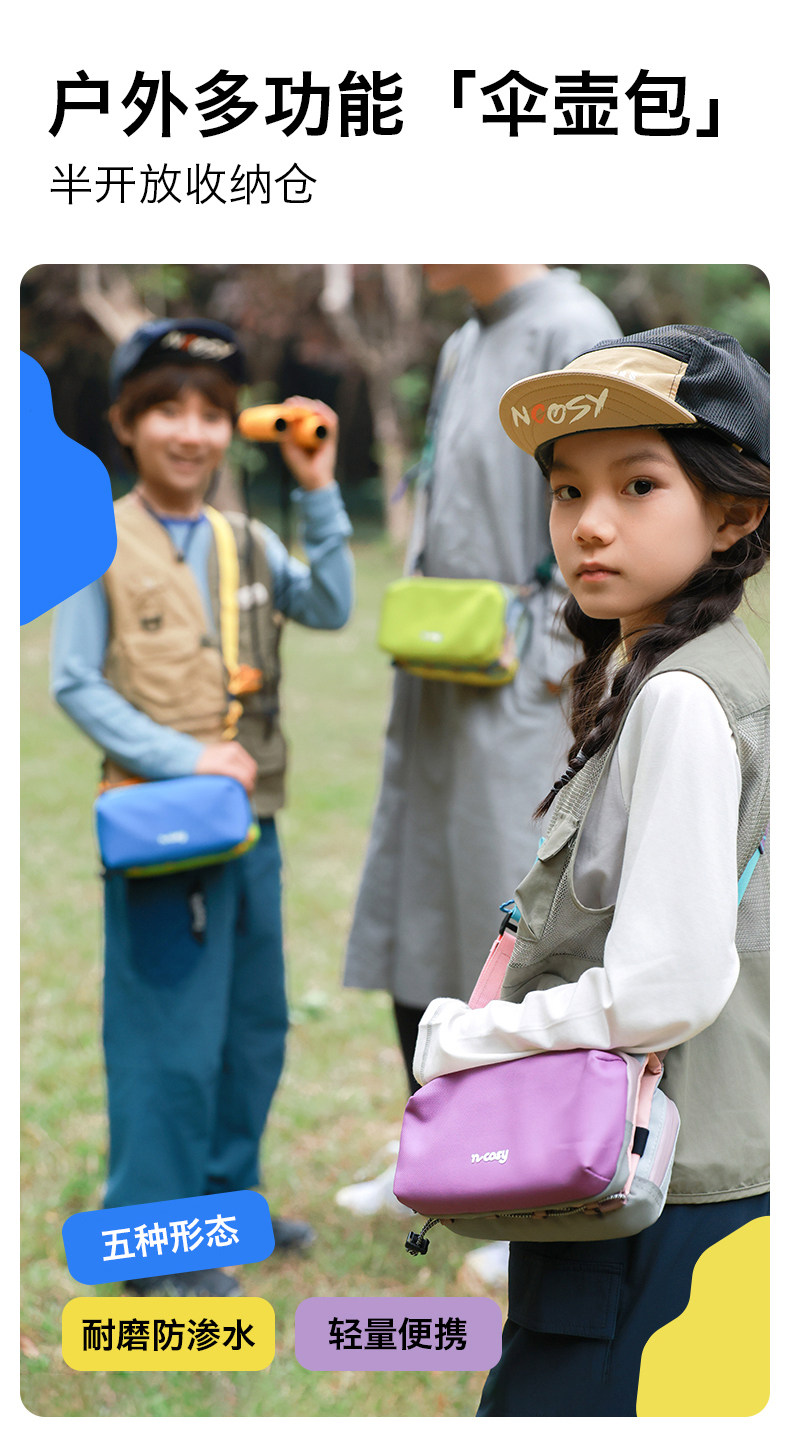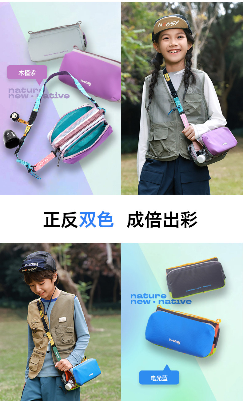 NCOSY 儿童户外单肩斜挎包轻便拼色登山挎包腰包时尚通勤斜挎包