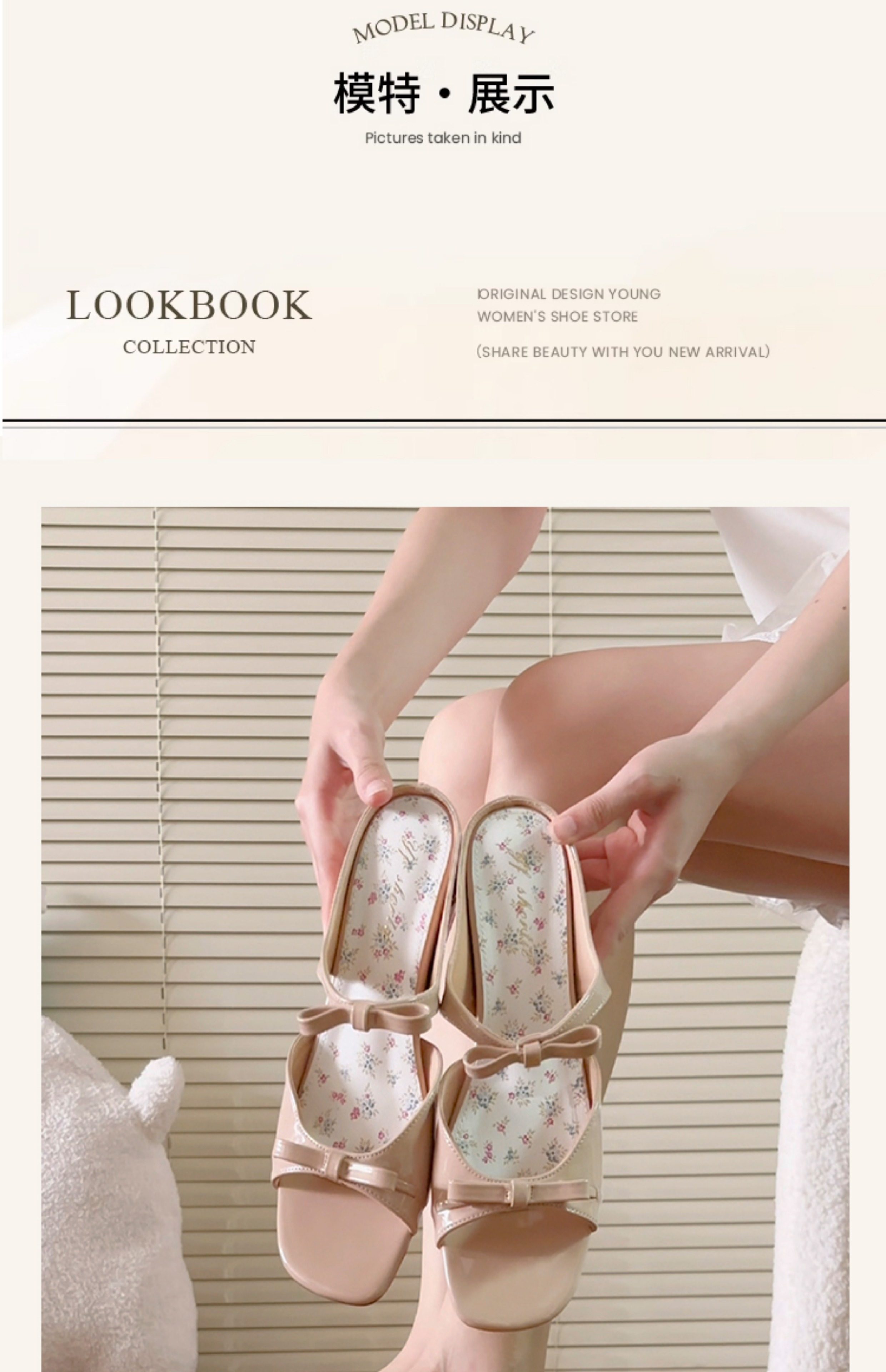 Sheepskin Version ~ 5cm Height Increase Nude-Colored Slip-On Sandals for Women 2025 Summer Fairy Floral Bow Open-Toe Sandals