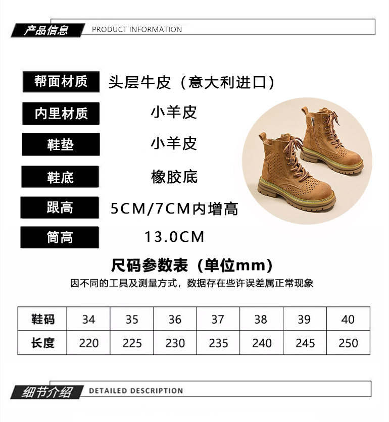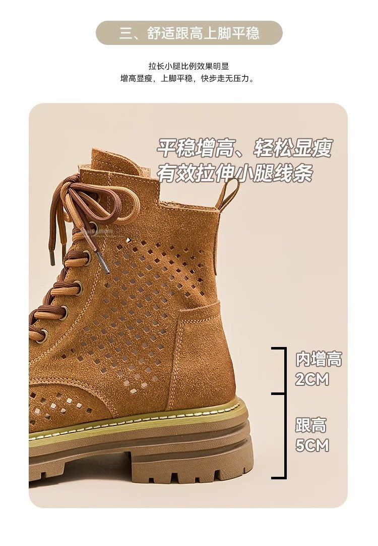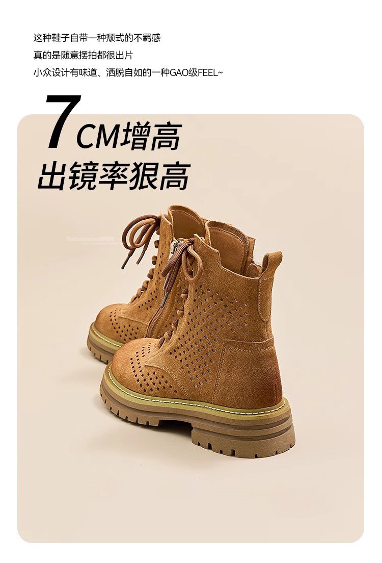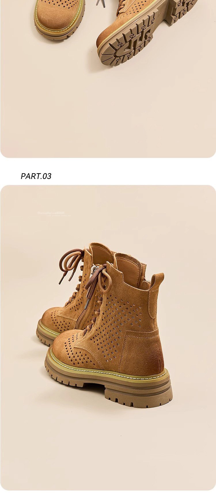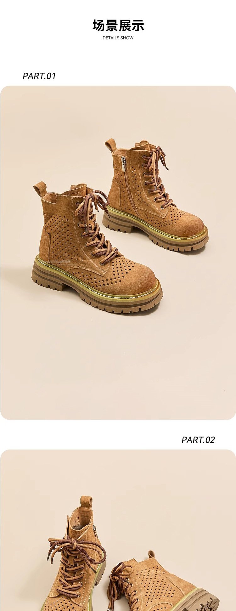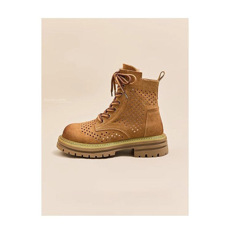 Hong Kong Outdoor Hollow Martin Boots for Women 2025 Summer New Genuine Leather Breathable Short Boots Petite Western Cowboy Boots