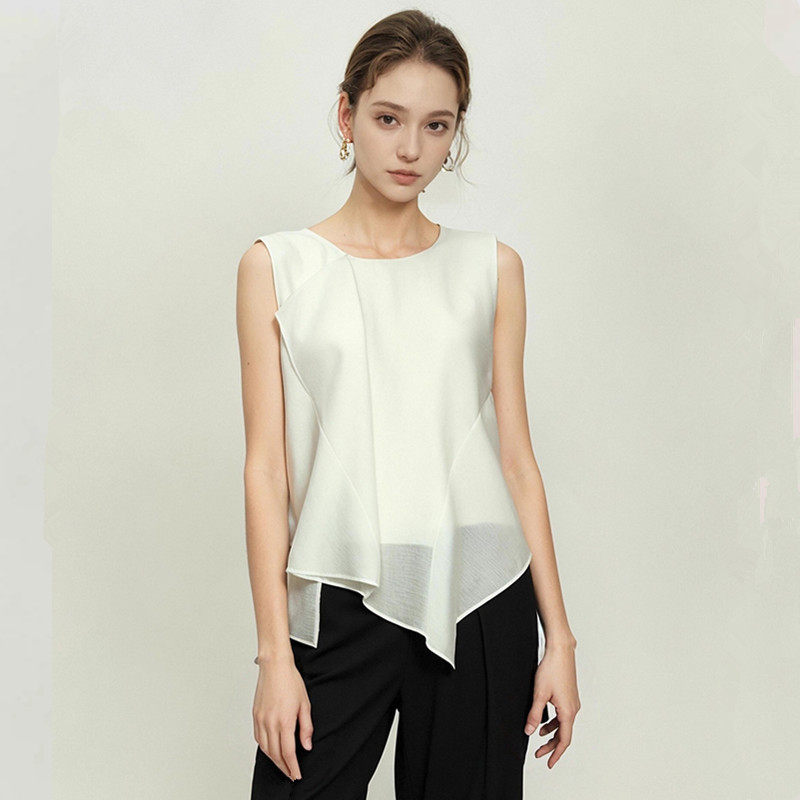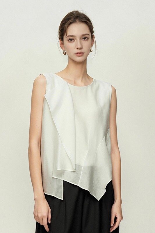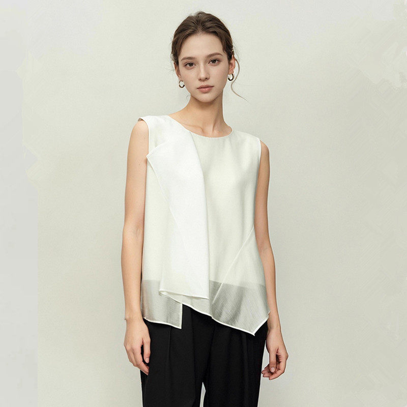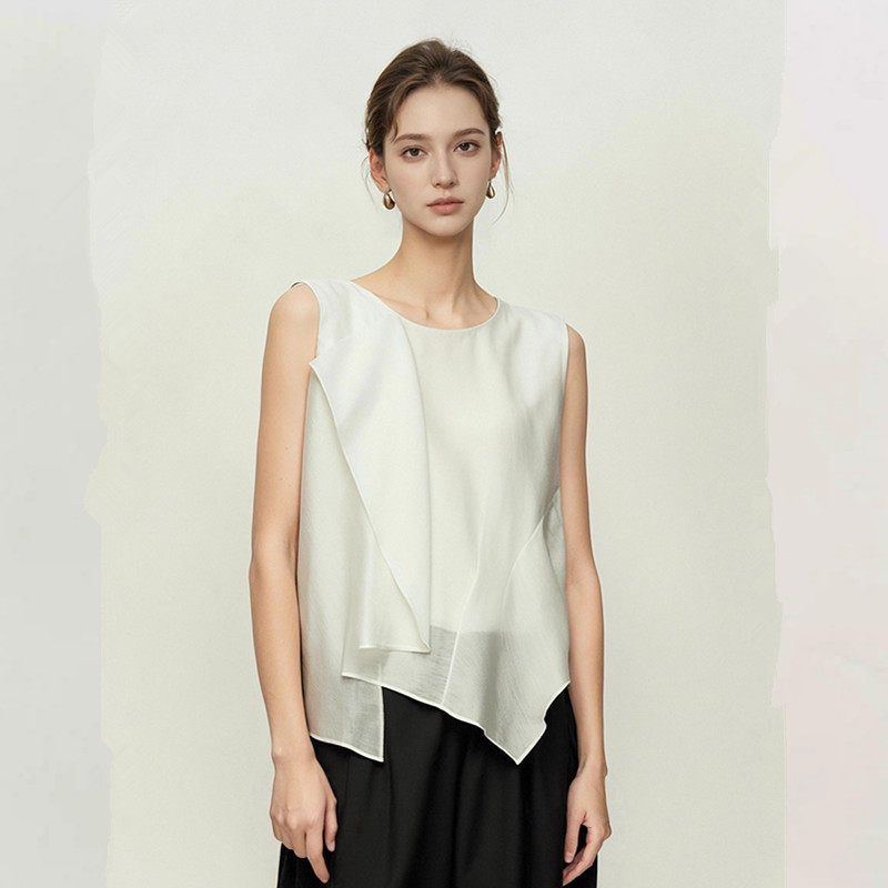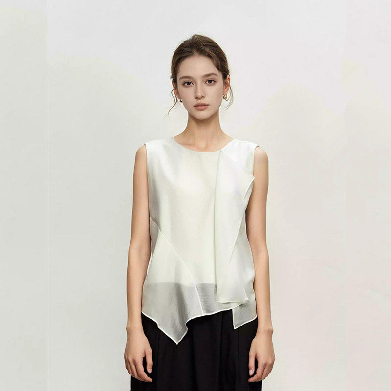 妖精的商场同款法式设计感雪纺衫女2025年夏季荷叶边醋酸无袖小衫