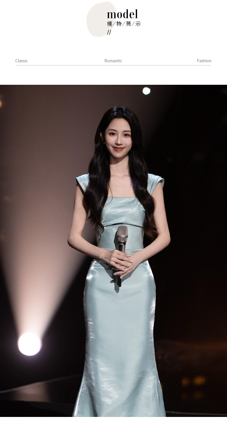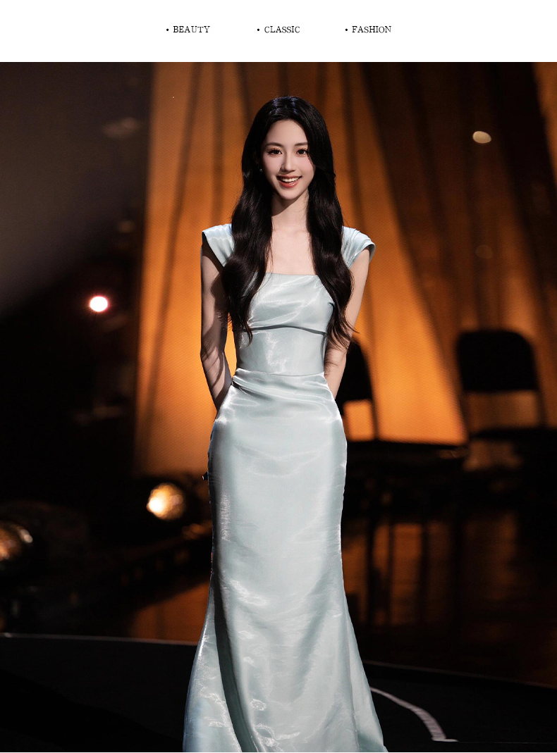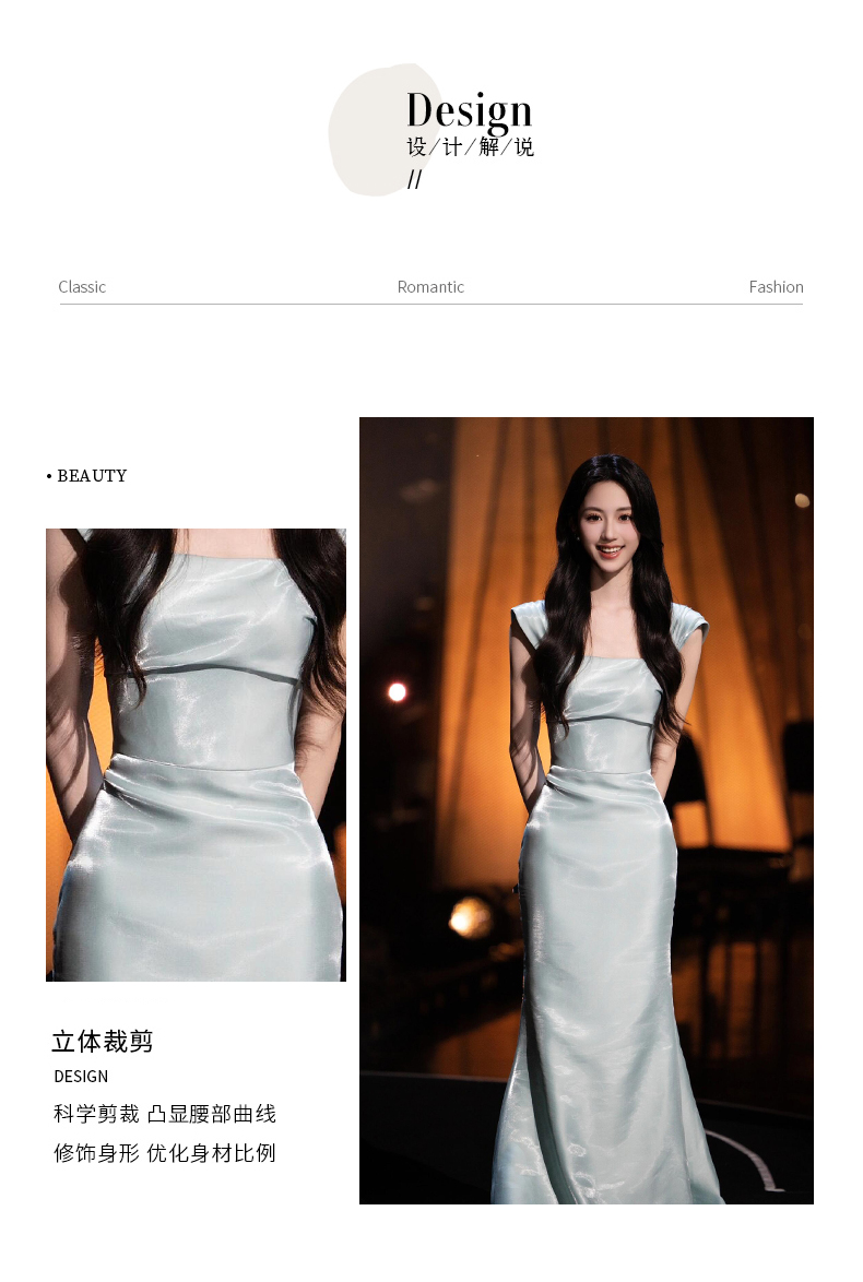 Satin Evening Dress Classy Accessible Luxury Niche Fishtail Petite Student Graduation Exam Solo Performance Clothing Host