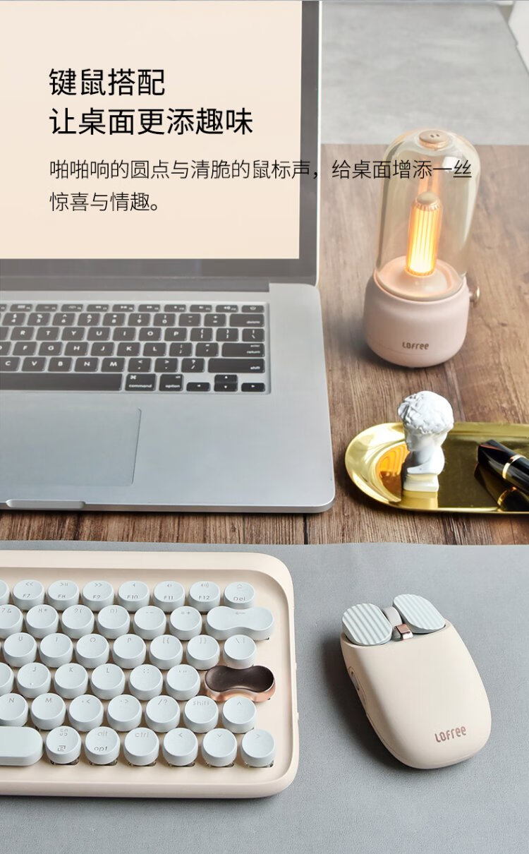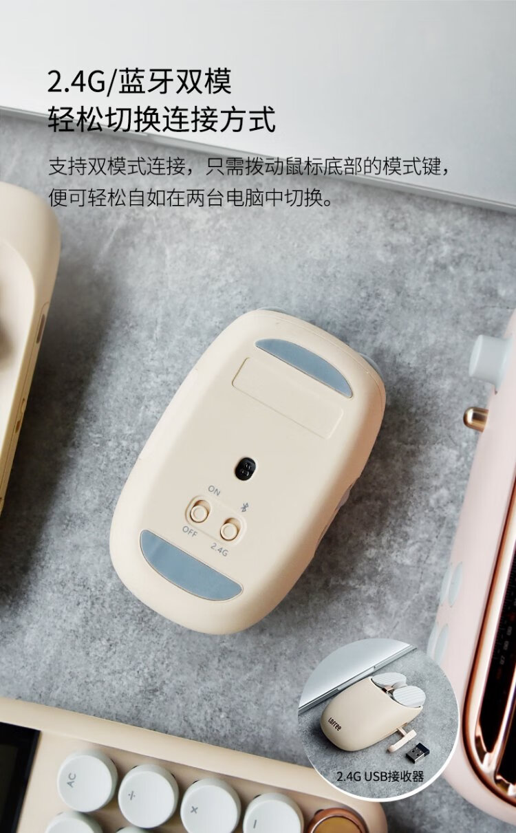 洛斐(Lofree)无线鼠标常规多系统兼容蓝牙多功能电脑笔记本办公家用奶茶色鼠标