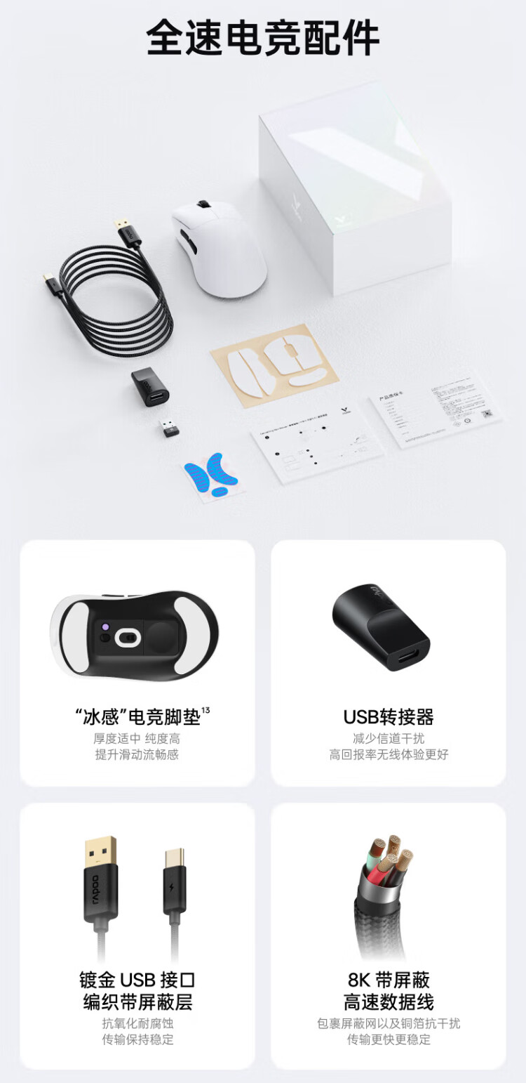 Rapoo VT3s deuxième génération double version 8K souris de jeu bimode sans fil/filaire pour petites et moyennes mains légère phase originale 3398 delta action fps souris de jeu rose framboise