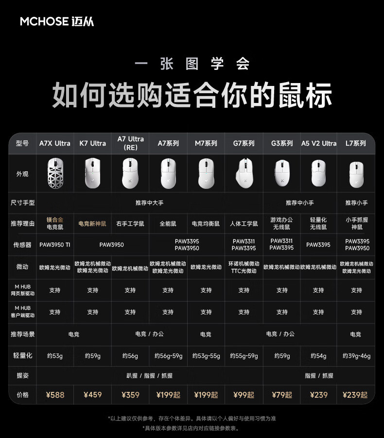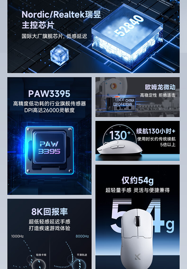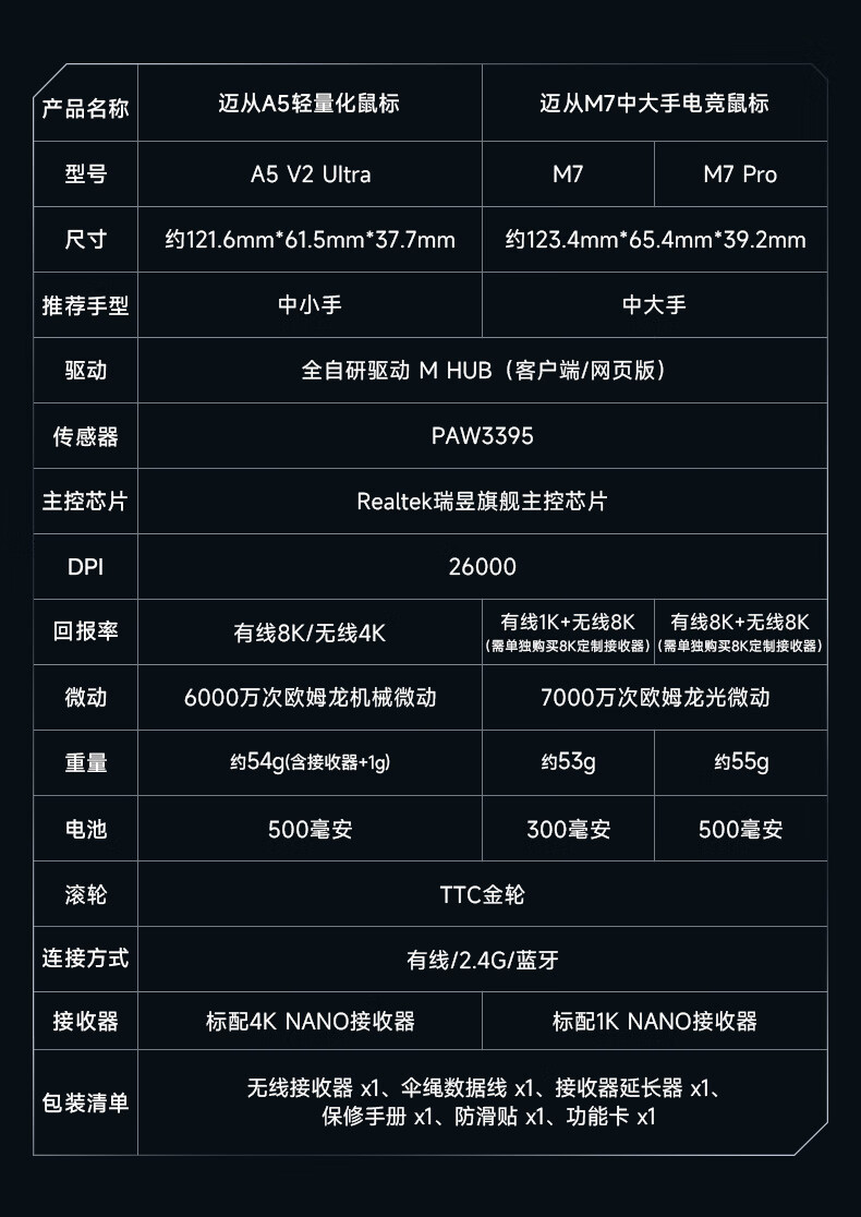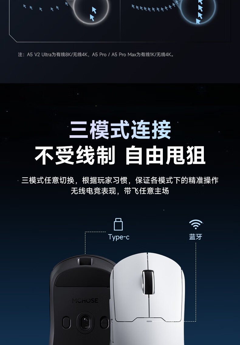 MCHOSE A5 V2 Ultra/M7 Pro Wireless Mouse Gaming Mouse Wired/2.4G/Bluetooth Three Modes E-Sports Rechargeable Long Battery Life PAW3395 Lightweight Design A5 V2 Ultra Fantasy Blue