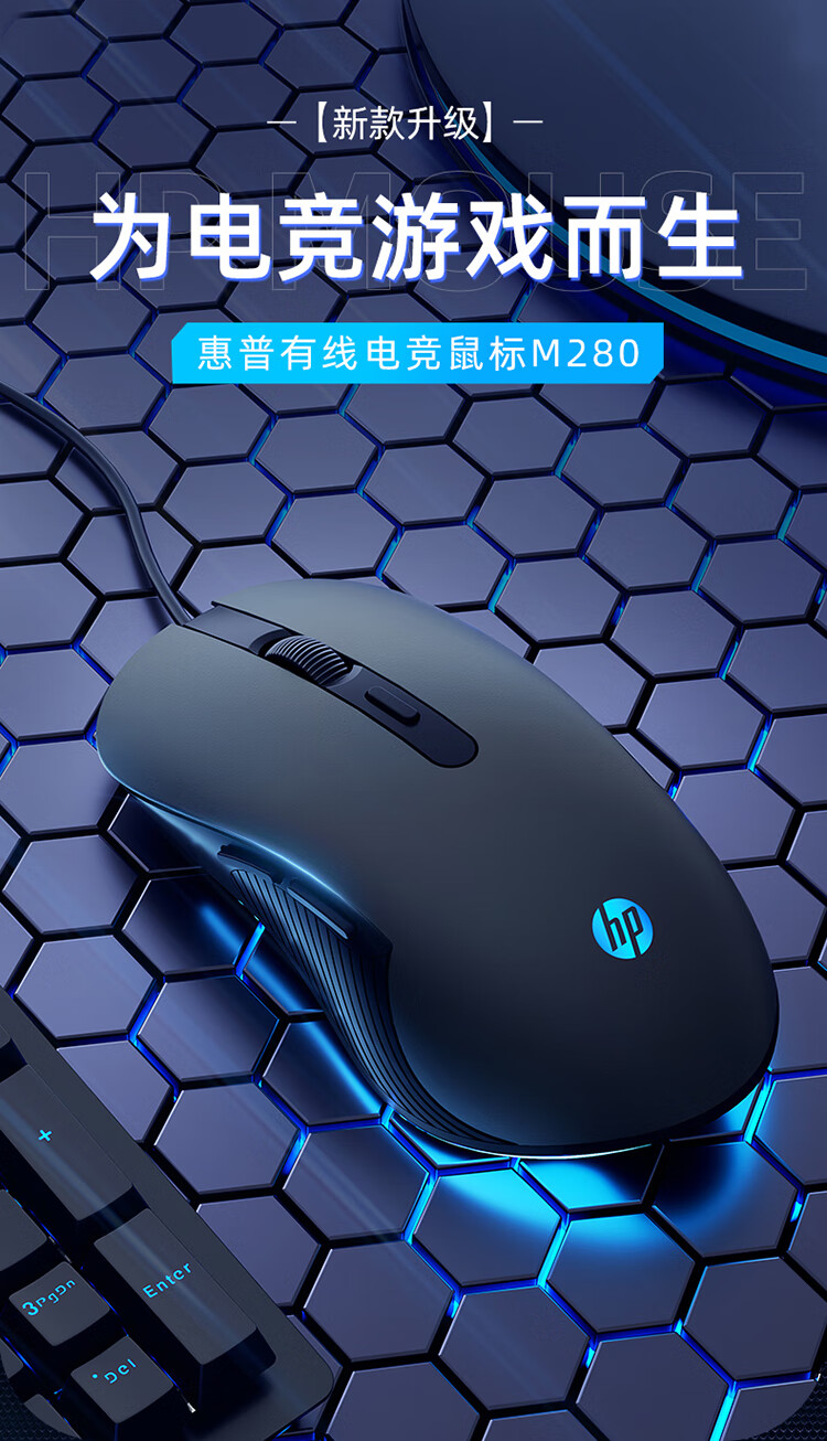 HP M280 mouse wired gaming e-sports game office dedicated notebook desktop silent mouse for boys and girls LOL chicken upgrade macro programming mouse e-sports game mouse milk tea color ice orange light audio version