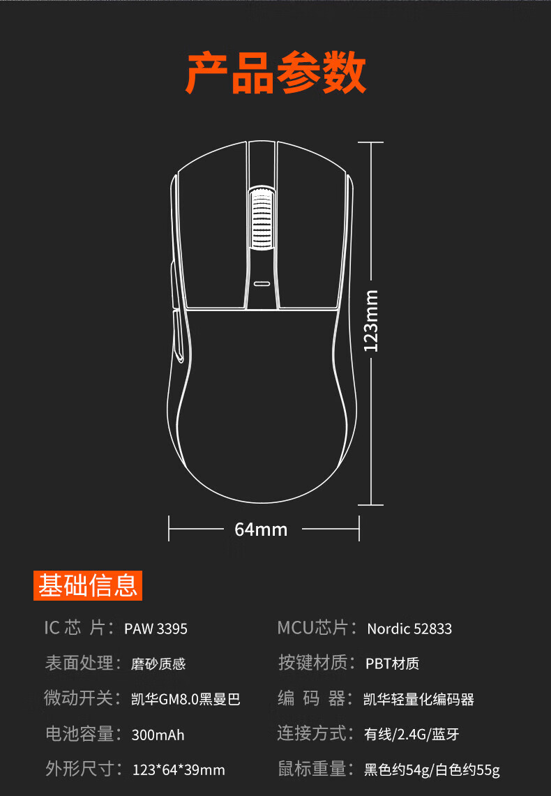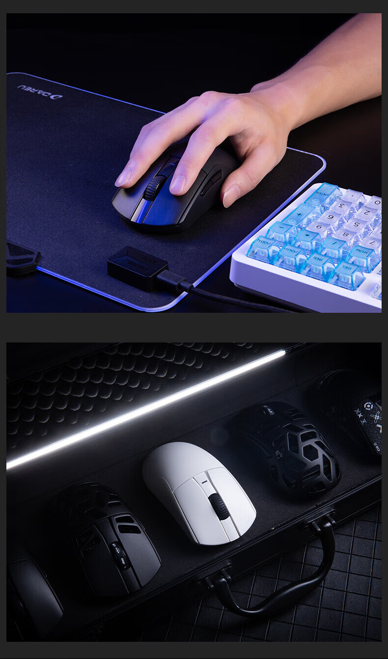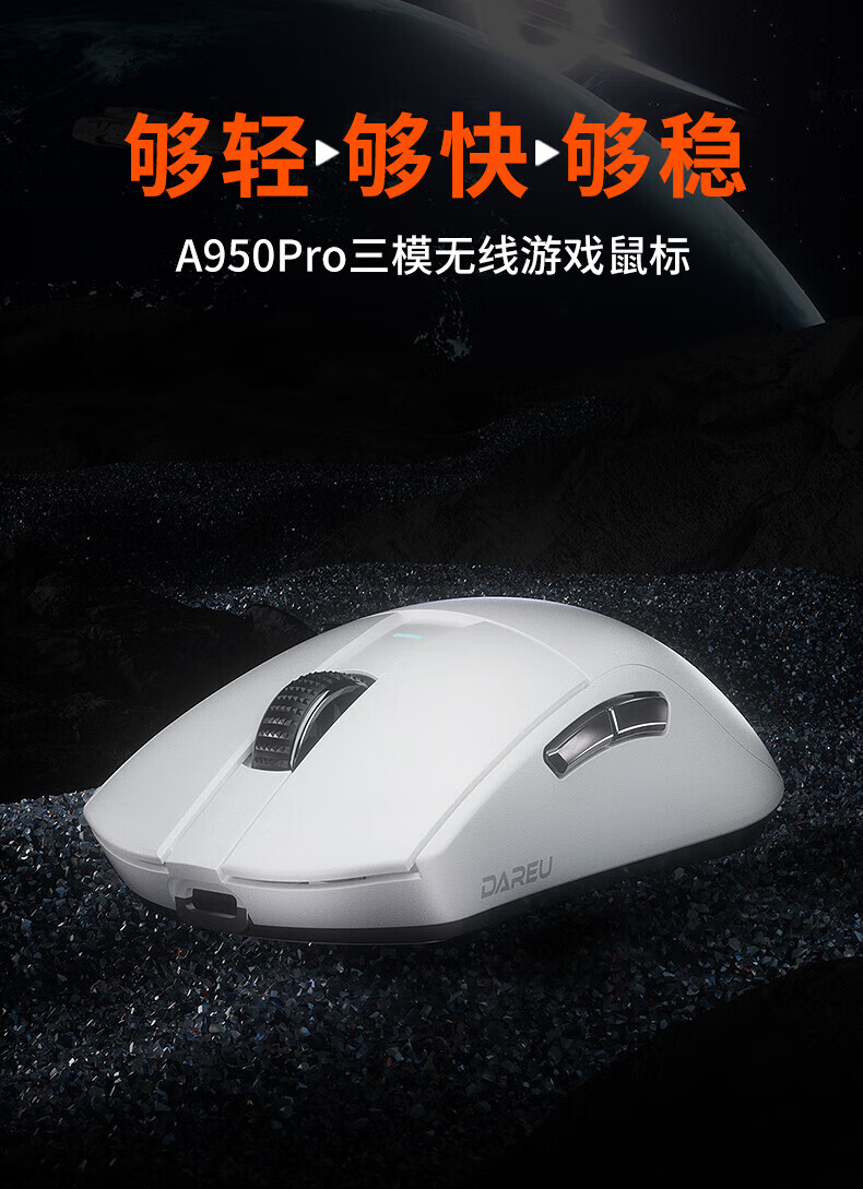 达尔优(DAREU)A950pro黑色合适中大手有线无线4K回报率蓝牙三模电竞游戏鼠标按键不打油轻量化54g PBT按键【1K白色】