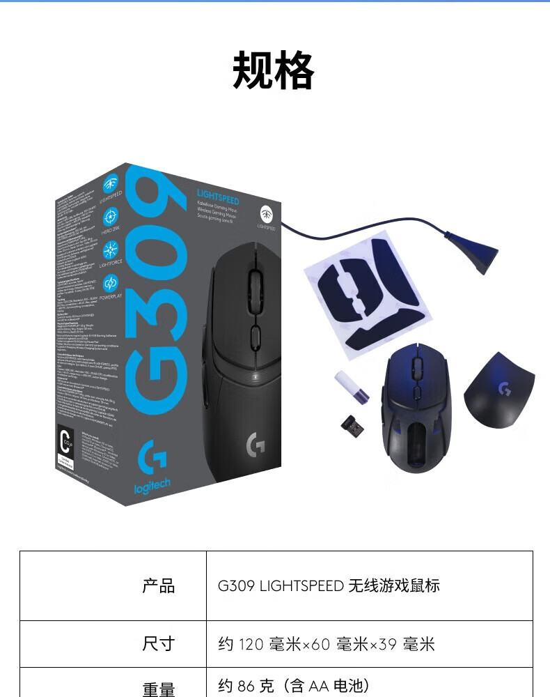 罗技(G)G309无线鼠标无线鼠标蓝牙双模游戏混合微动电竞86克轻量化吃鸡宏编程笔记本台式机便携鼠标 G309无线游戏鼠标(白色)+超长鼠标垫