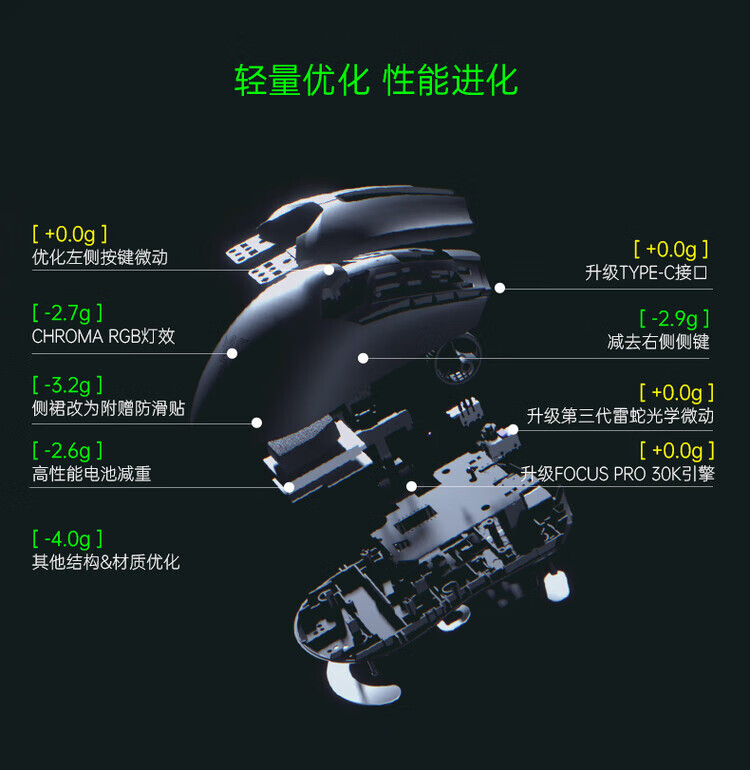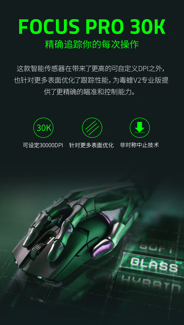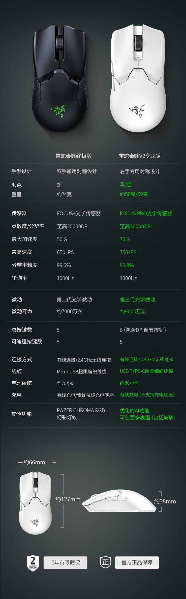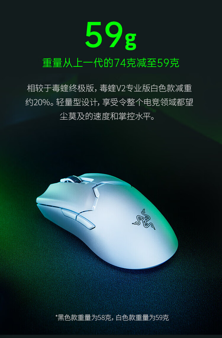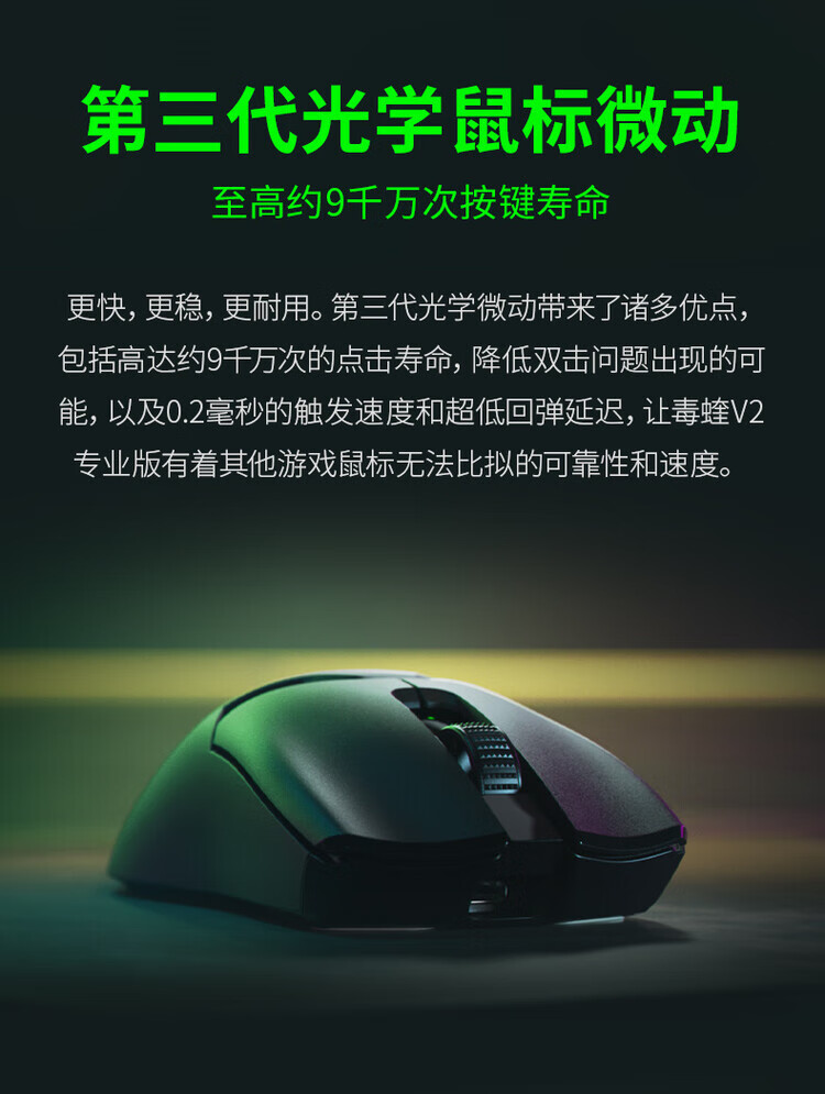 Razer Venom V2 Professional Edition Souris légère alimentée par fil sans fil Souris de jeu E-Sports PRO Souris de jeu pour ordinateur de deuxième génération E-Sports CSGO Main droite Symétrie spéciale PUBG Souris sans fil co-marquée Venom V2 Professional Edition
