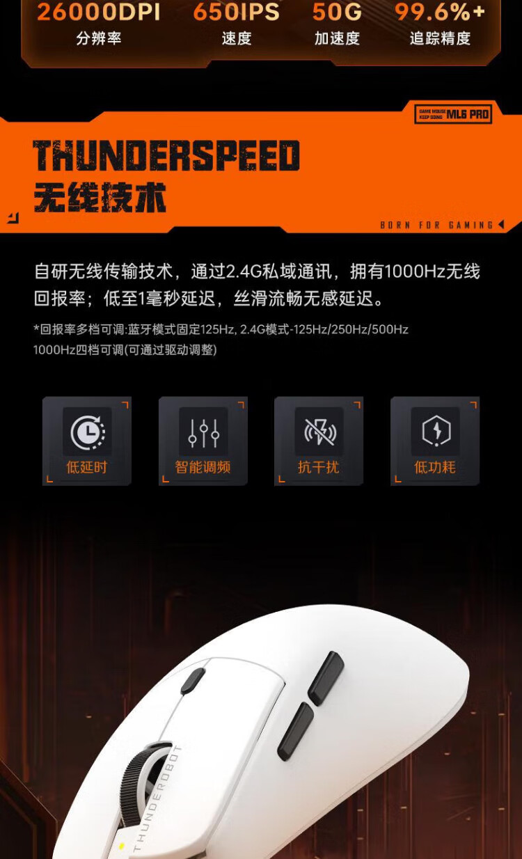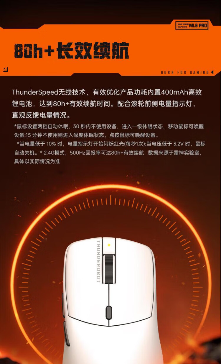 ThundeRobot ML6 PRO three-mode gaming wireless mouse lightweight design wired/2.4G/Bluetooth connection office gaming mouse 8K competitive version Snake Year Red-3950PRO